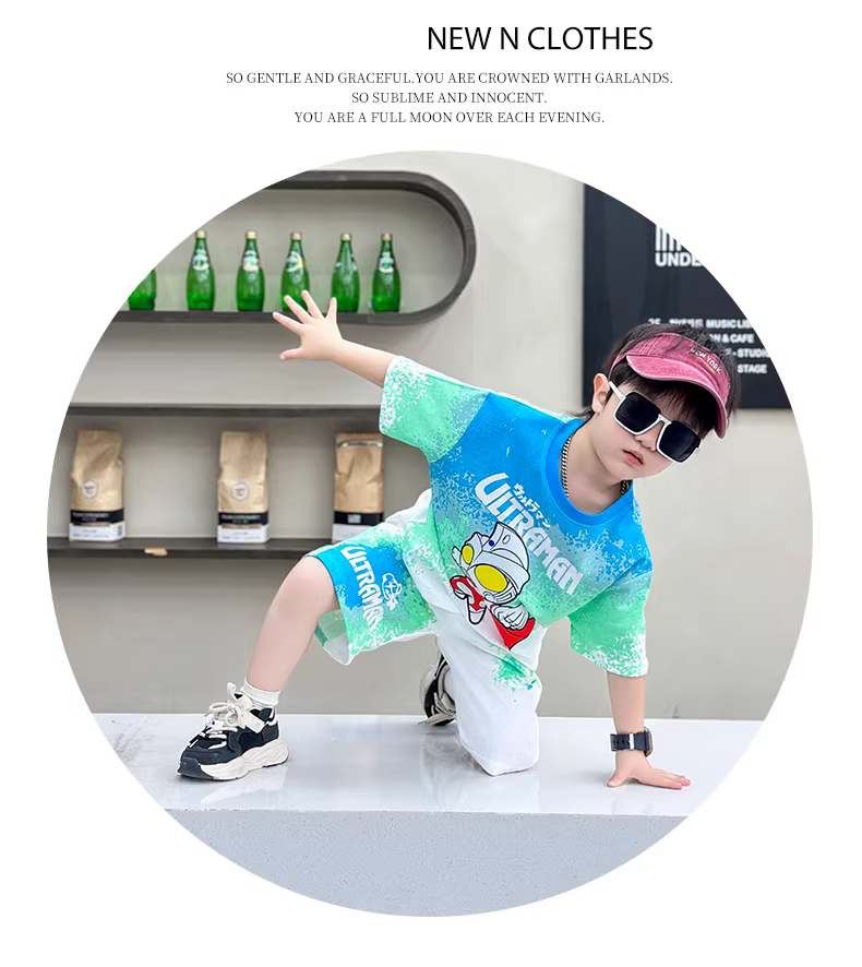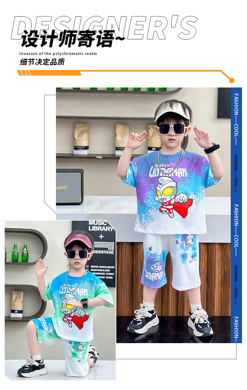 - Quần áo Ultraman Bộ đồ mùa hè cho bé trai 2025 phong cách mới mát mẻ và sành điệu quần áo trẻ em ngắn tay đẹp trai thể thao hợp thời trang
