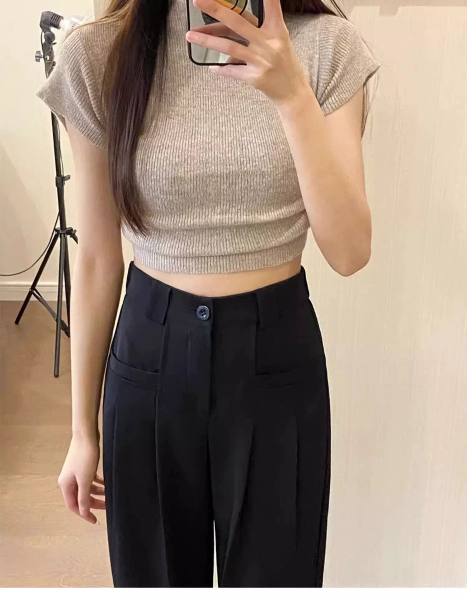 - Quần âu cao cấp dành cho nữ, quần body dáng quả lê mùa hè, size lớn, cạp cao, che bụng, che hông, quần ống rộng tôn dáng