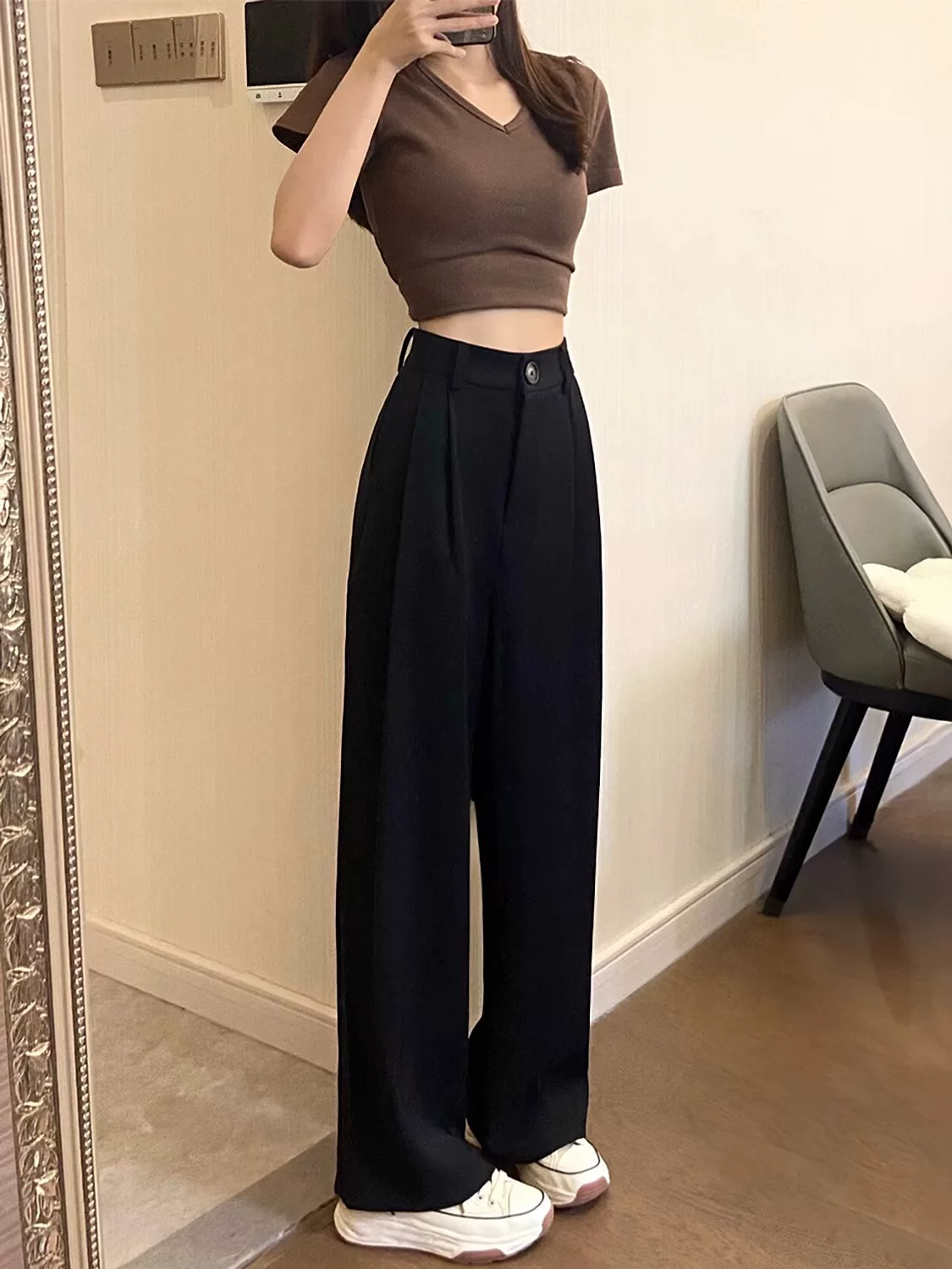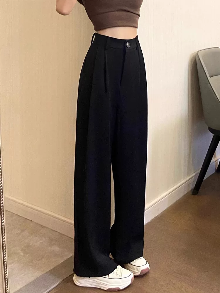 - Quần âu dáng lê màu đen dành cho nữ, kiểu dáng mới mùa hè, mỏng nhẹ, size lớn, cạp cao, rộng rãi, tôn dáng, quần ống rộng