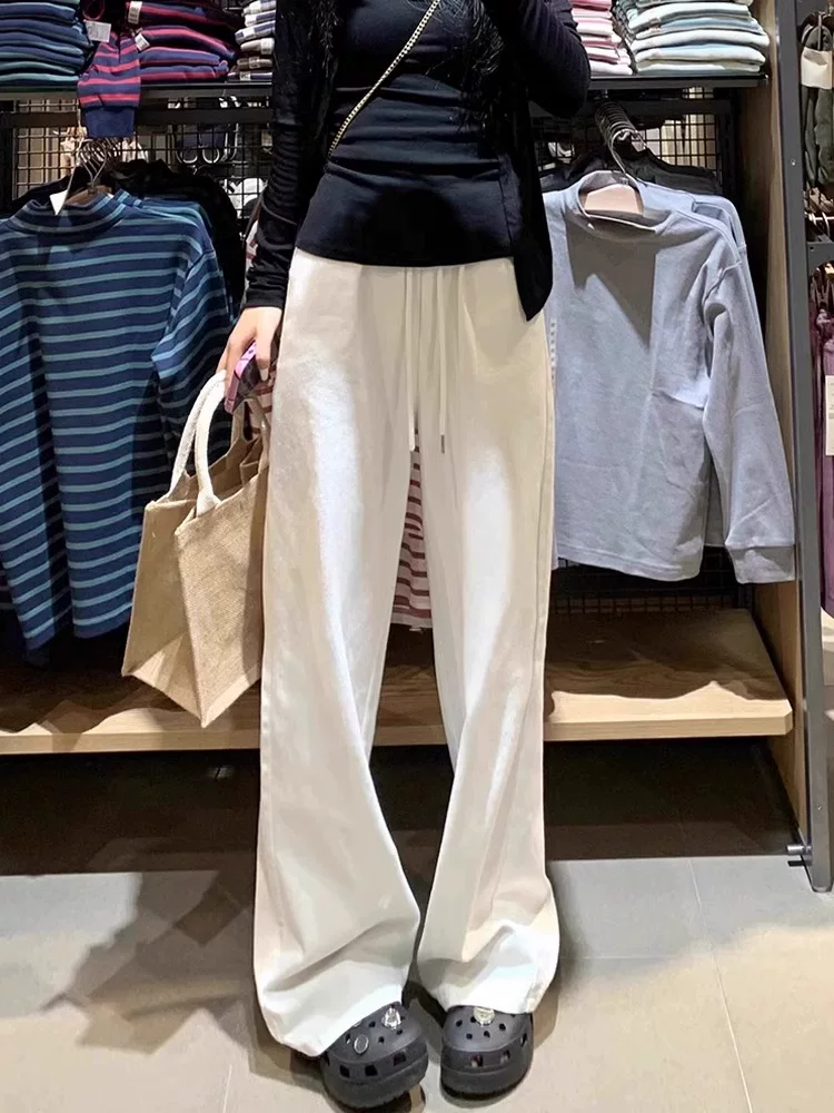 - Quần âu dáng lê màu trắng dành cho nữ, kiểu dáng mỏng mùa hè, cỡ lớn, lưng cao, dáng rộng, mềm mại, tôn dáng, quần thể thao ống rộng.