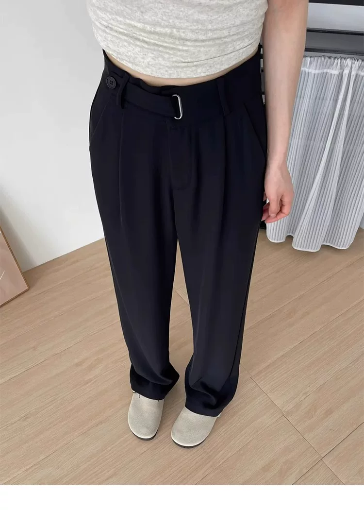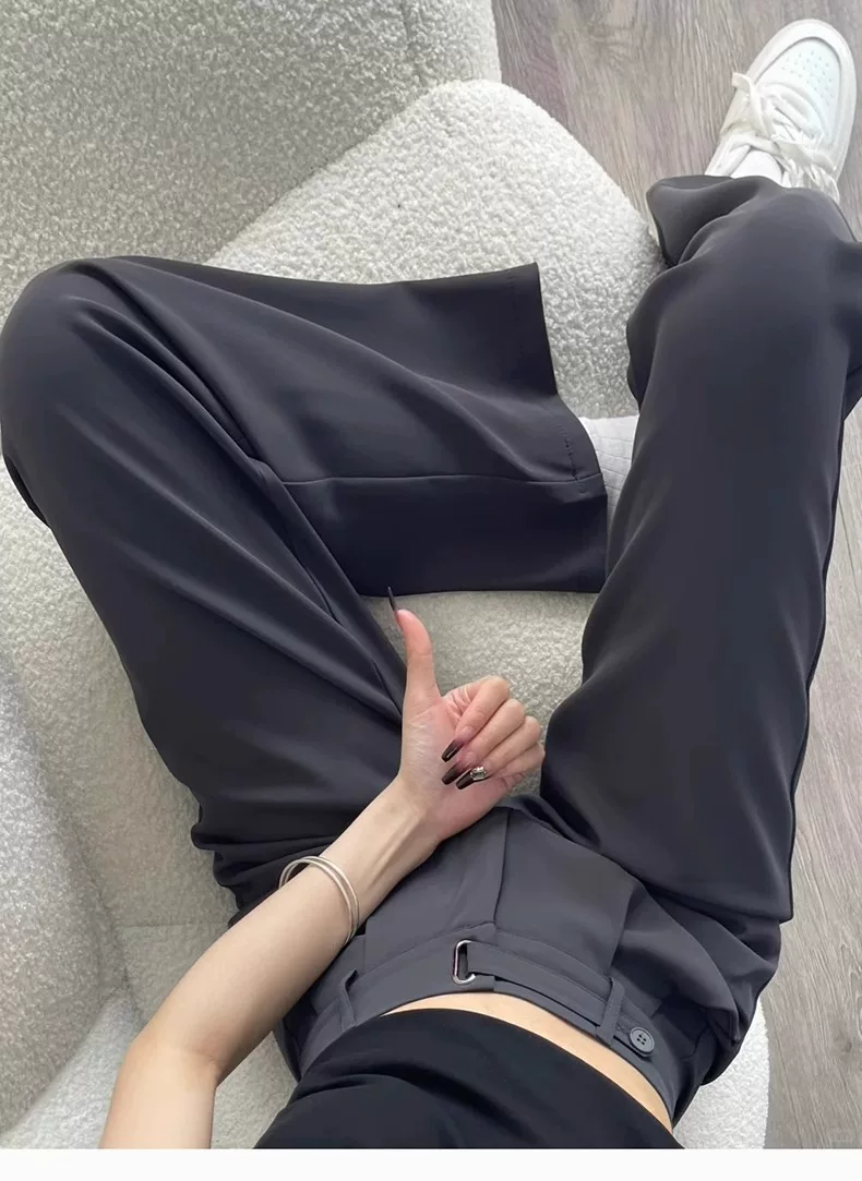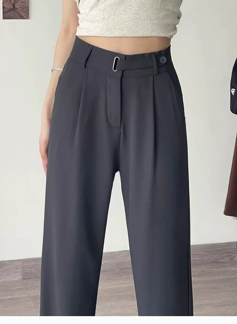 Quần âu dáng quả lê dành cho nữ, kiểu dáng mỏng mùa hè, cỡ lớn, lưng cao, che hông, dáng suôn, quần ống rộng giúp thon gọn