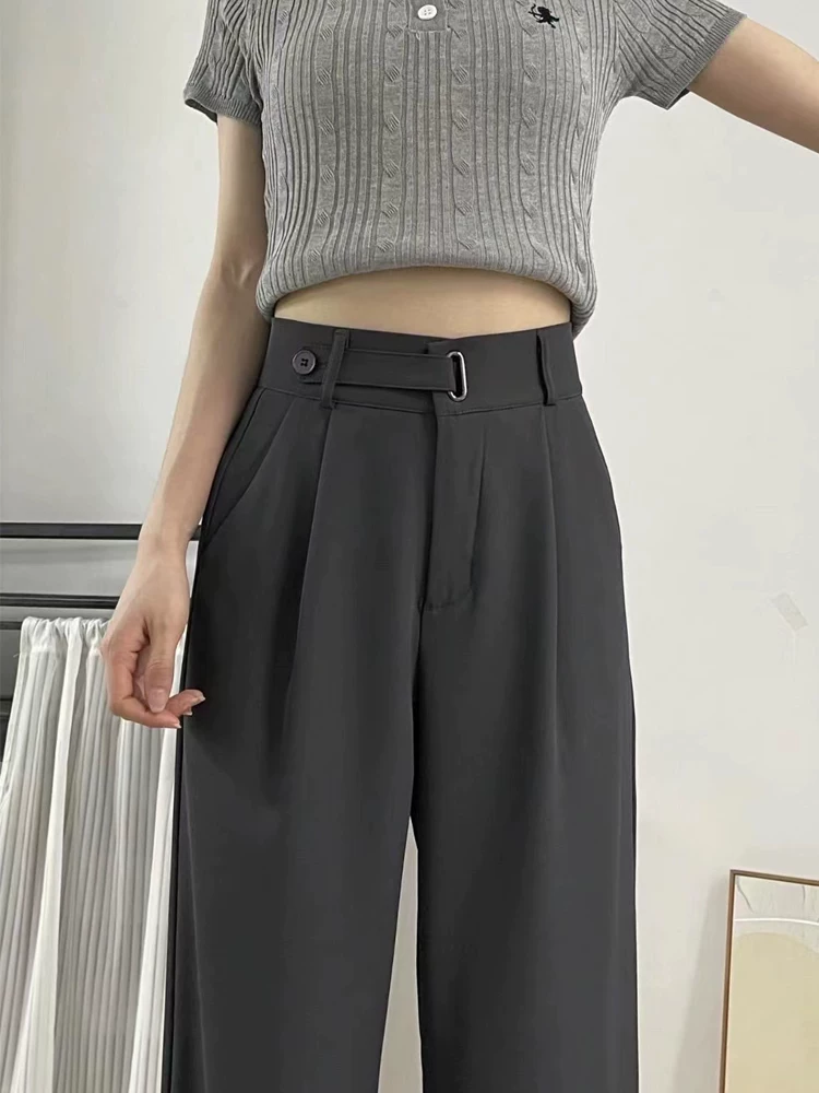 - Quần âu dáng quả lê dành cho nữ, kiểu dáng mùa thu mới, cỡ lớn, lưng cao, rộng rãi, mềm mại, quần ống rộng giúp thon gọn vóc dáng
