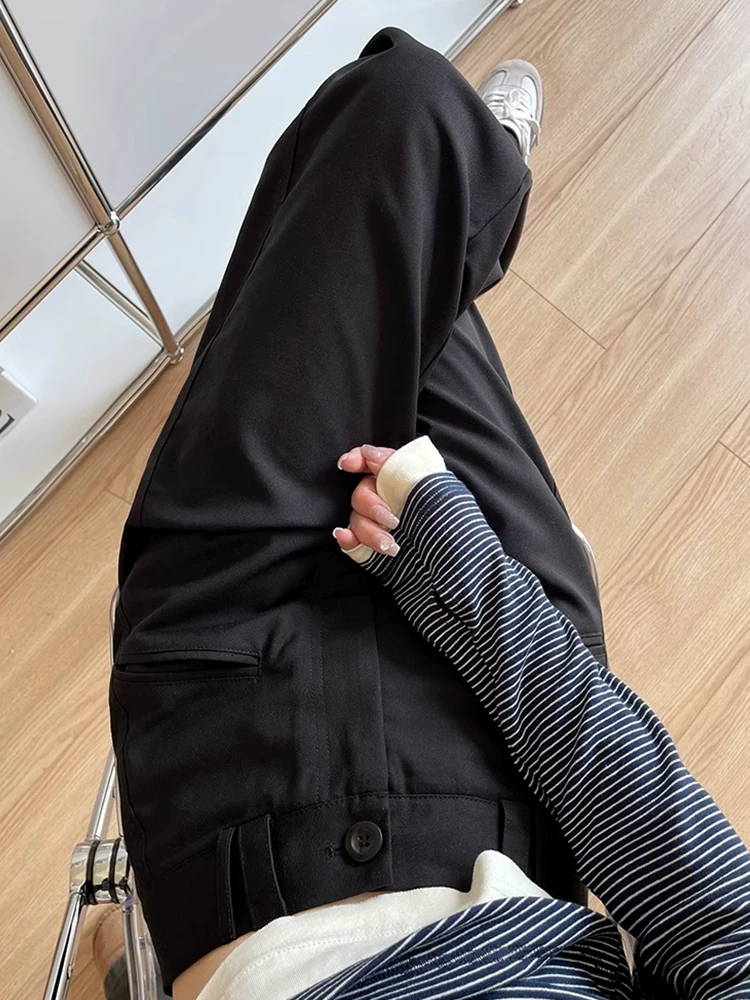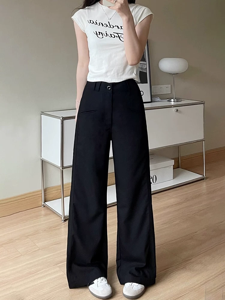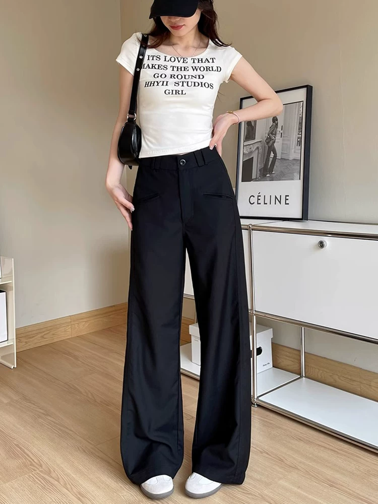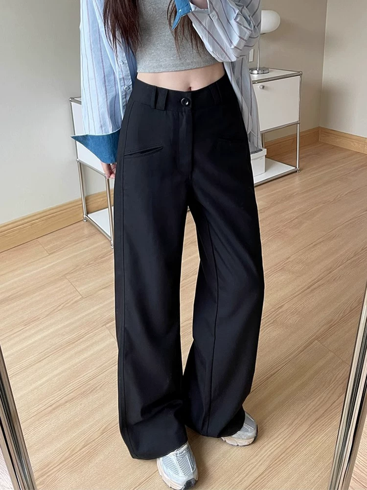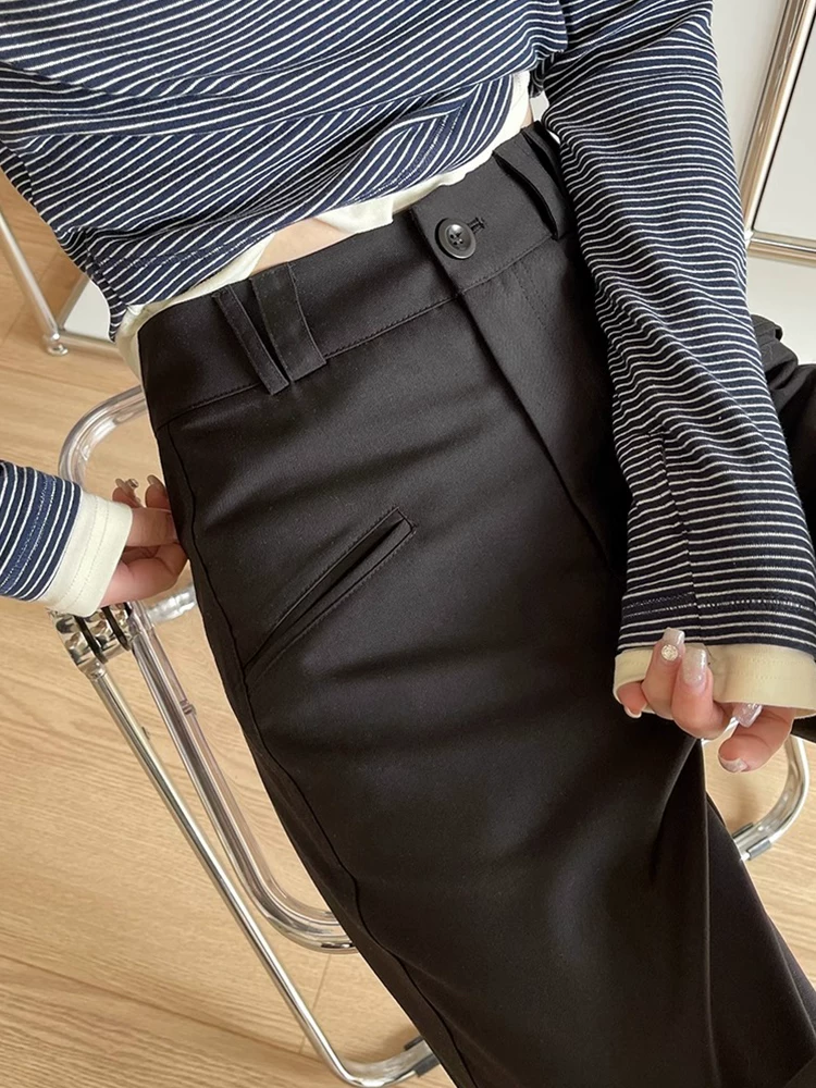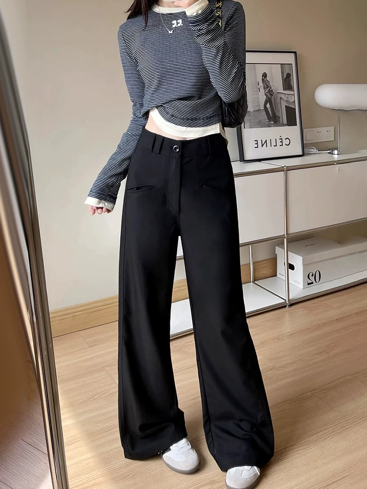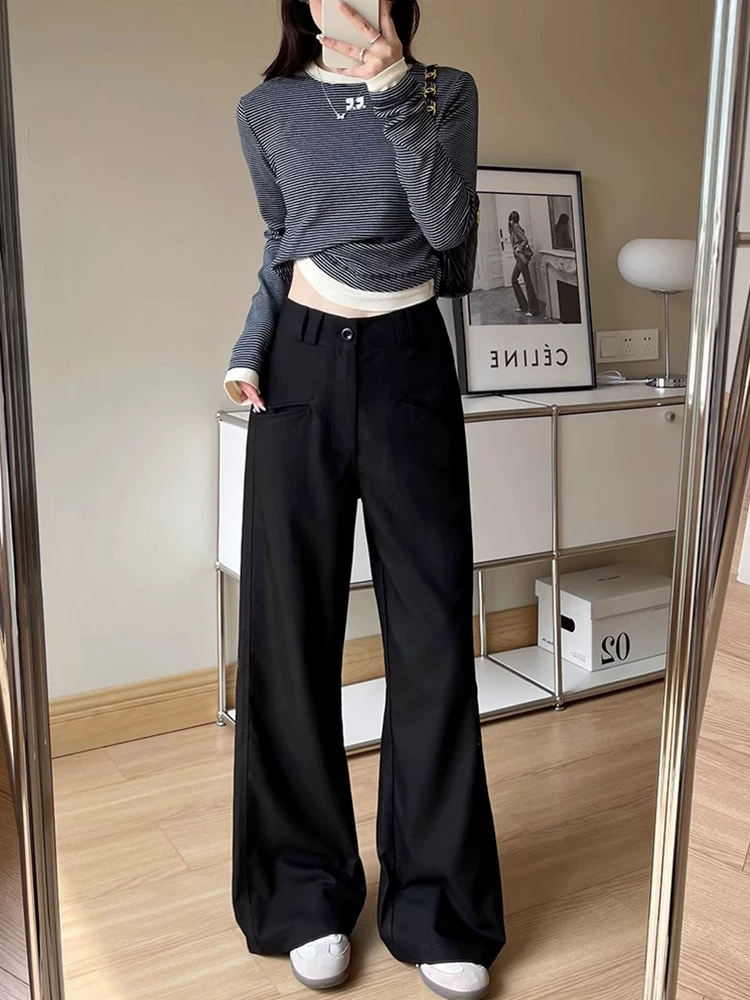 - Quần âu dáng quả lê màu đen dành cho nữ, kiểu dáng mùa thu mới, cỡ lớn, lưng cao, mềm mại, tôn dáng, quần ống rộng