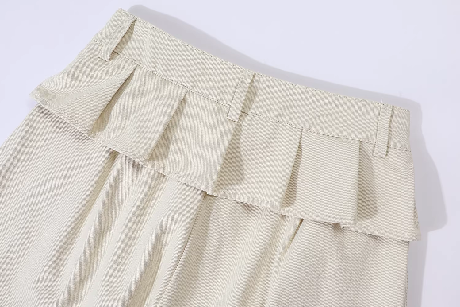 Quần âu dáng thẳng cổ điển kiểu Mỹ có ren dành cho nữ, phong cách mùa thu, cạp cao, tôn dáng, quần ống rộng mềm mại