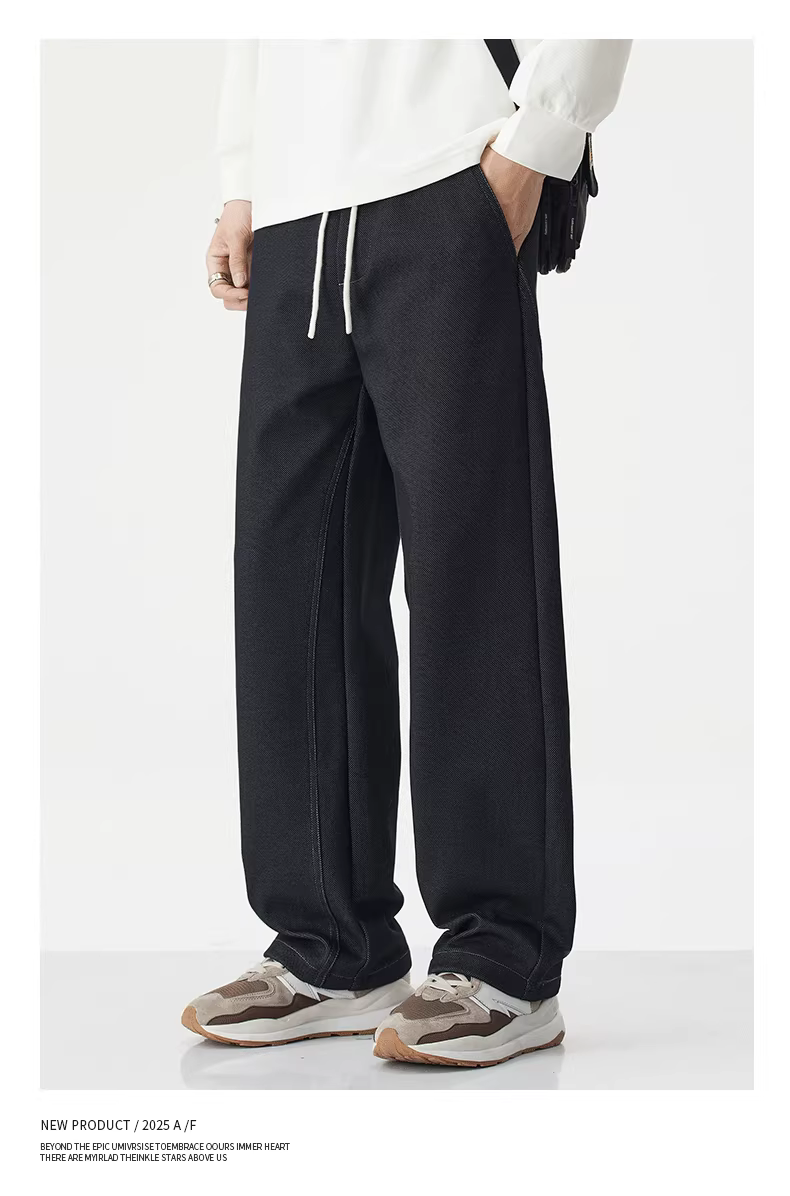 Quần âu dáng thẳng hạng nặng OMZM dành cho nam, quần ống đứng dáng rộng phong cách retro Mỹ mùa thu, quần thể thao màu đen