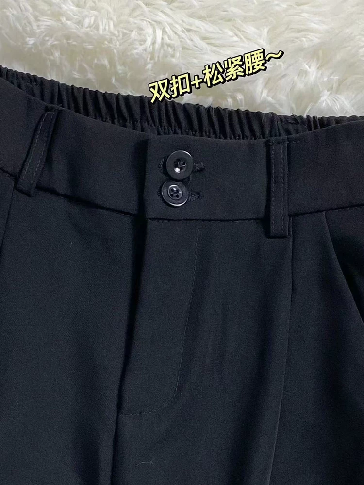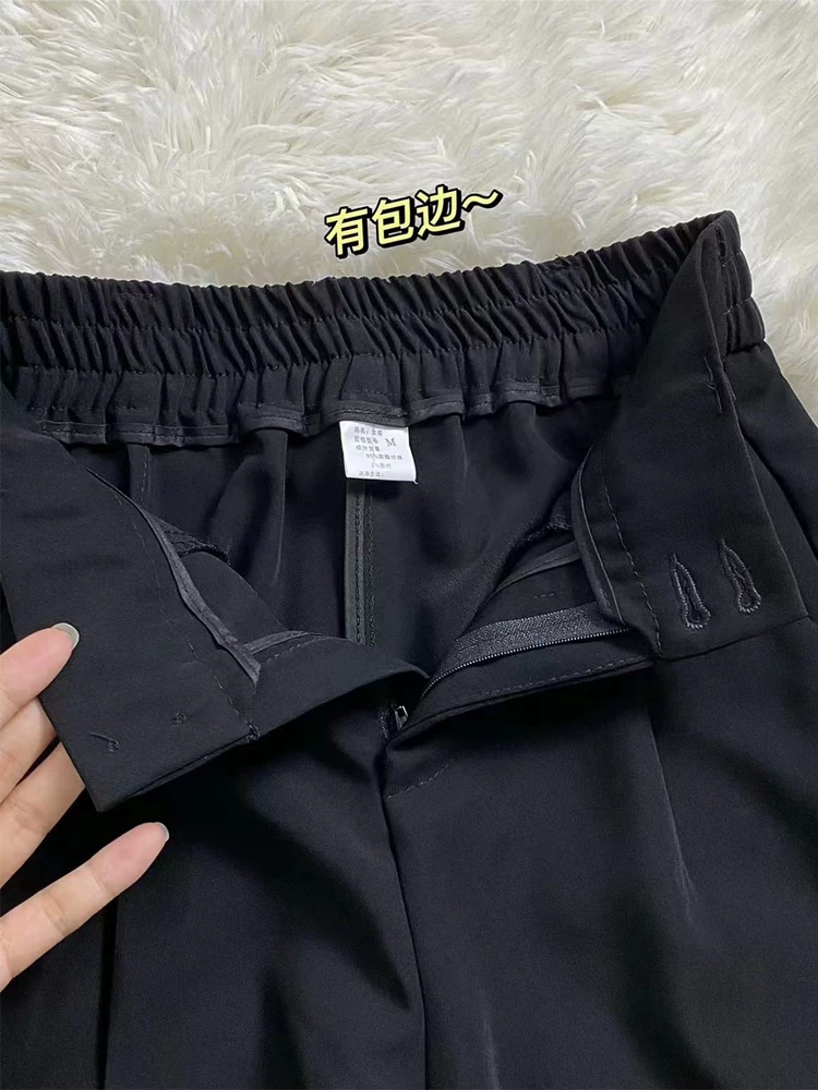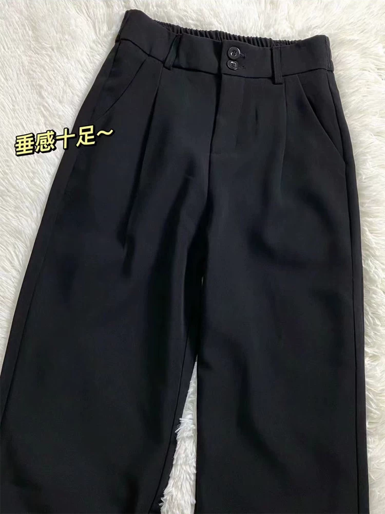 Quần âu đen, kiểu dáng xuông rộng, cạp cao, che hông, chất liệu mềm mại, tôn dáng, dành cho nữ, size lớn, thích hợp cho mùa hè và đầu thu.