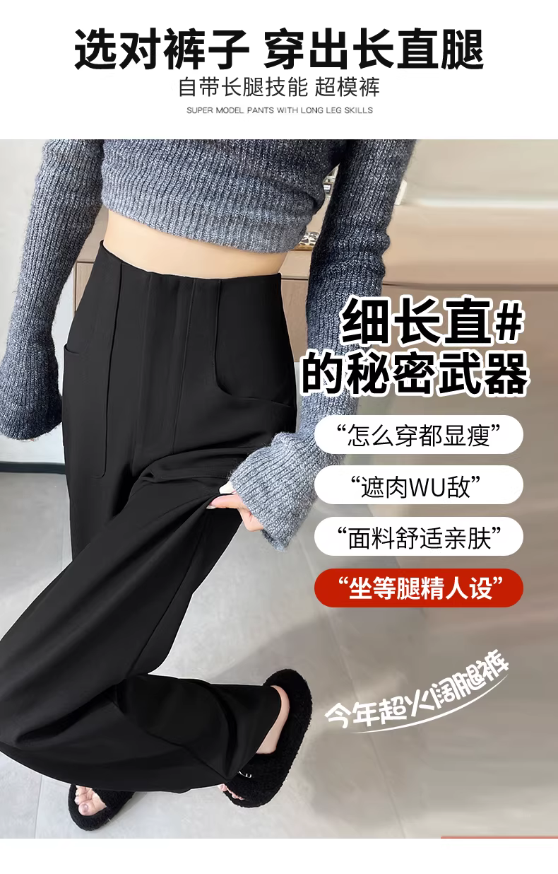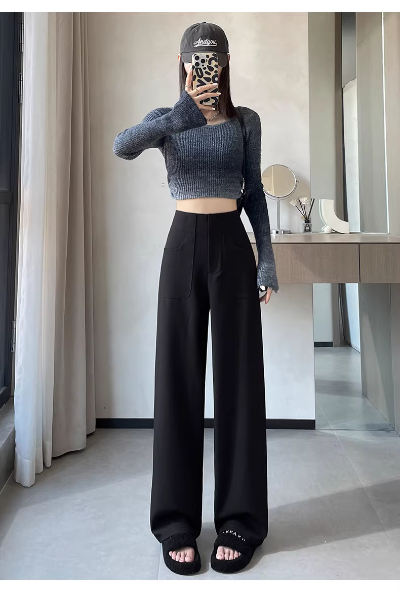 - Quần âu đen La Chapelle cạp cao ống rộng dành cho nữ, kiểu mới thu đông 2025, dáng rộng, tôn dáng, ống thẳng, dài chạm sàn.