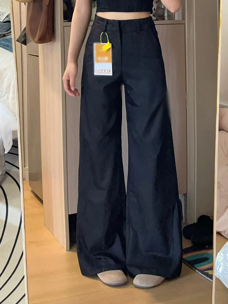 Quần âu đen thường ngày dành cho nữ, kiểu dáng mùa thu mới, cỡ lớn, lưng cao, dáng rộng, tôn dáng, nhỏ nhắn, quần ống rộng thoải mái.