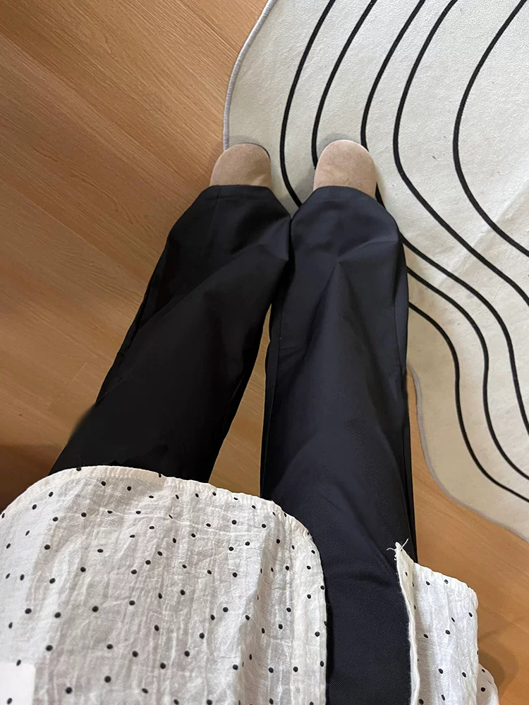 - Quần âu đen thường ngày dành cho nữ, kiểu dáng mùa thu mới, cỡ lớn, lưng cao, dáng rộng, tôn dáng, nhỏ nhắn, quần ống rộng thoải mái.