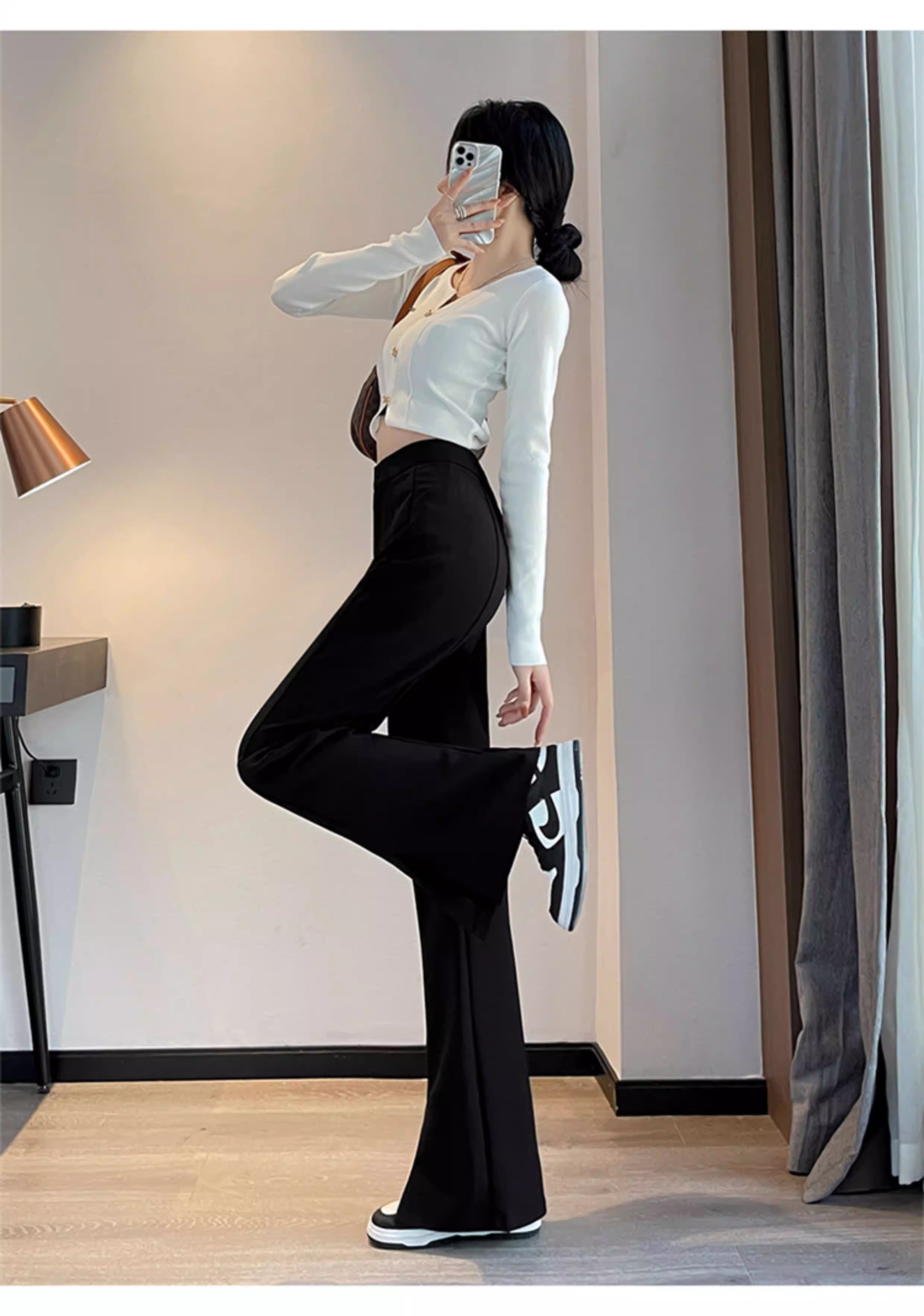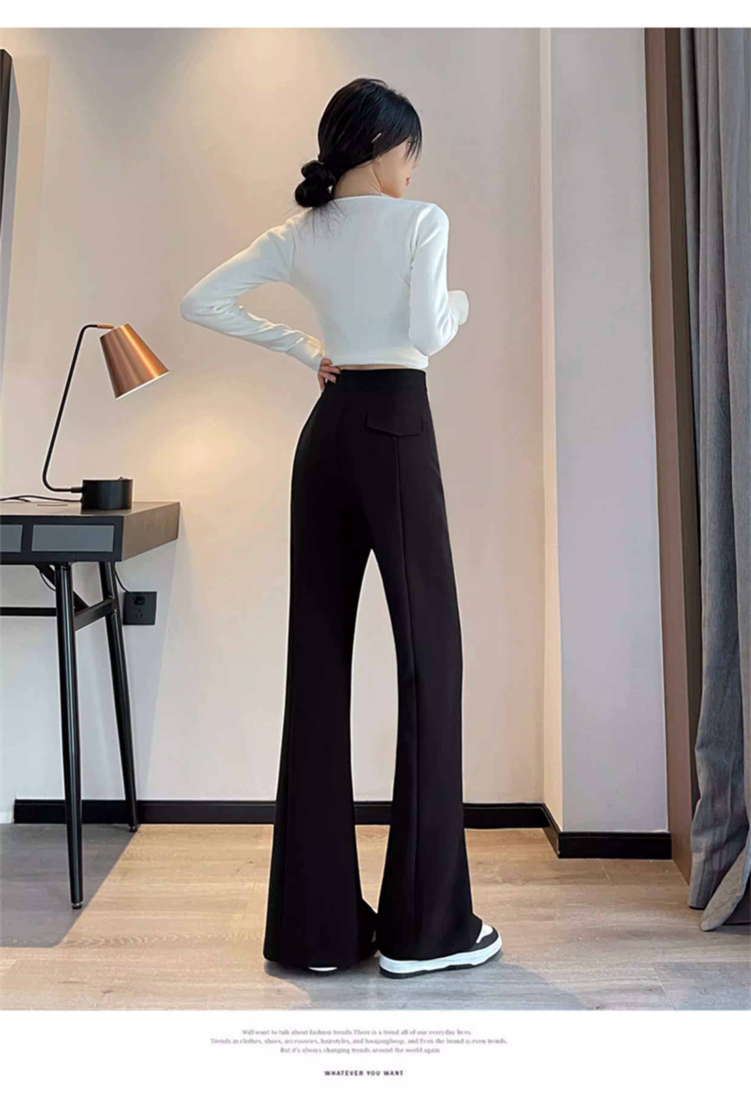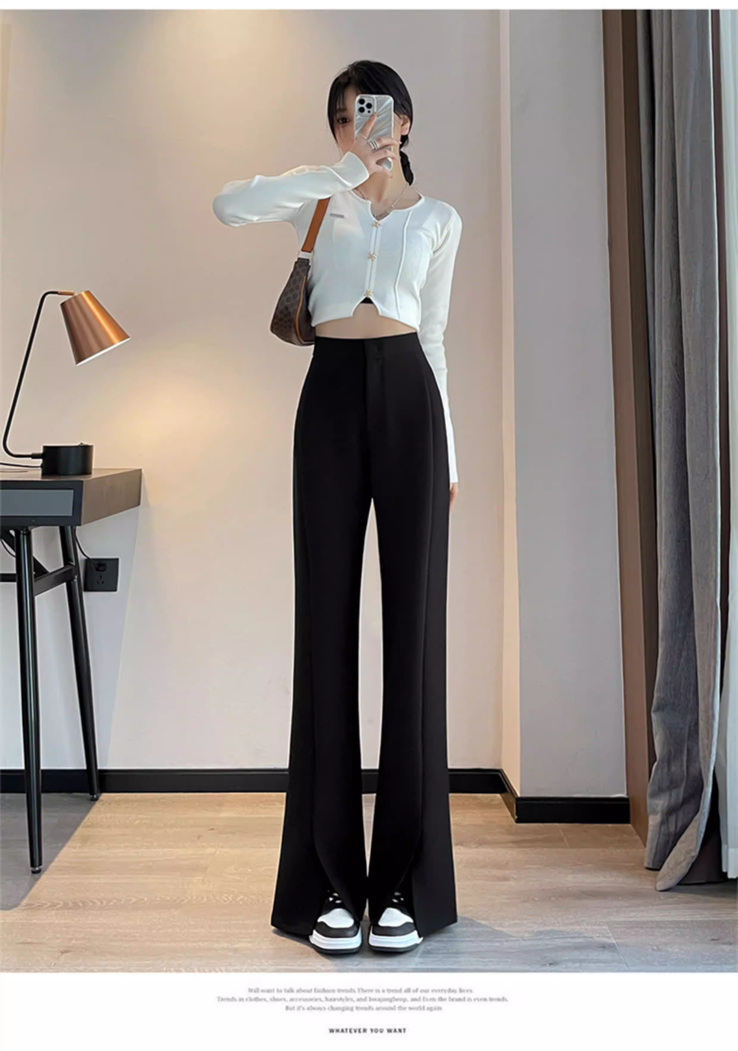 - Quần âu đen xẻ tà dáng chuông La Chapelle dành cho nữ, mẫu mới thu 2025, cạp cao, tôn dáng, size nhỏ