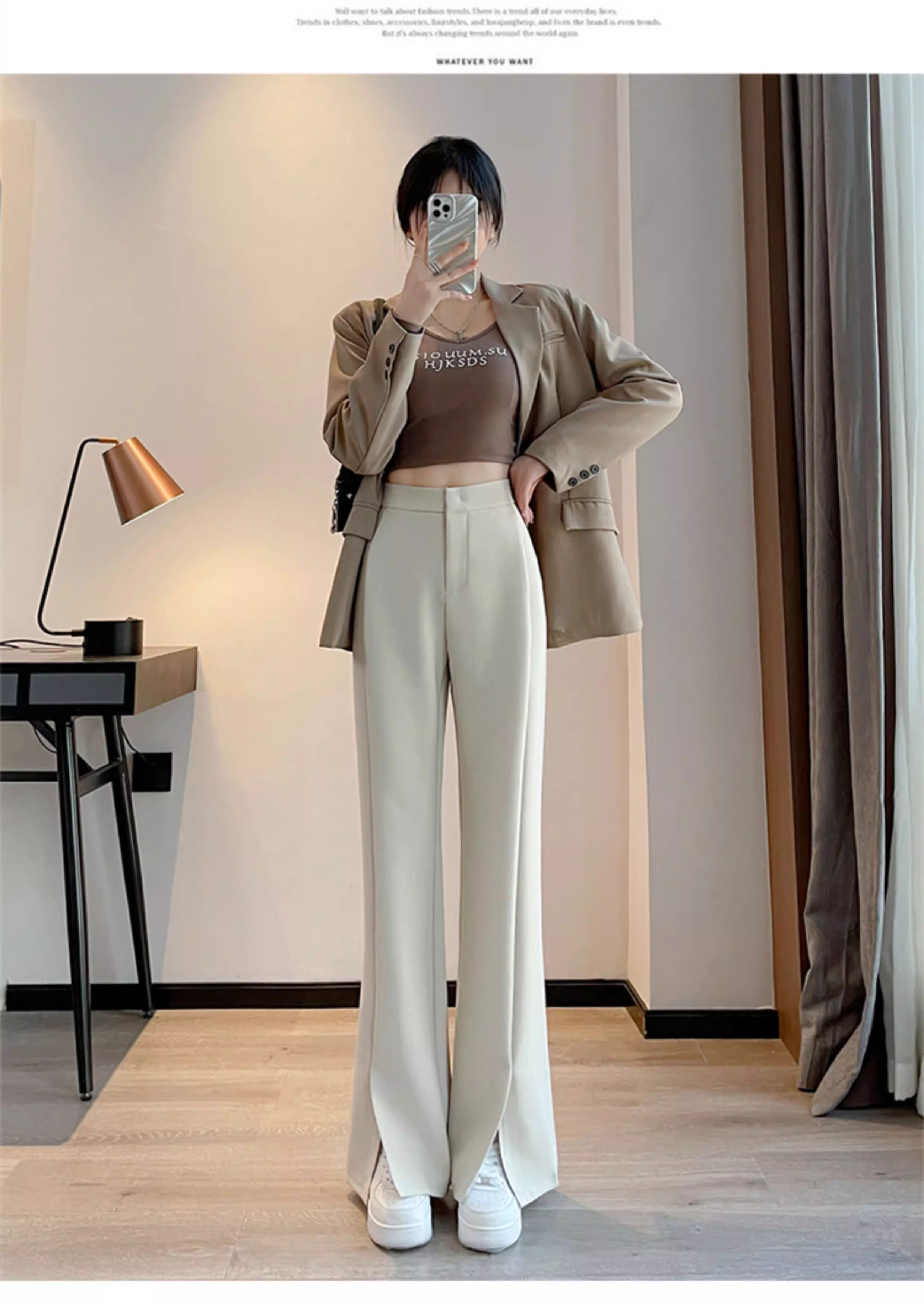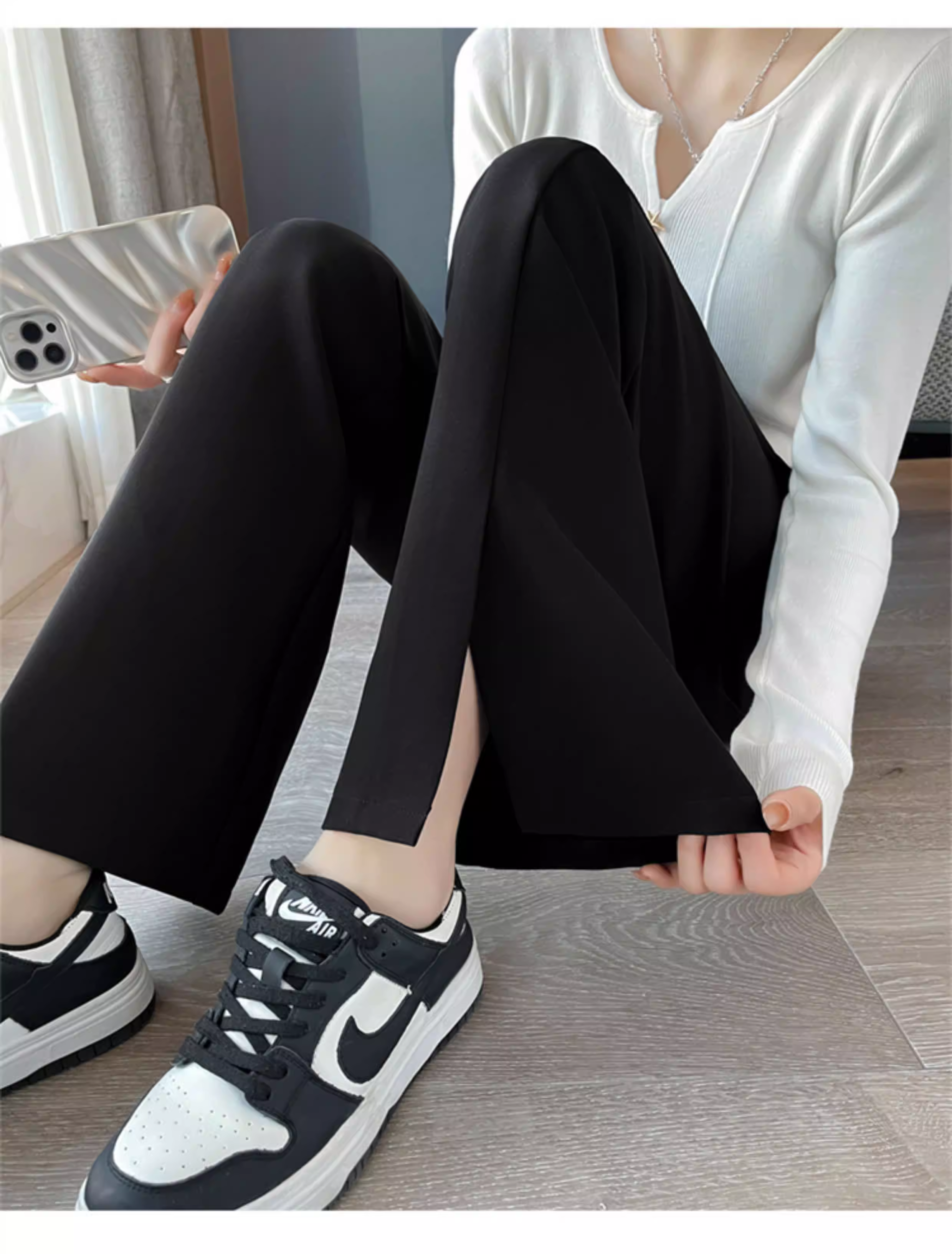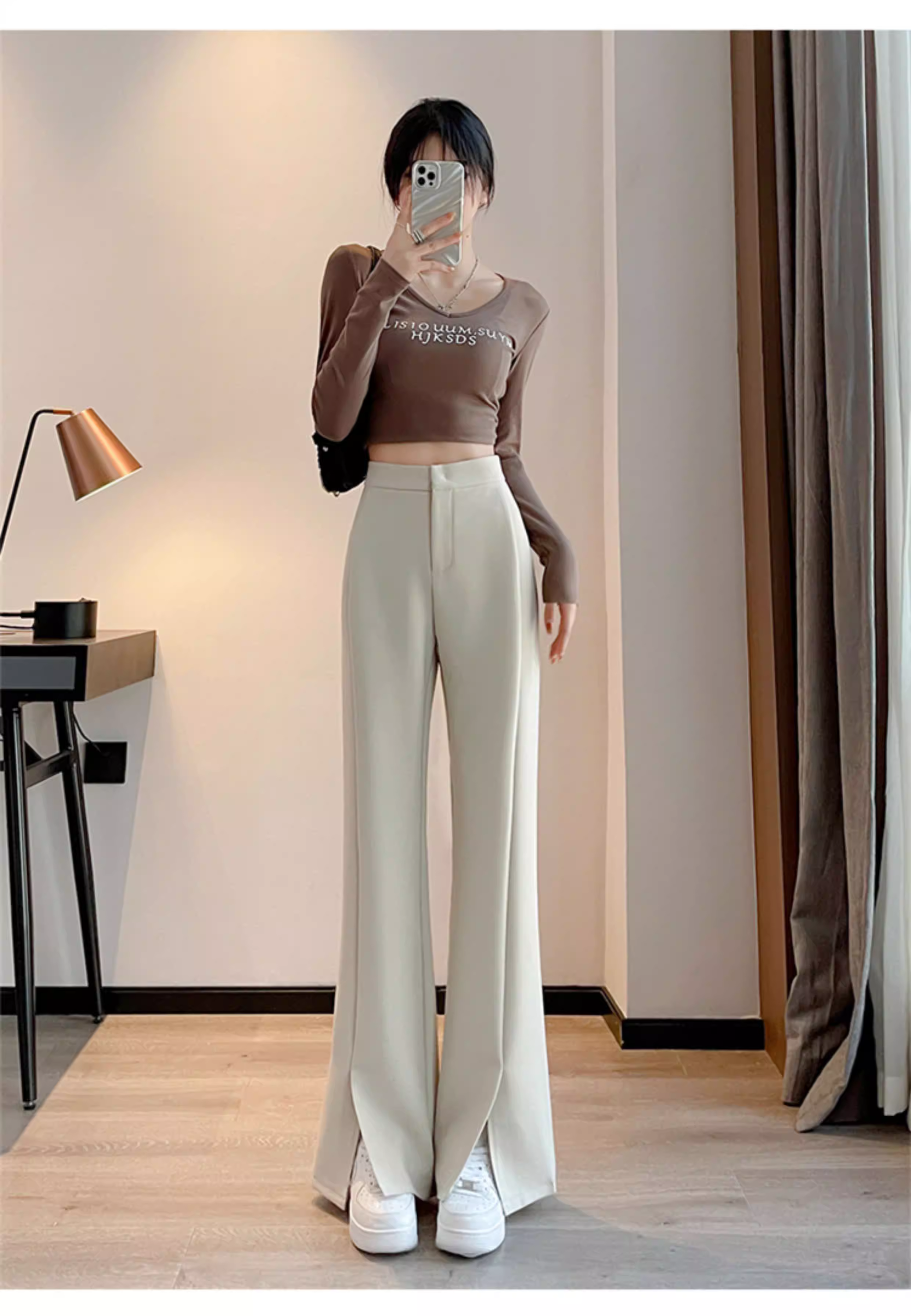 - Quần âu đen xẻ tà dáng chuông La Chapelle dành cho nữ, mẫu mới thu 2025, cạp cao, tôn dáng, size nhỏ