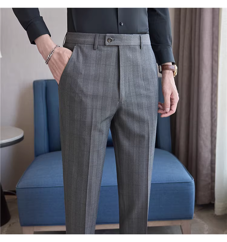 Quần âu kẻ ca rô cao cấp nam 2025, quần âu kiểu dáng mới thời thượng phong cách Anh, kiểu dáng ôm body, quần âu công sở dáng suôn