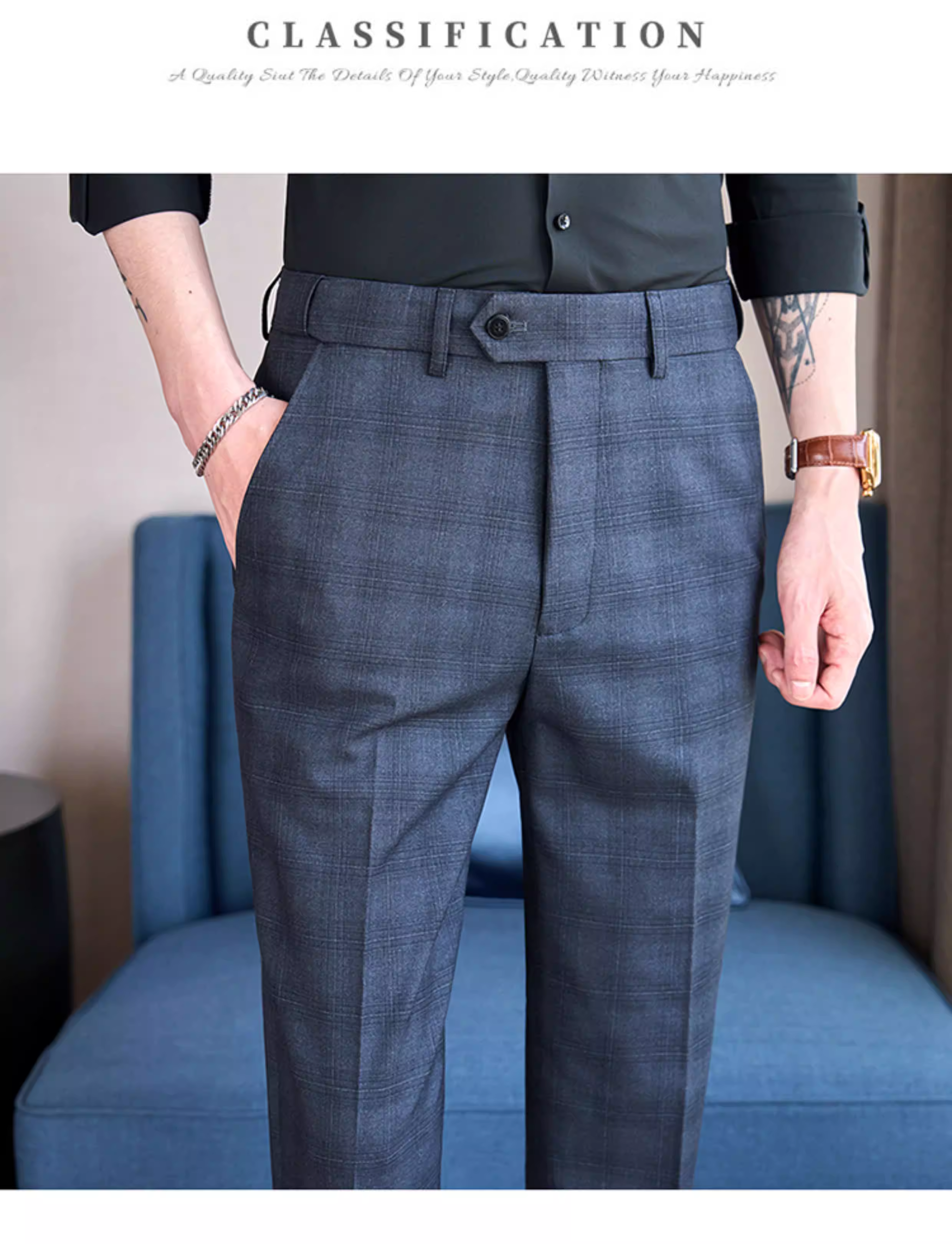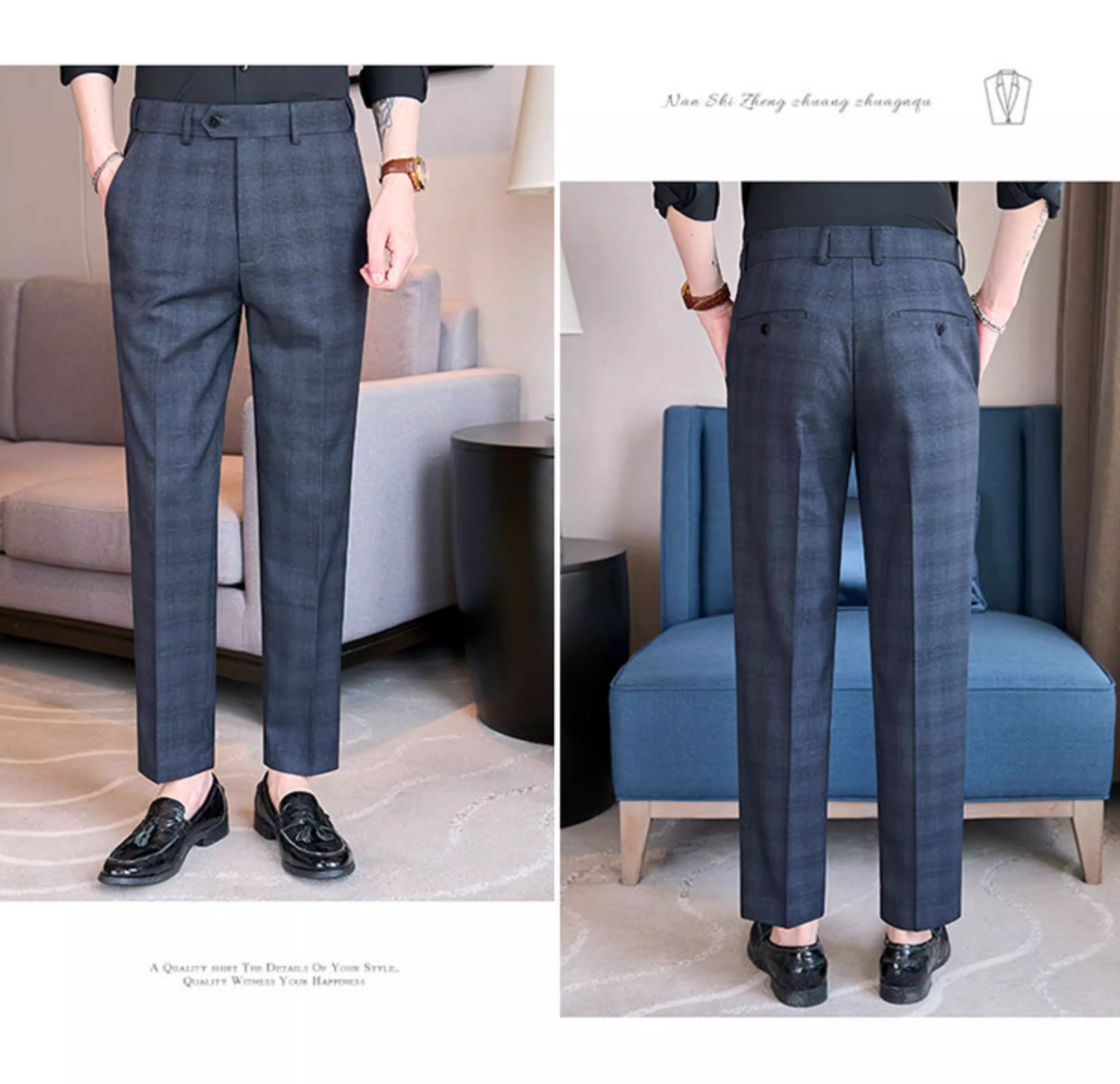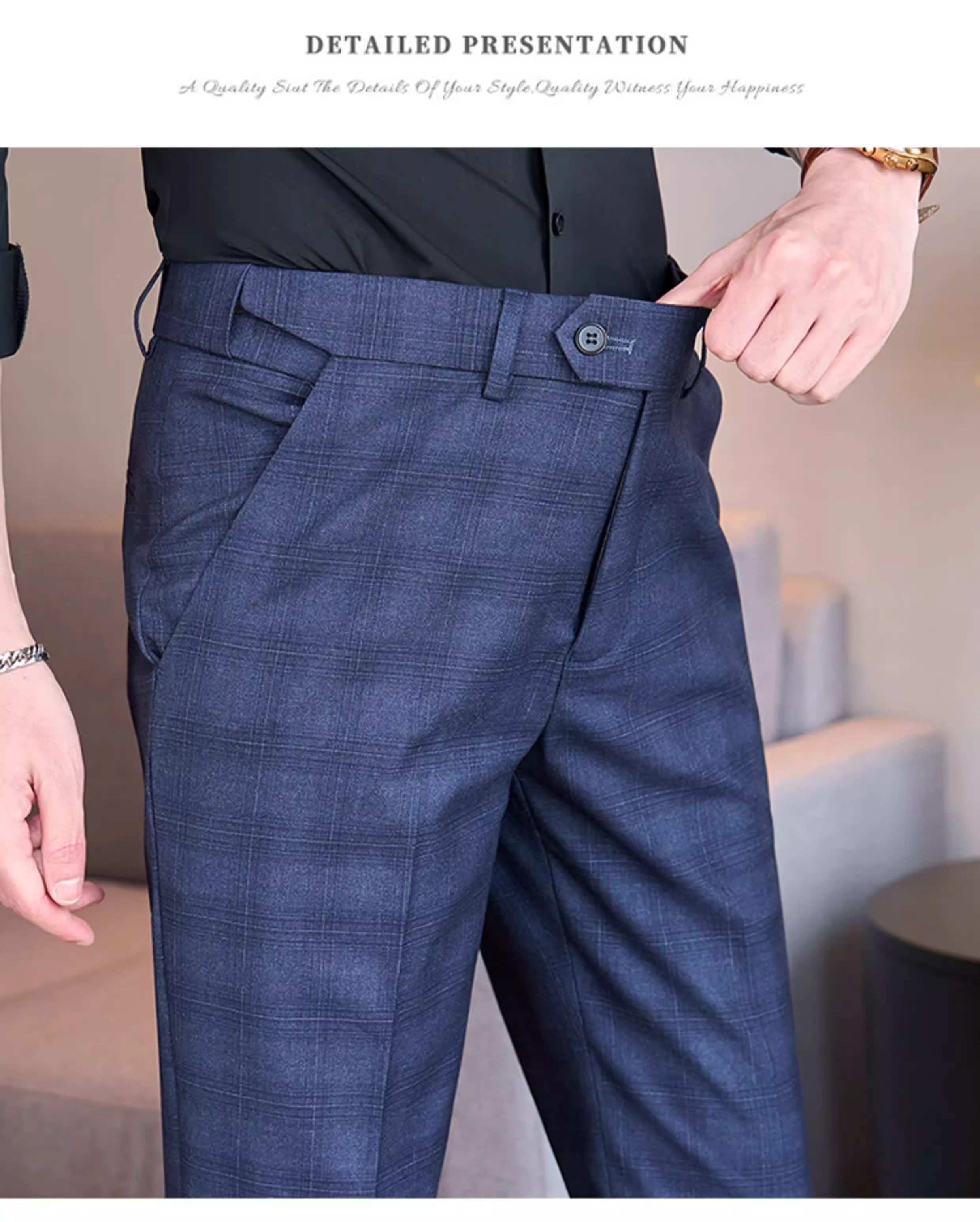 - Quần âu kẻ caro lưng thun cho nam, quần âu ôm dáng cao cấp, quần công sở đa năng, lịch sự, không nhăn