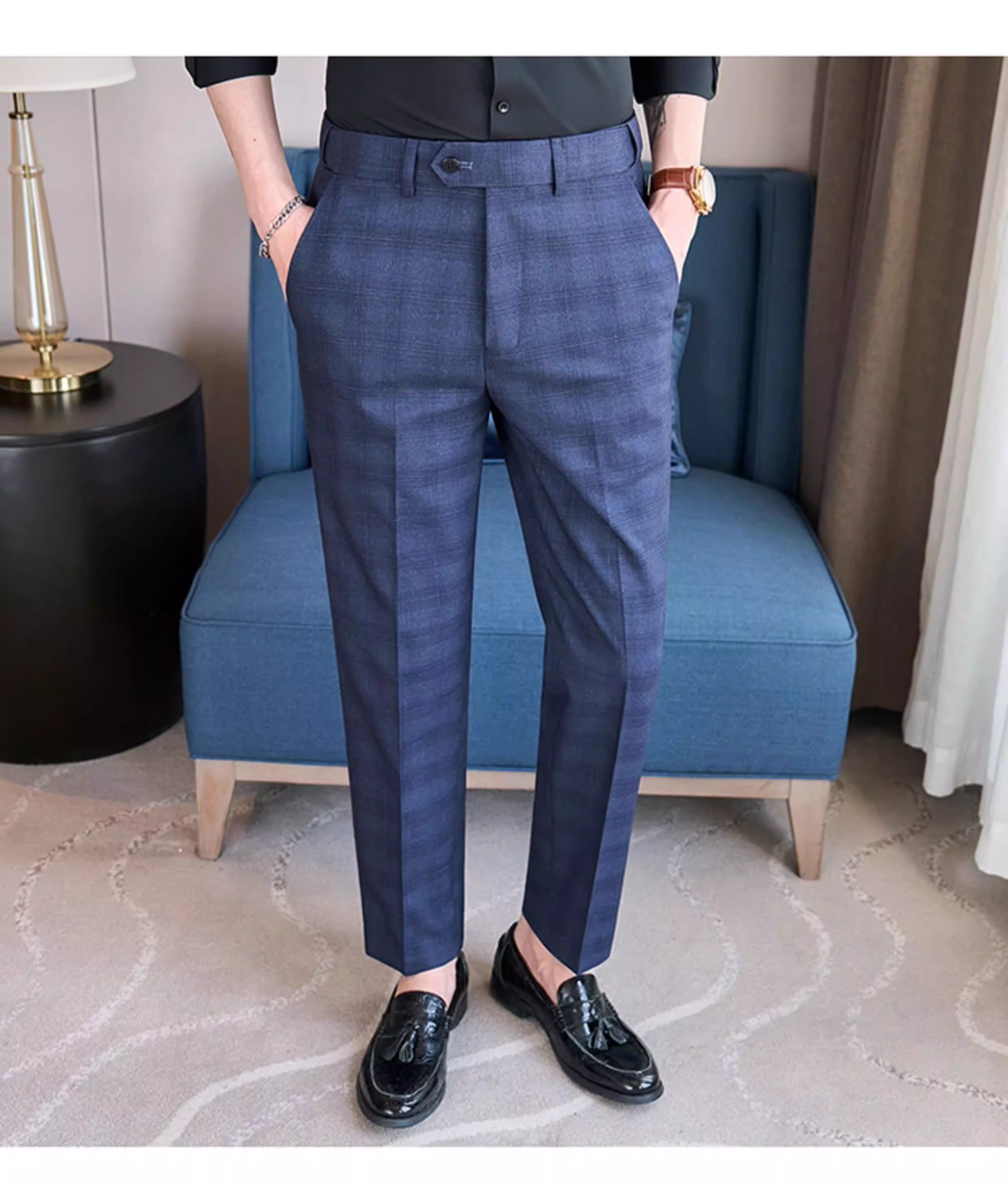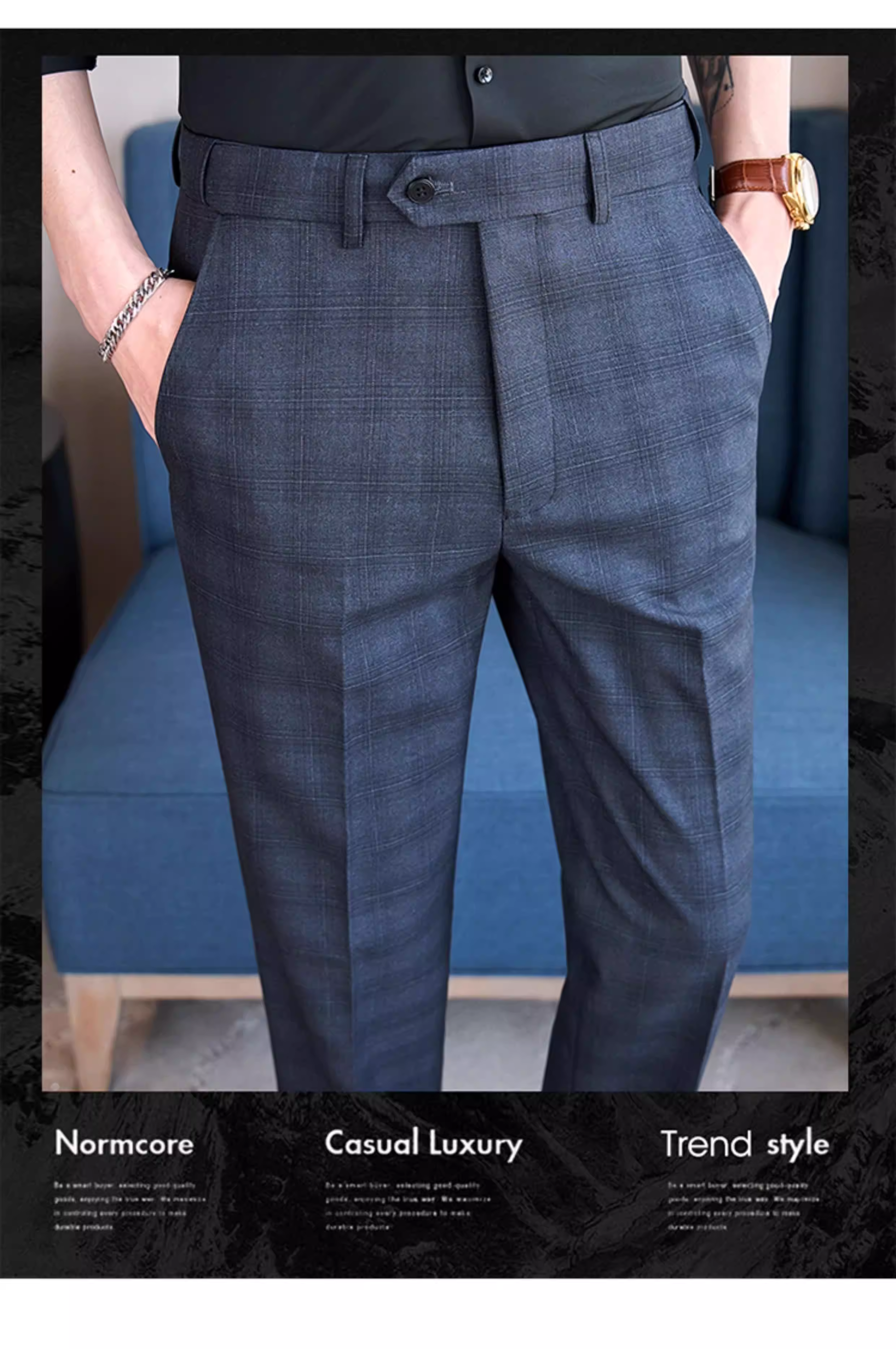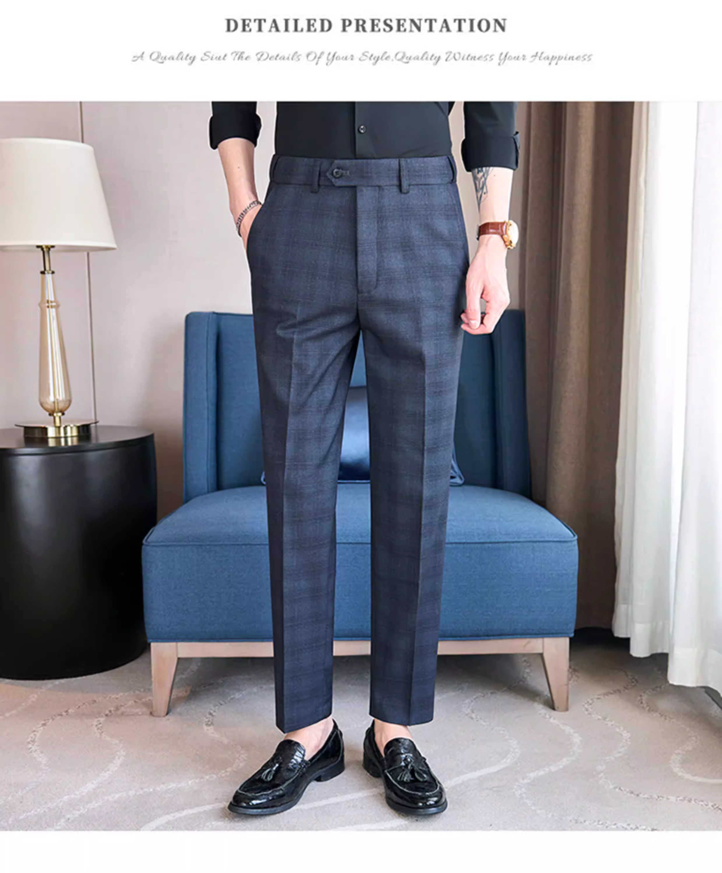 - Quần âu kẻ caro lưng thun cho nam, quần âu ôm dáng cao cấp, quần công sở đa năng, lịch sự, không nhăn