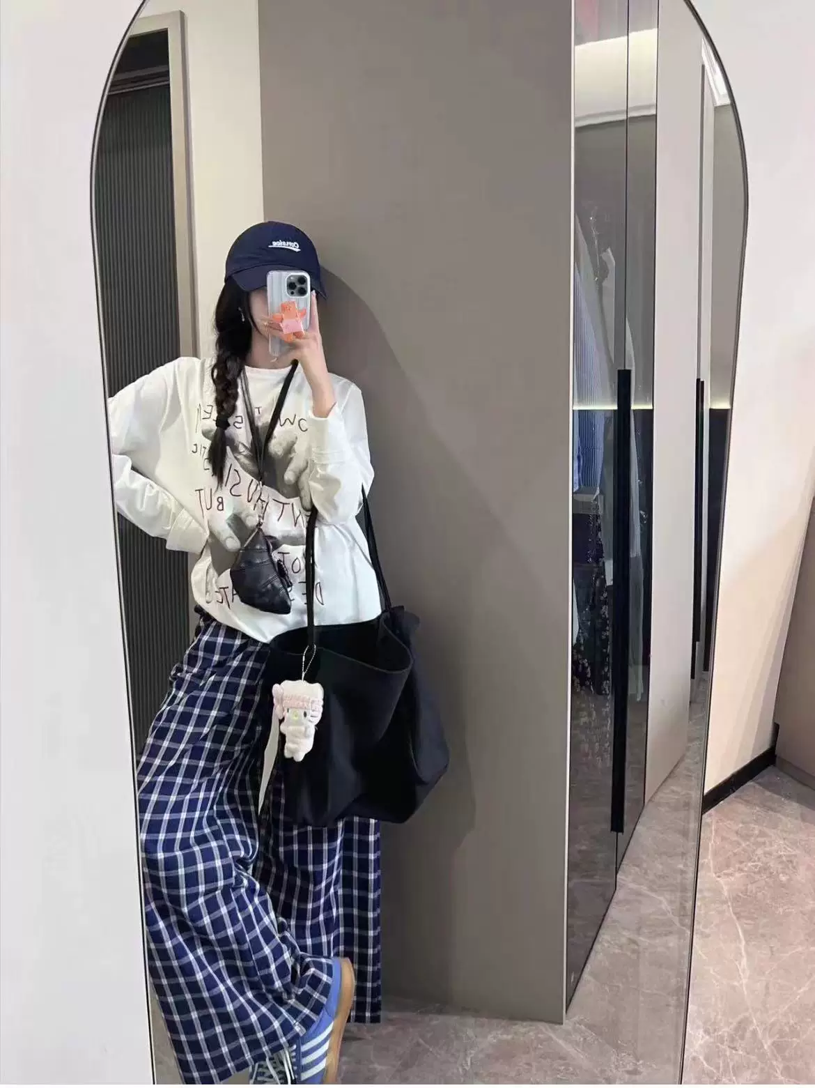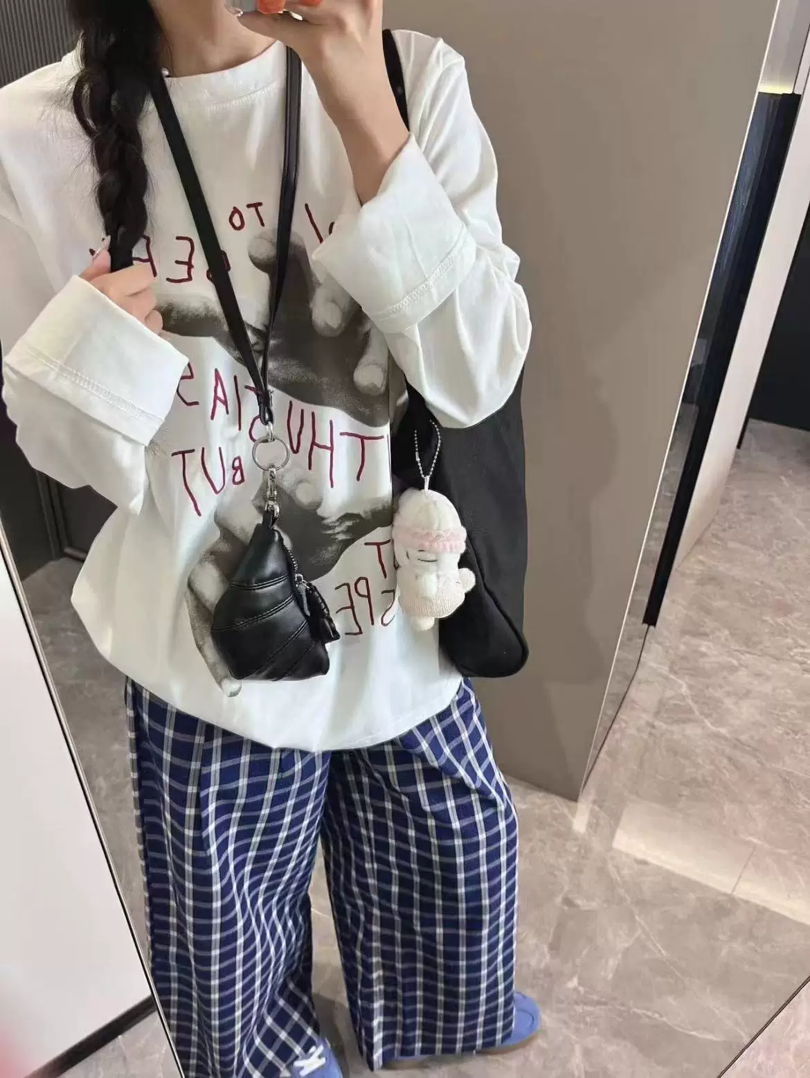 - Quần âu kẻ sọc xanh cổ điển dành cho nữ, đầu thu, cỡ lớn, lưng cao, dáng suôn, tôn dáng, dáng thẳng, ống rộng, quần dài chạm sàn