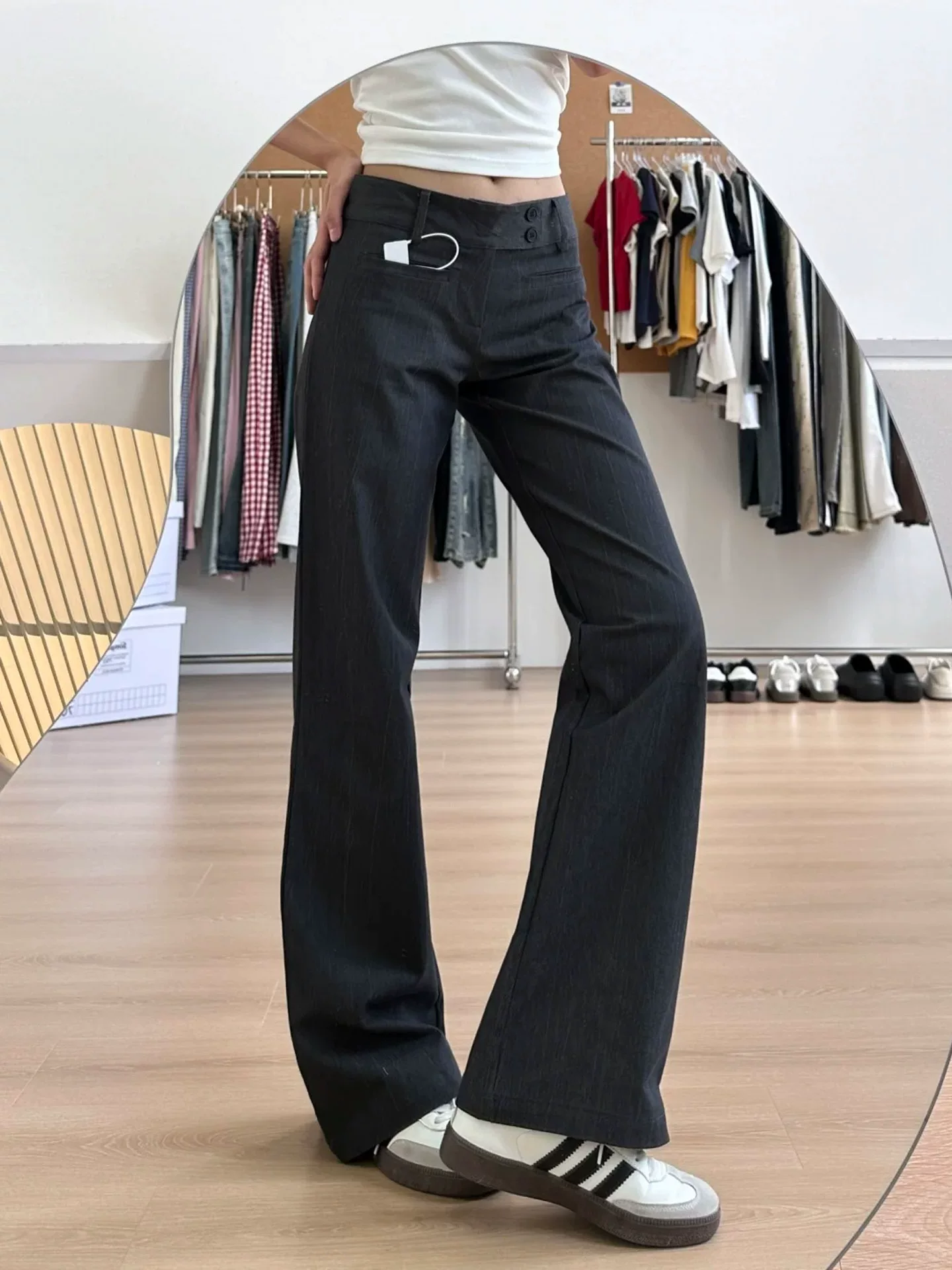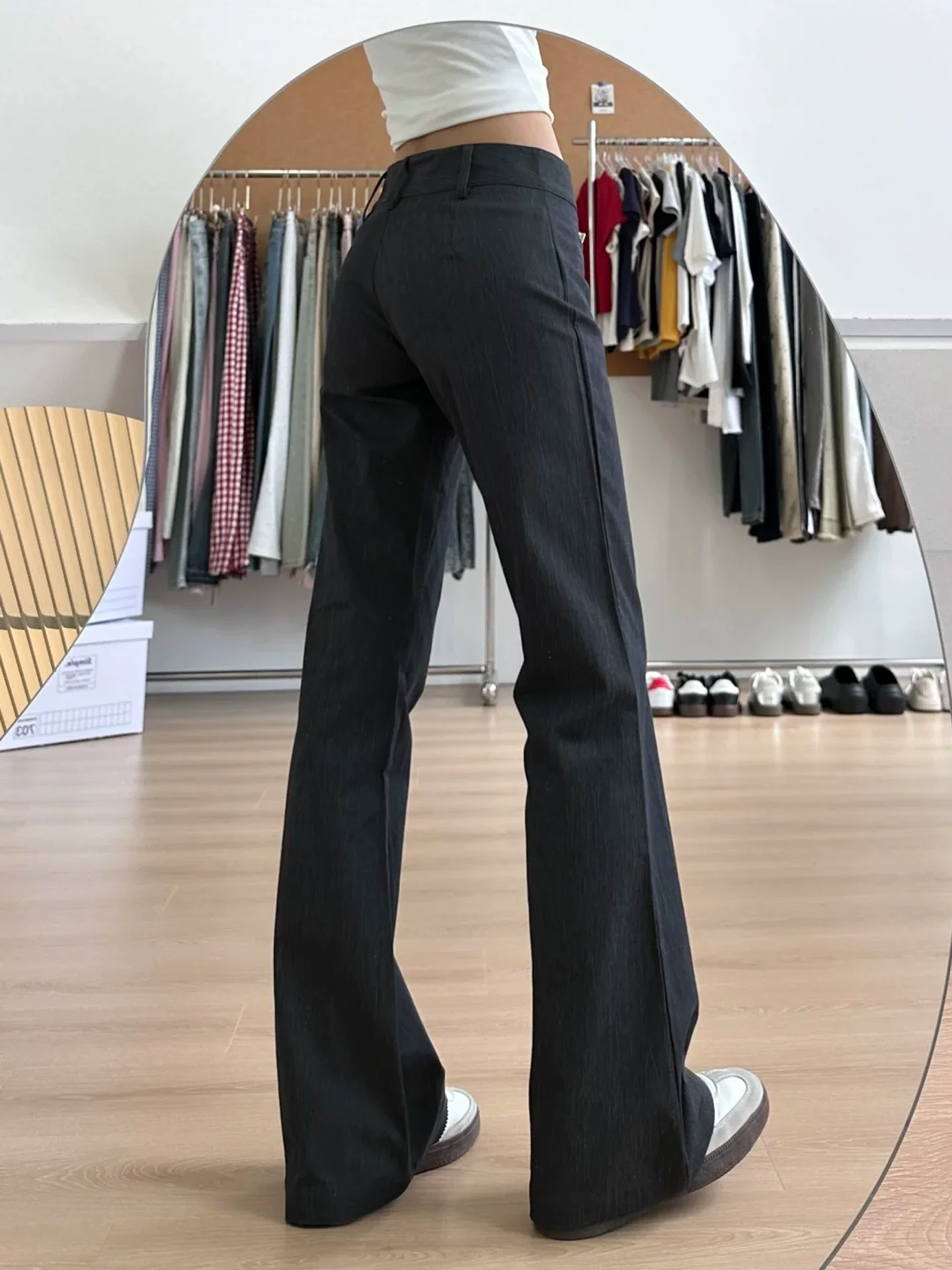 Quần âu kiểu Mỹ dành cho nữ, mùa thu, cỡ lớn, cạp cao, tôn dáng, chất liệu có vân, ôm dáng, hơi loe.