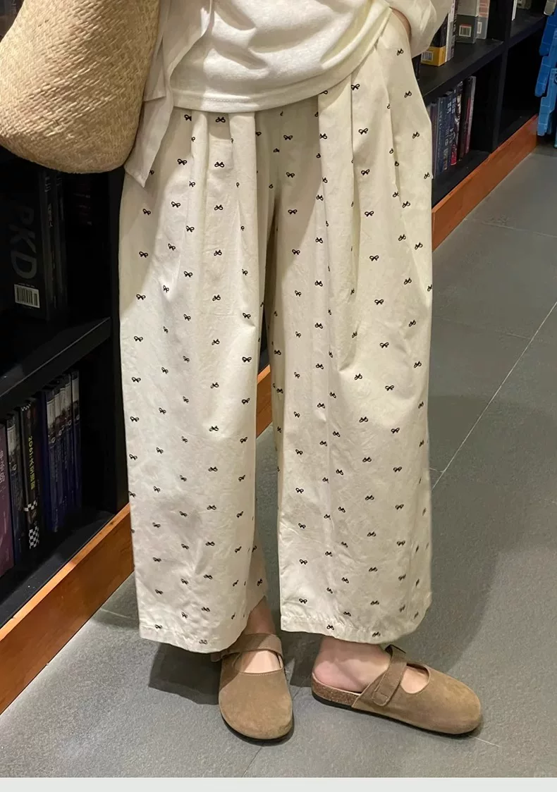 Quần âu kiểu Nhật có nơ dành cho nữ, quần bóng dáng rộng cỡ lớn mùa hè, quần ống rộng Yamamoto cạp cao, dáng rộng, tôn dáng