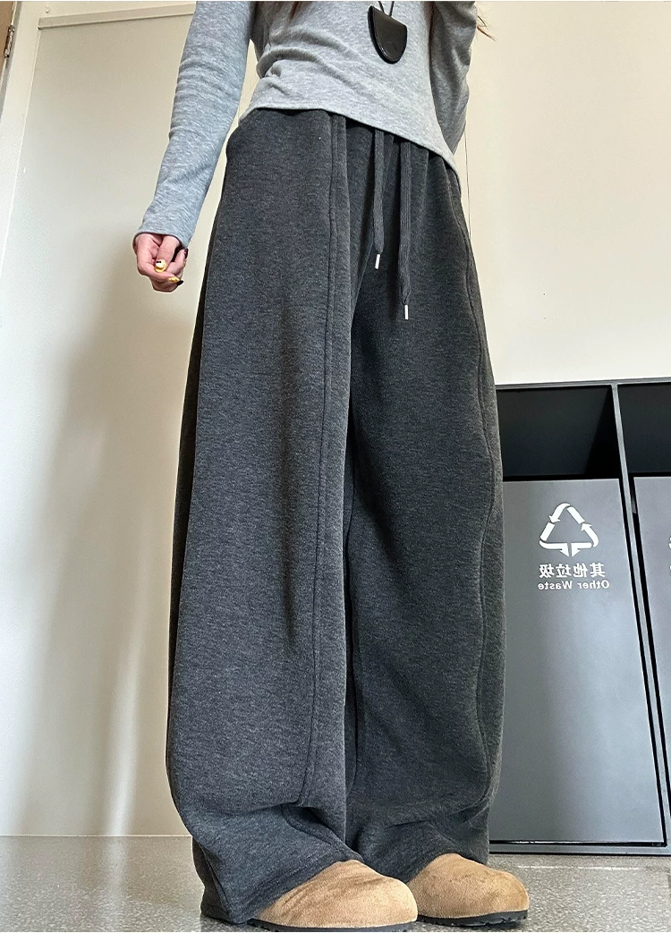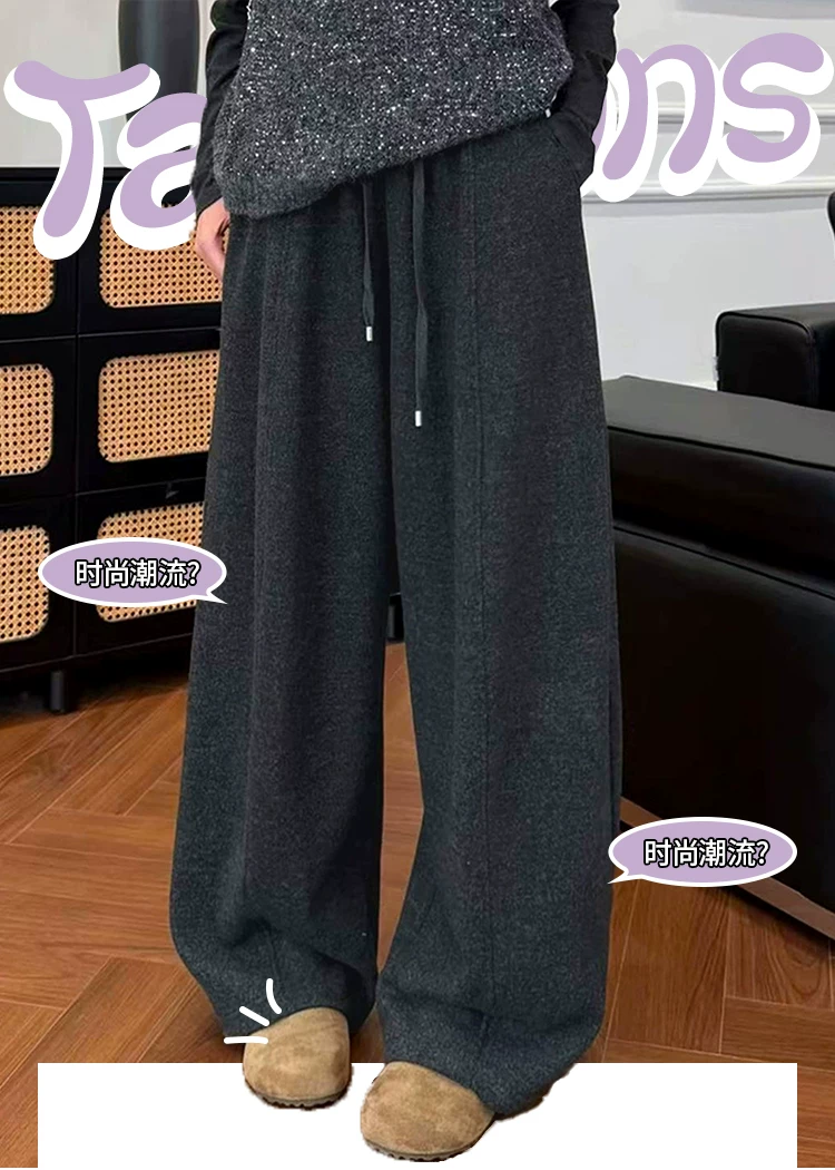 Quần âu len lưng cao dành cho nữ, mùa thu đông, cỡ lớn, lót lông cừu, mềm mại, tôn dáng, dáng quả lê, quần ống rộng kiểu scimitar