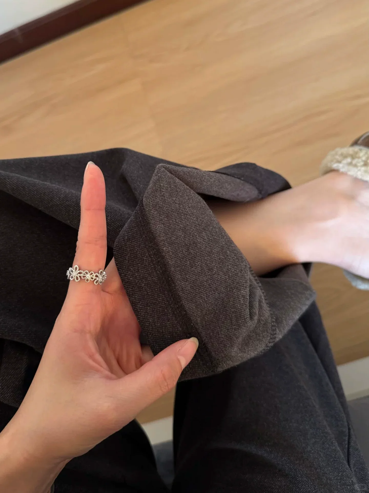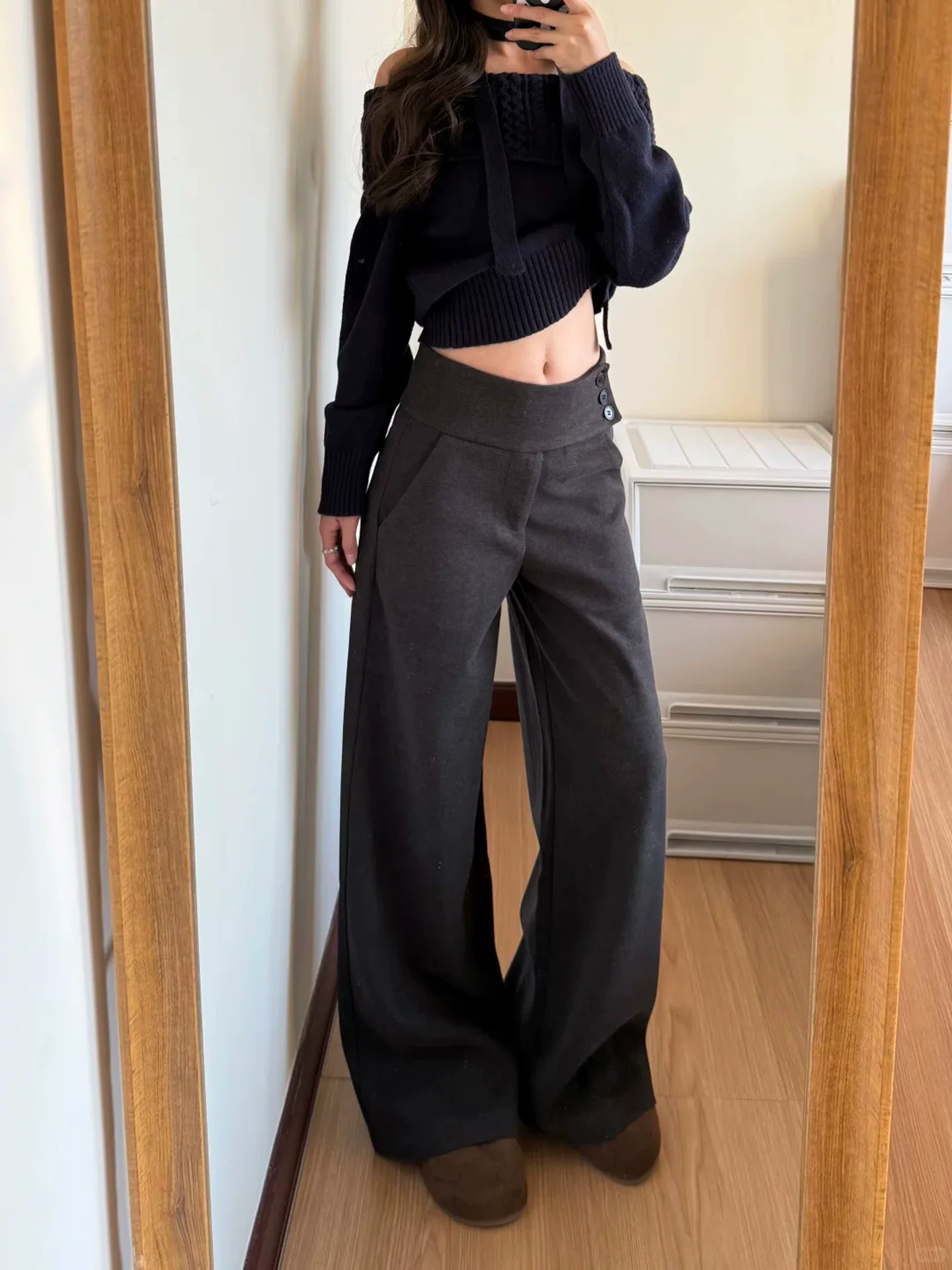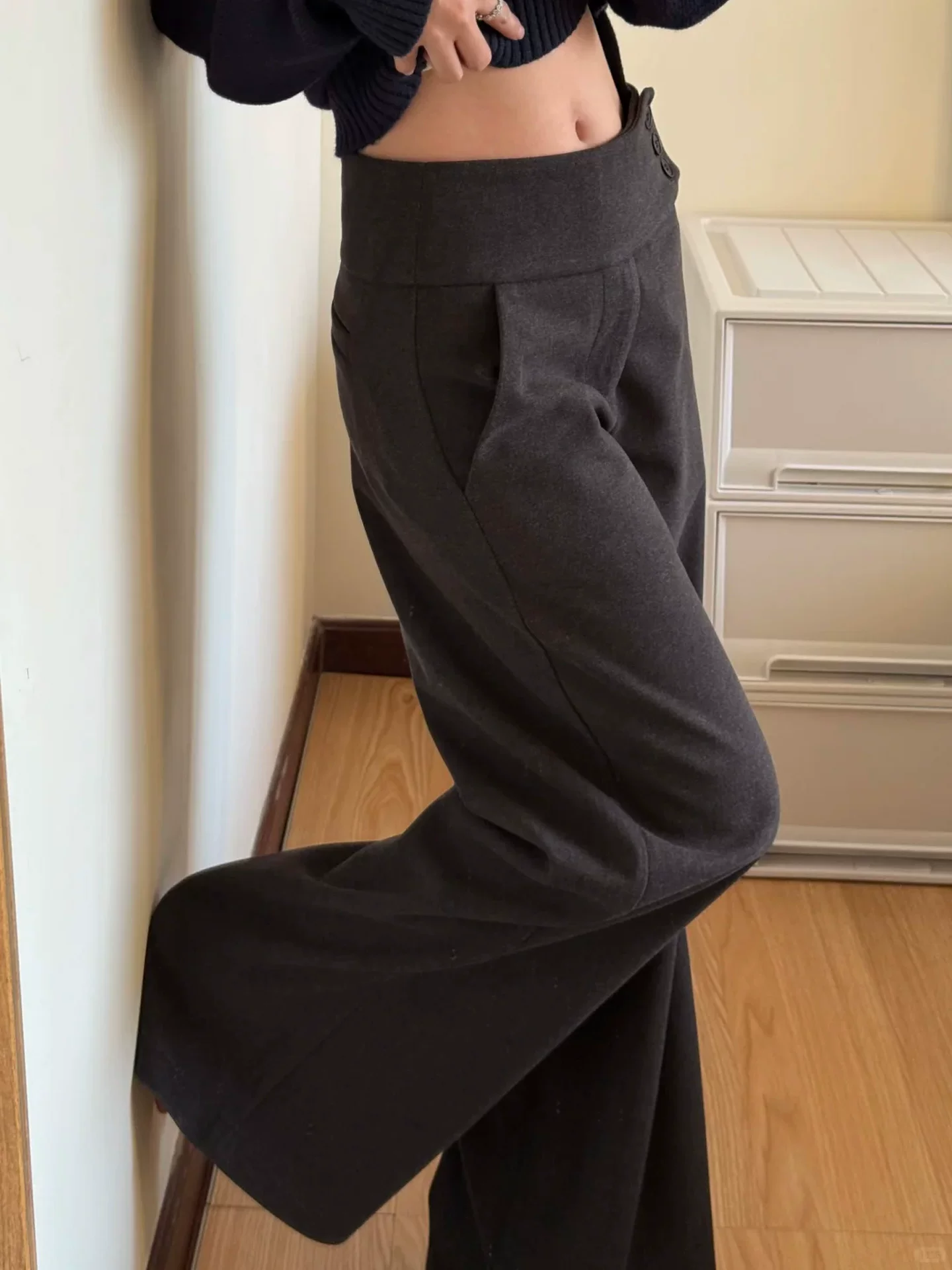 Quần âu len nữ, lót lông cừu mùa đông, dày dặn, cỡ lớn, lưng cao, dáng suôn, tôn dáng, dành cho người có dáng quả lê, quần ống rộng kiểu vest