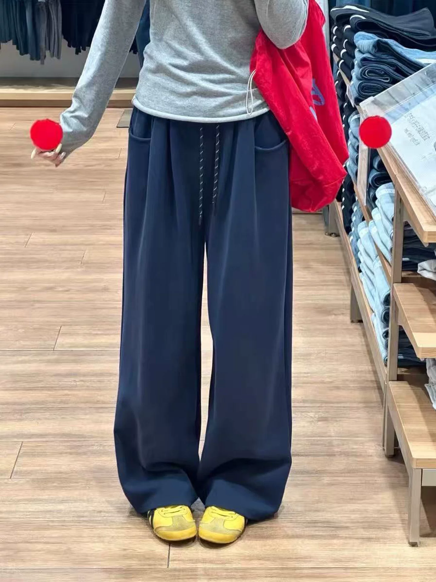 Quần âu lưng cao màu đen dành cho nữ, mùa thu, cỡ lớn, giảm béo, dáng quả lê, quần dài ống rộng