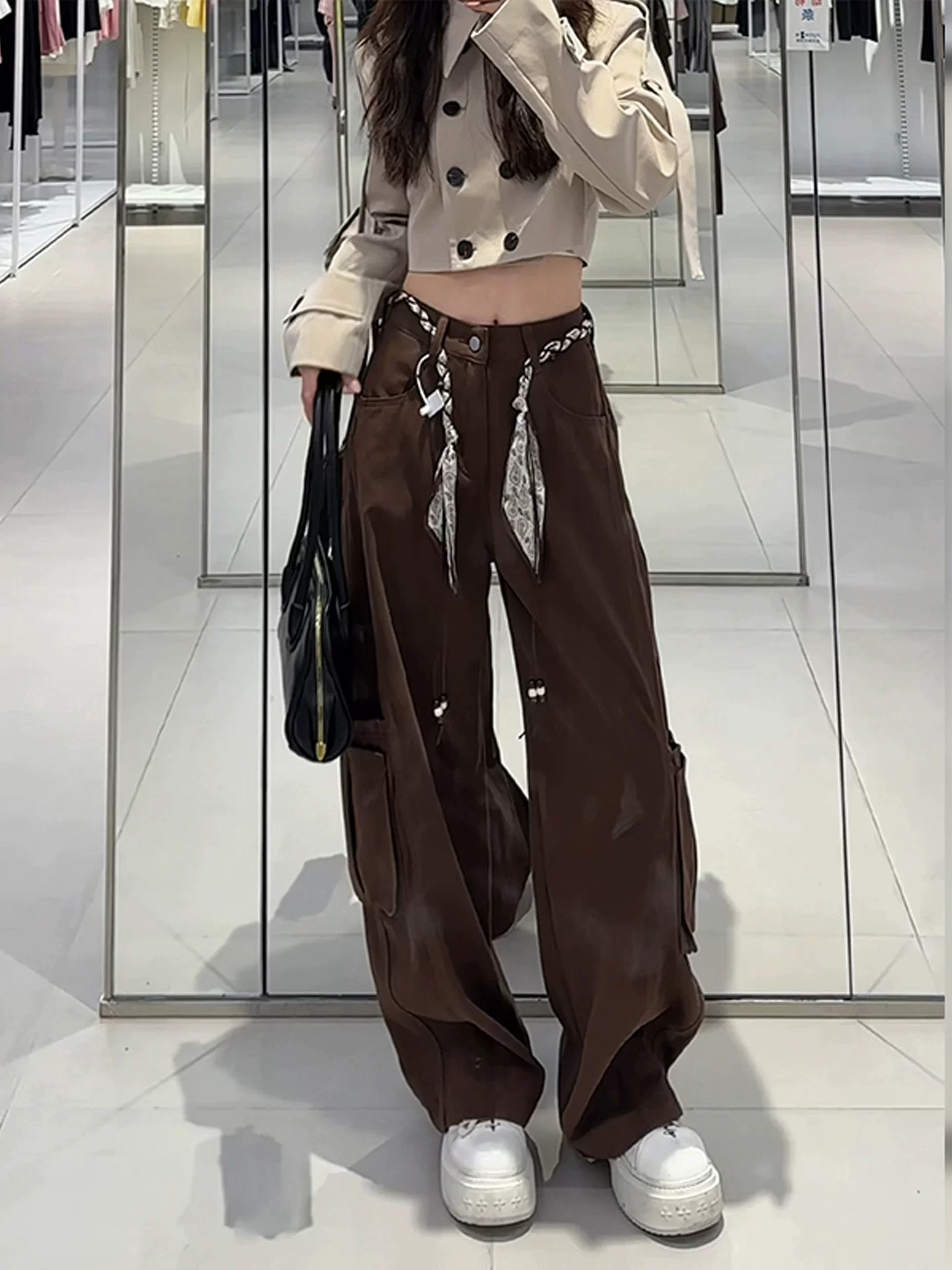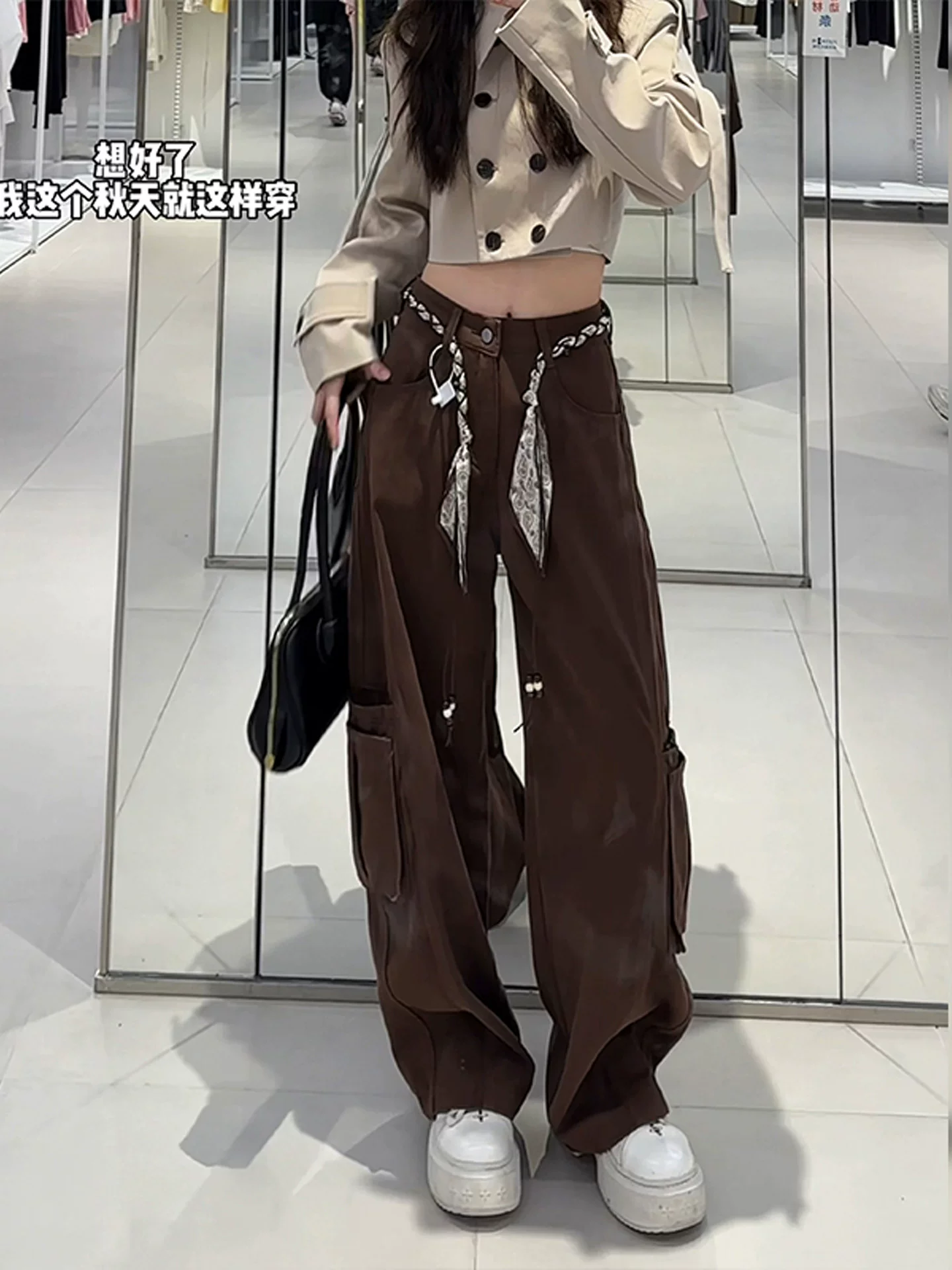 - Quần âu màu cà phê Melard dành cho nữ, thiết kế mùa thu 2025, size lớn, cạp cao, dáng rộng, tôn dáng, ống rộng