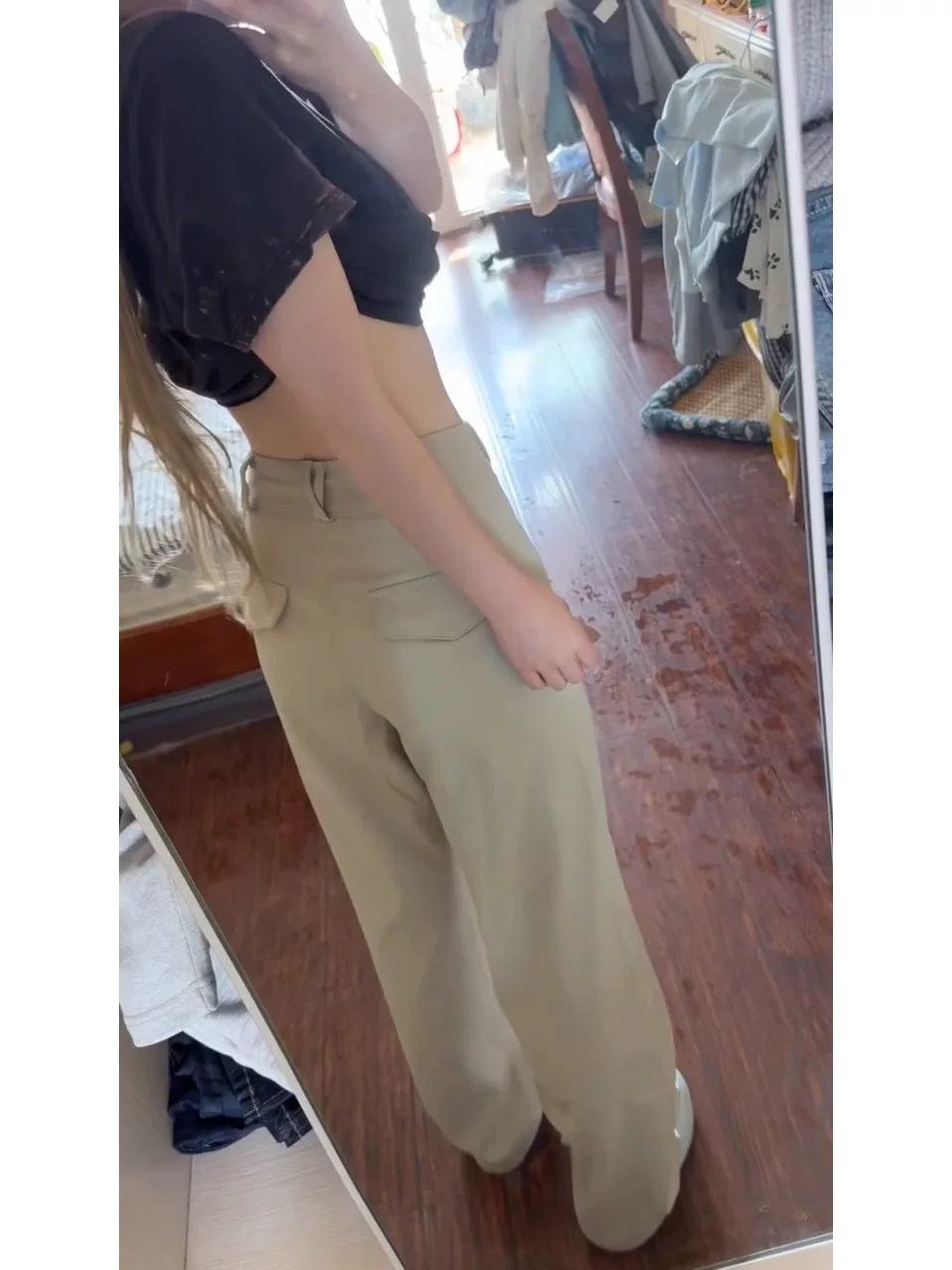 - Quần âu màu mơ dành cho nữ, size lớn mùa hè, cạp cao, dáng rộng, tôn dáng, phù hợp với dáng người hình quả lê, quần cargo ống rộng dáng thẳng.