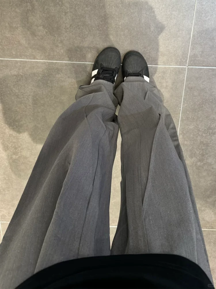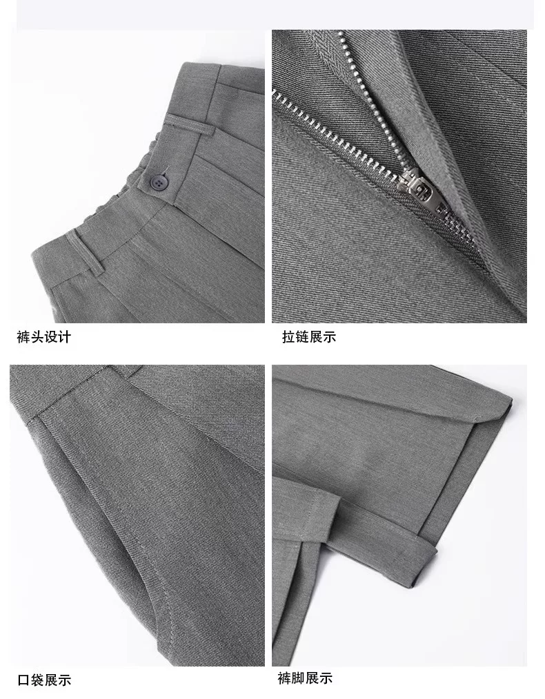 - Quần âu màu xám dành cho nữ, kiểu dáng mùa xuân mới, cỡ lớn, lưng cao, tôn dáng, ống thẳng, ống rộng, dài chạm sàn