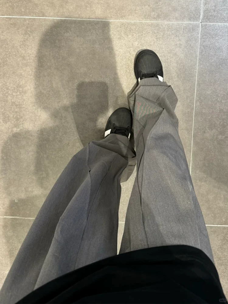 Quần âu màu xám dành cho nữ, kiểu dáng mùa xuân mới, cỡ lớn, lưng cao, tôn dáng, ống thẳng, ống rộng, dài chạm sàn