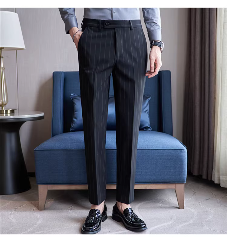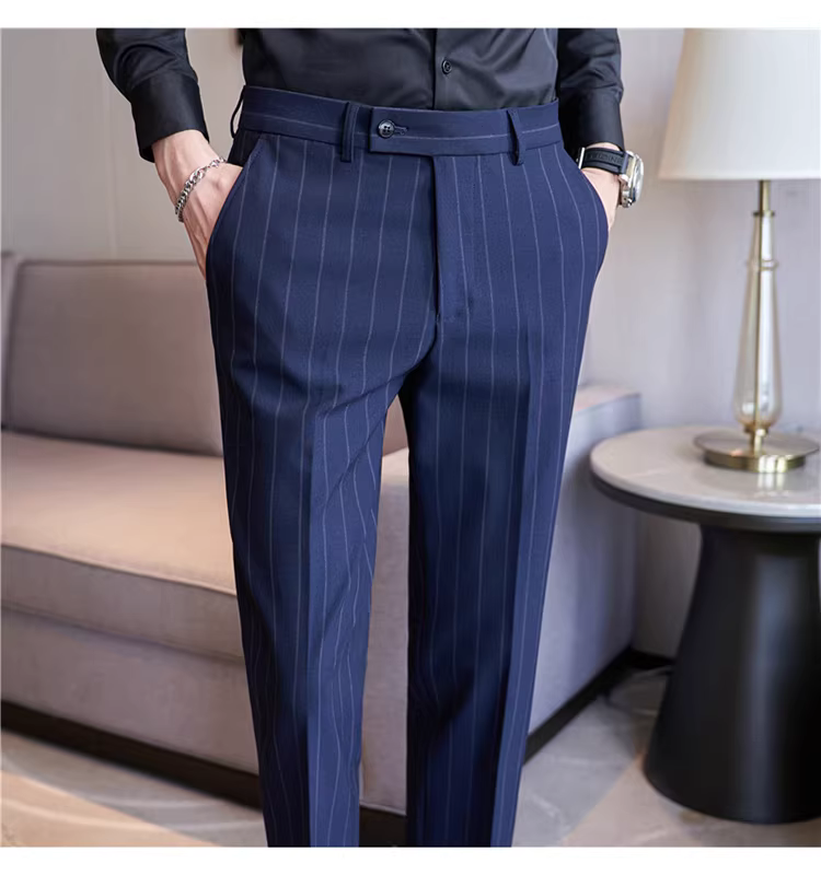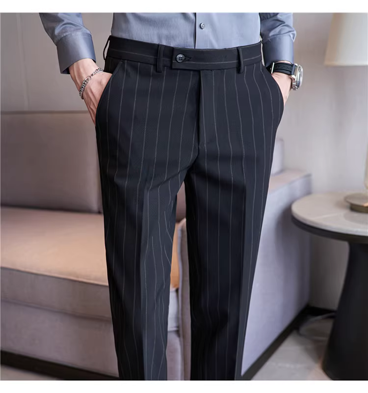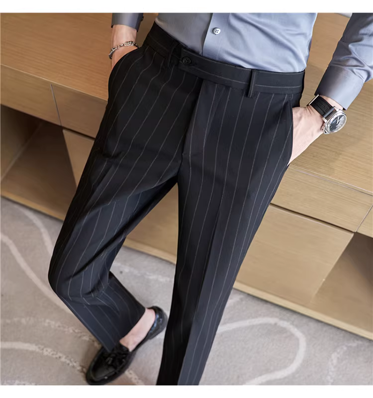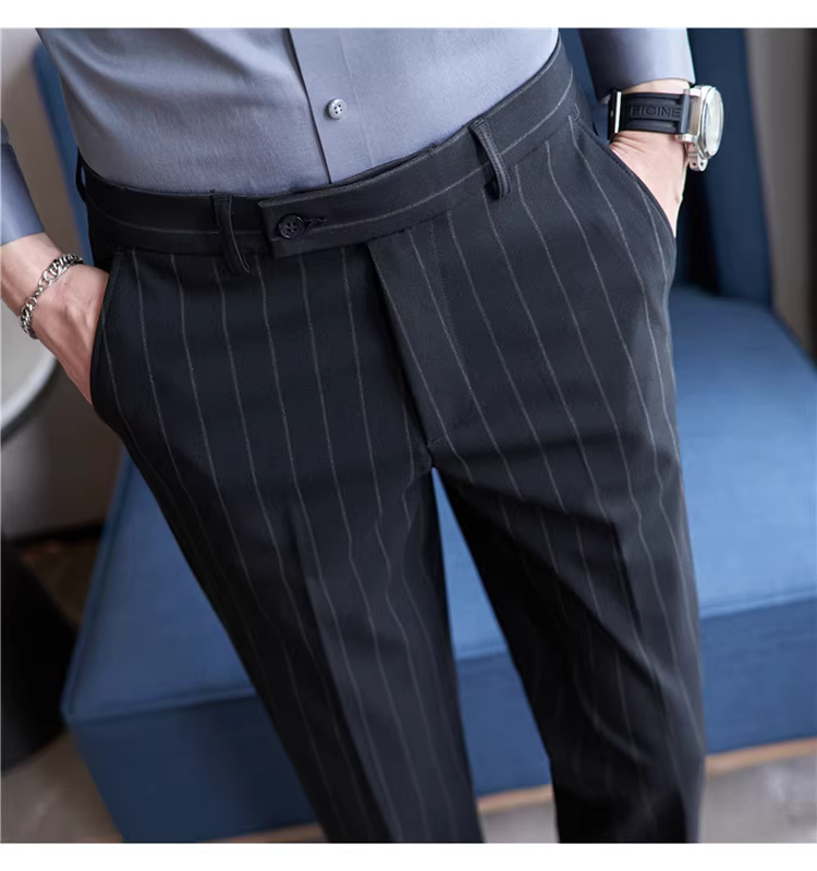 Quần âu nam cao cấp kẻ sọc, kiểu dáng ôm body xu hướng mới thu đông 2024, quần âu kiểu Anh lịch lãm, quần âu thường ngày