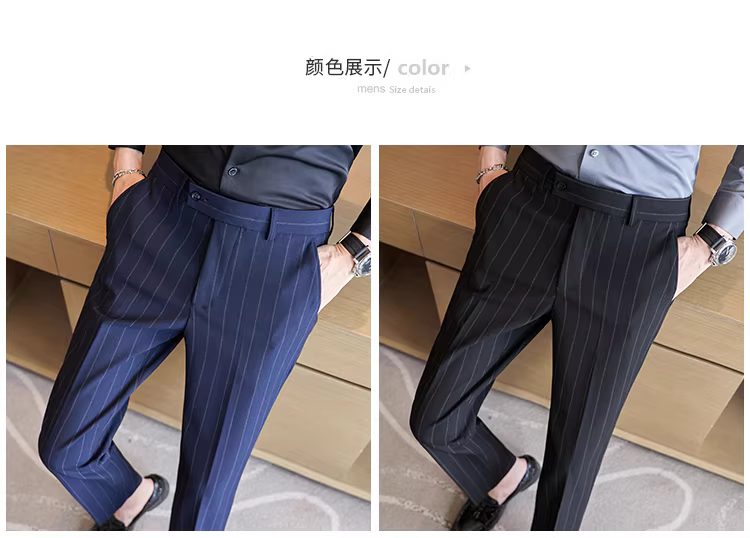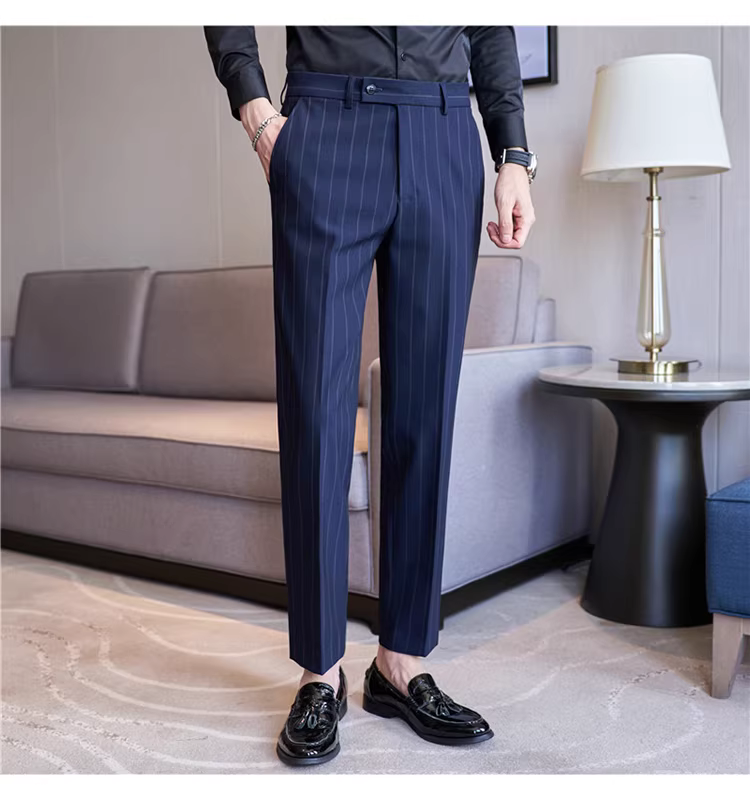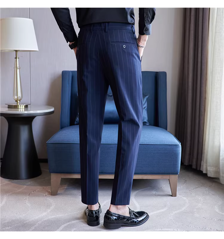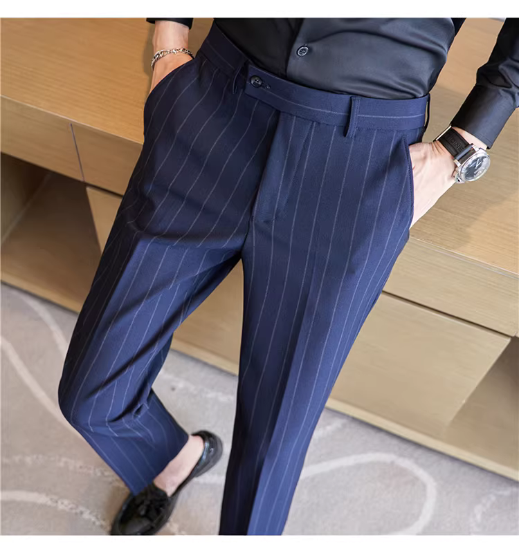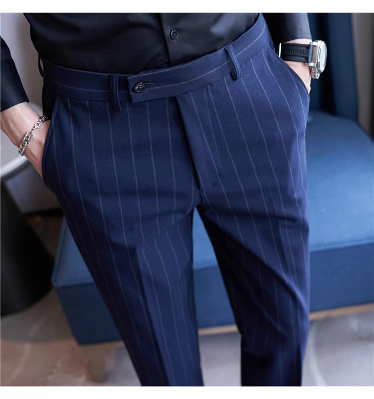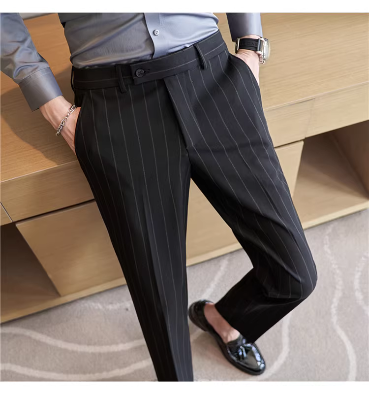 Quần âu nam cao cấp kẻ sọc, kiểu dáng ôm body xu hướng mới thu đông 2024, quần âu kiểu Anh lịch lãm, quần âu thường ngày