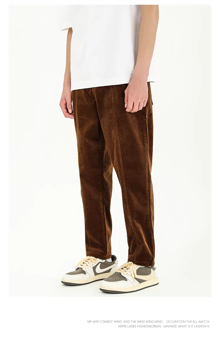Quần âu nam chất liệu corduroy kiểu Mỹ, dáng xuông, chất liệu mềm mại, đa năng, phong cách thời trang, kiểu dáng ôm vừa vặn.