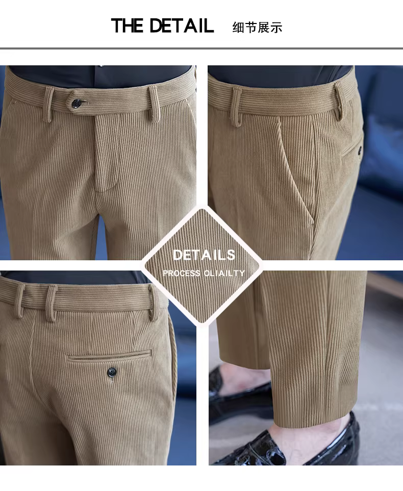 - Quần âu nam chất liệu corduroy, mùa thu đông, thời trang cao cấp, đa năng, phong cách công sở Anh, kiểu dáng ôm body.
