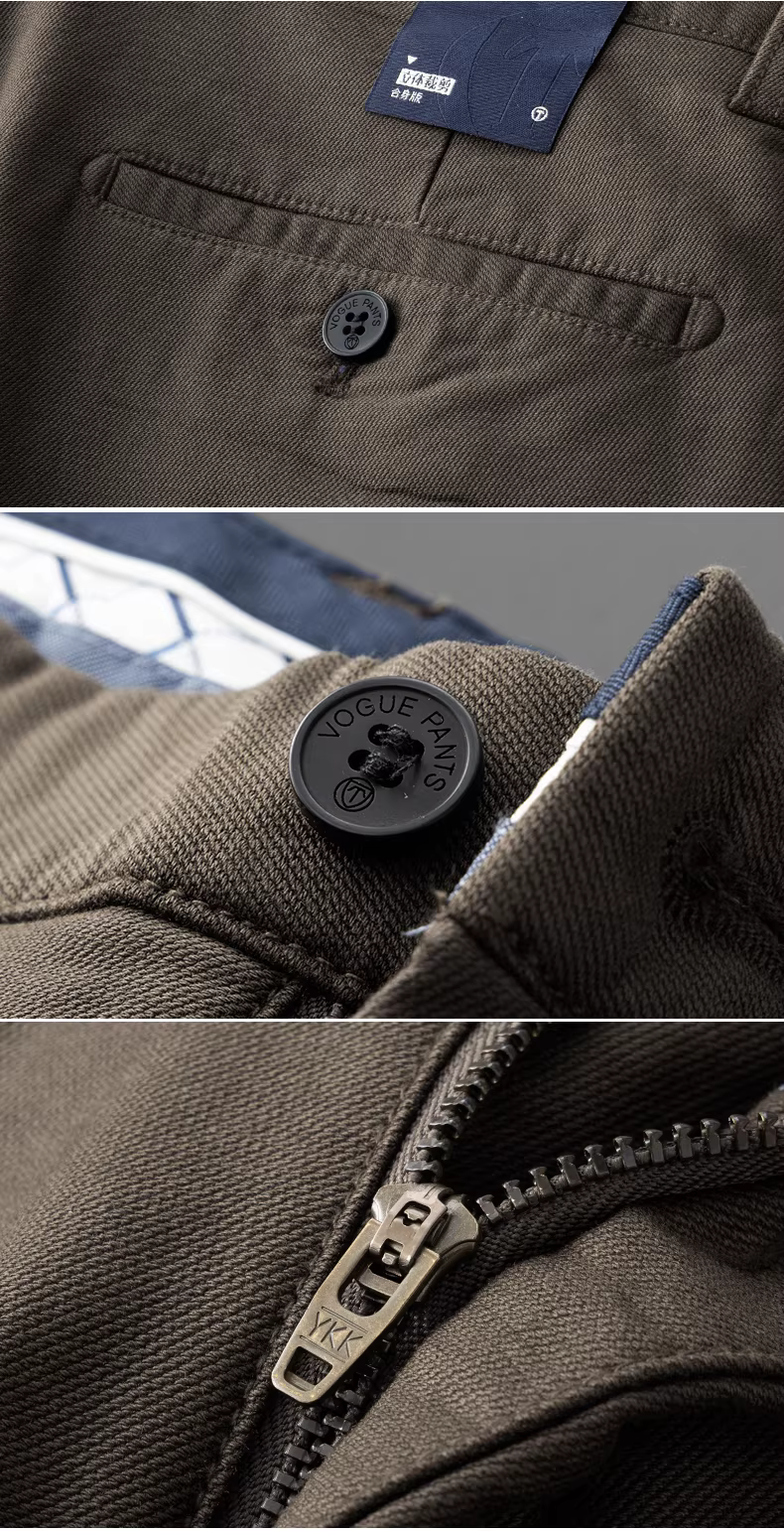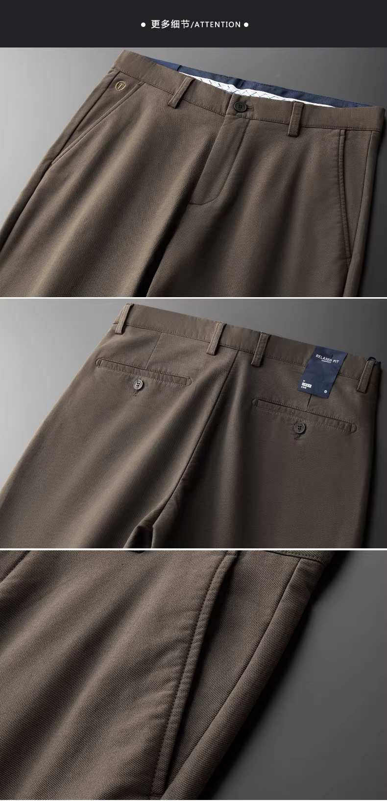 Quần âu nam chất liệu cotton chải kỹ, kiểu dáng thẳng, chất liệu dày dặn, mặc thoải mái, đa năng, thích hợp cho công việc.