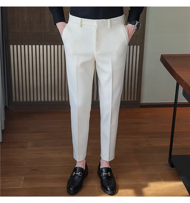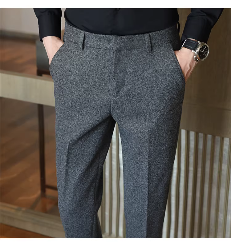 Quần âu nam chất liệu len dày, mùa thu đông, ấm áp, quần cao cấp, kiểu dáng ôm body, chất liệu có vân, quần dài, không nhăn, thích hợp cho công việc.