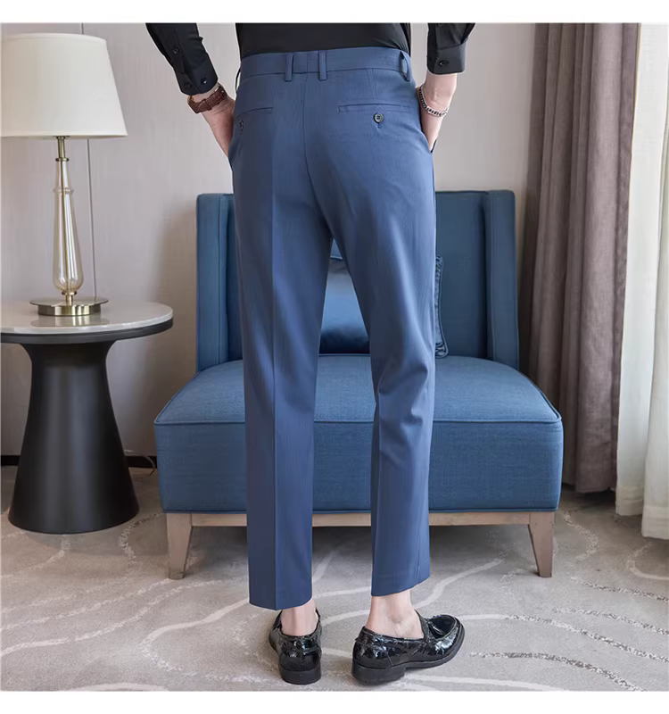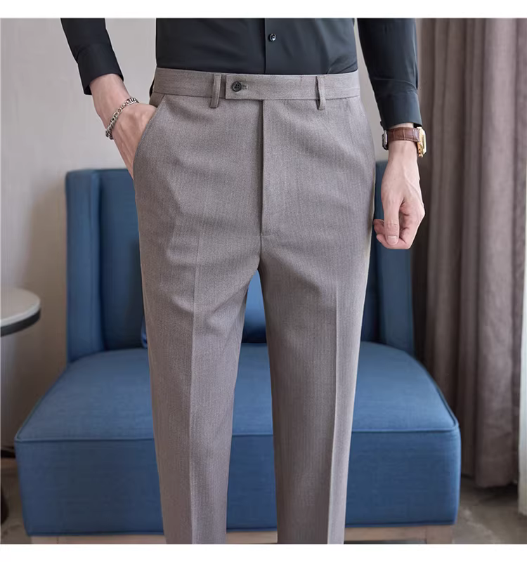 Quần âu nam chất liệu sọc tinh tế, kiểu dáng ôm vừa vặn, mới, thích hợp cho mùa xuân và mùa thu, quần công sở lịch lãm.