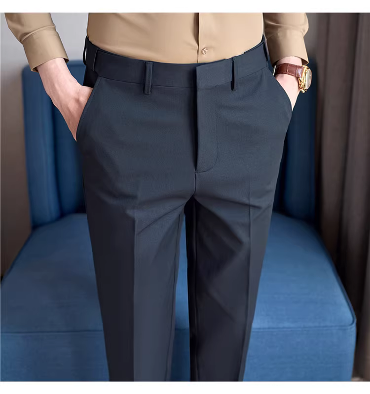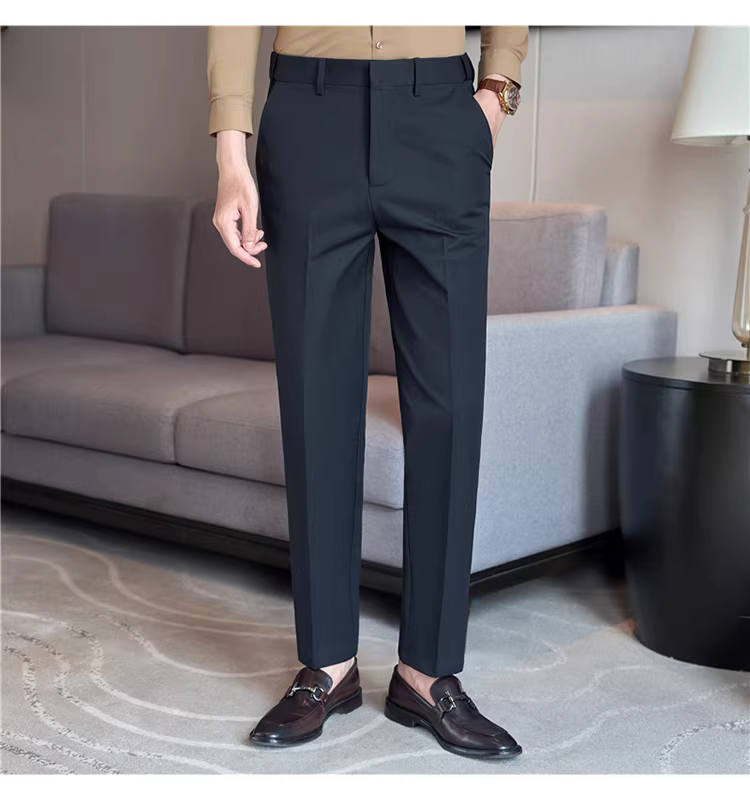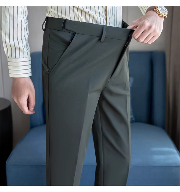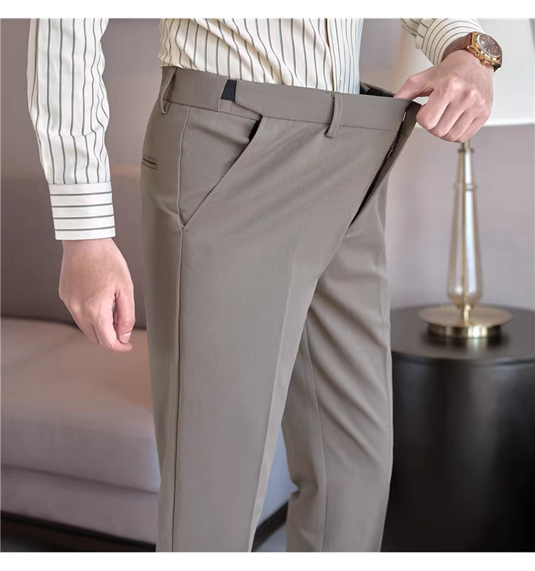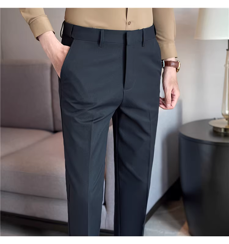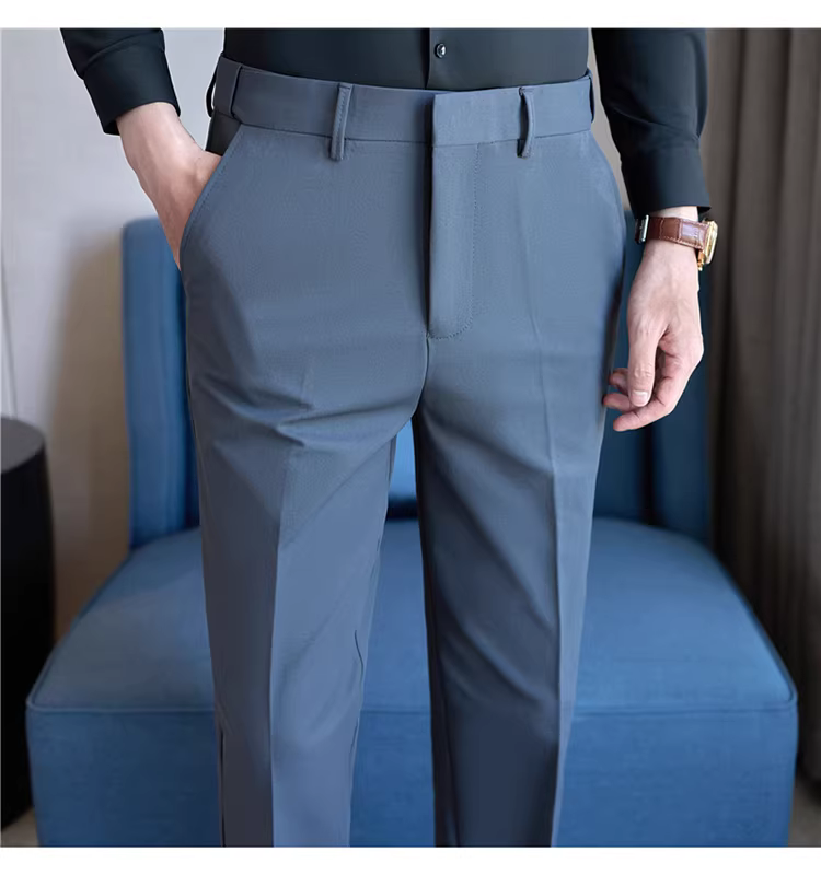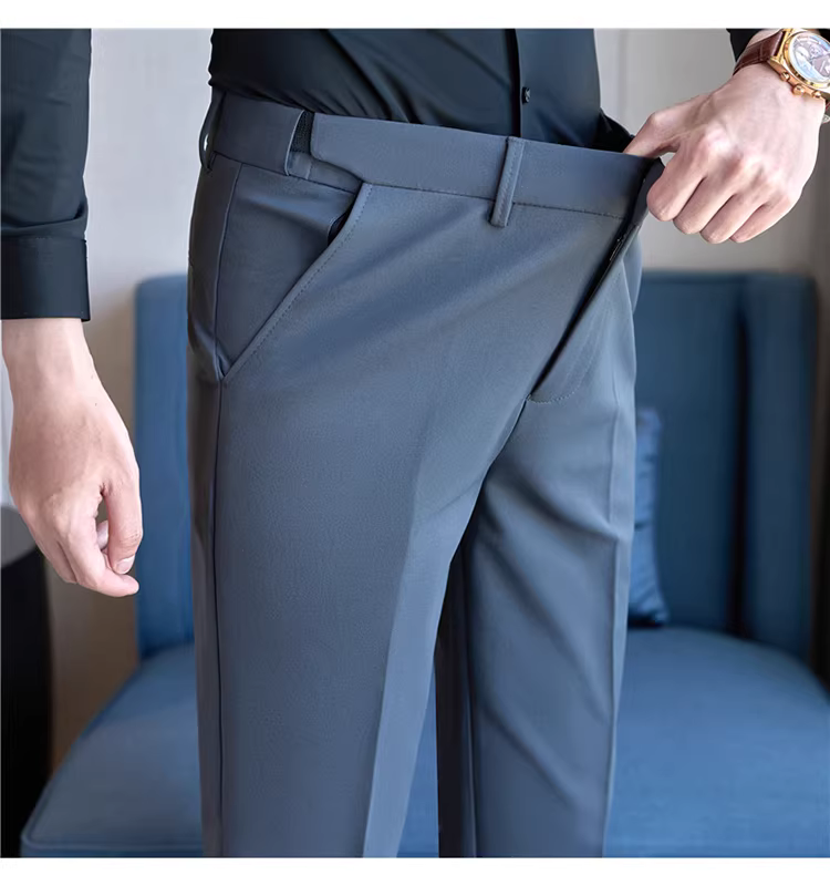 Quần âu nam chất liệu thun co giãn không lộ, kiểu dáng xuông, dễ chăm sóc, ôm dáng, dài, mới năm 2025.