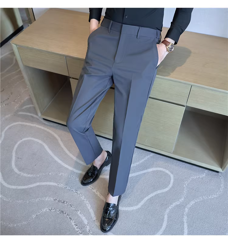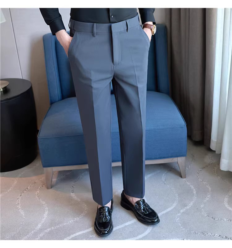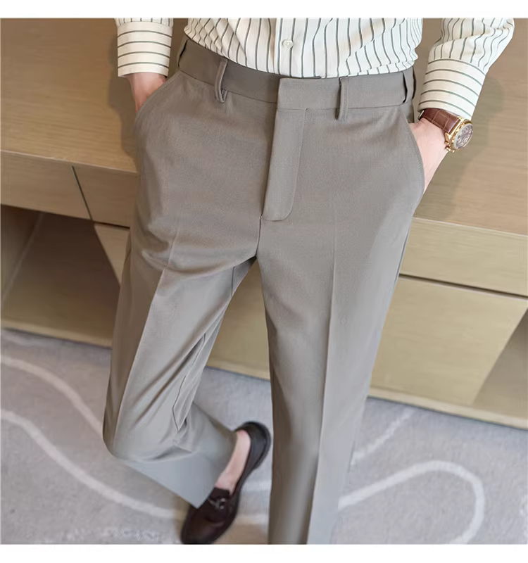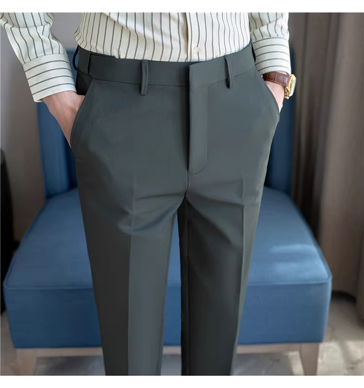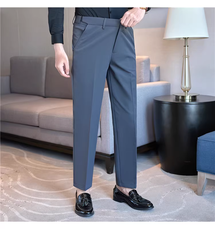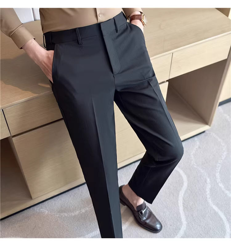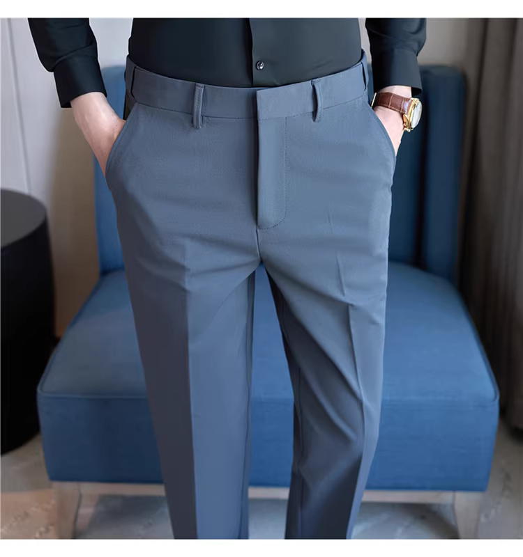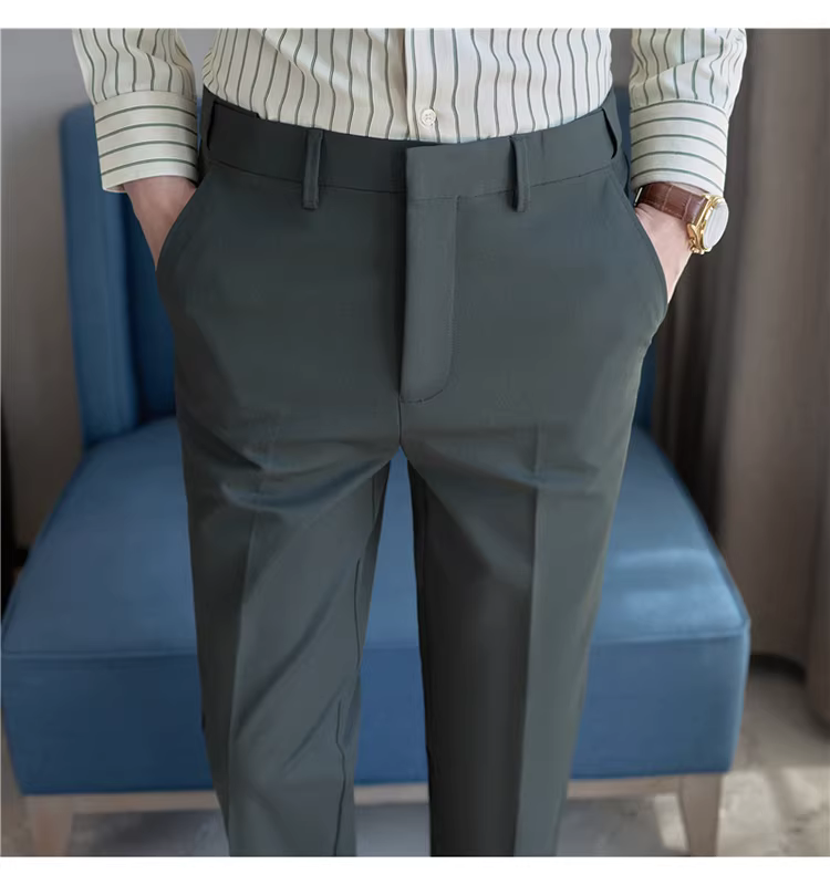 Quần âu nam chất liệu thun co giãn không lộ, kiểu dáng xuông, dễ chăm sóc, ôm dáng, dài, mới năm 2025.