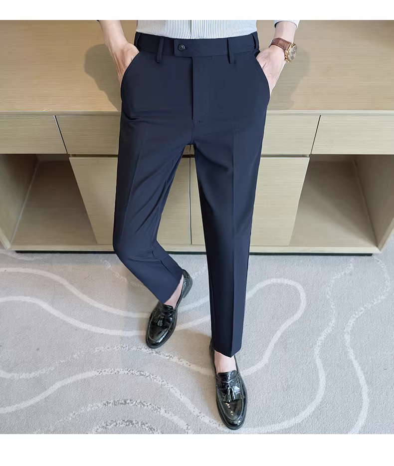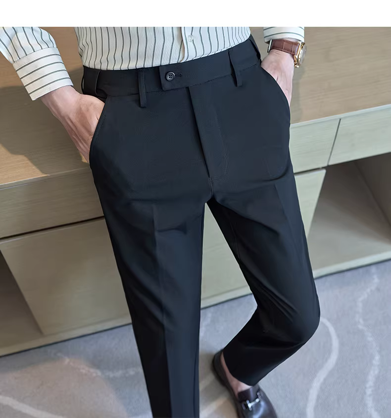 Quần âu nam chất liệu thun co giãn, kiểu dáng xuông, màu trơn cao cấp, đa năng, chất liệu mềm mại, ôm dáng, lịch sự và không nhăn.