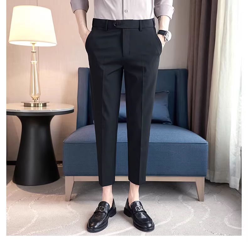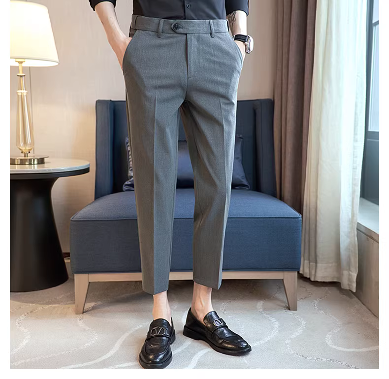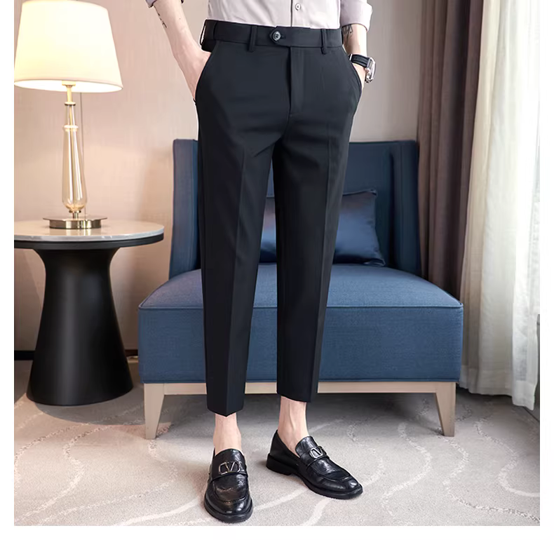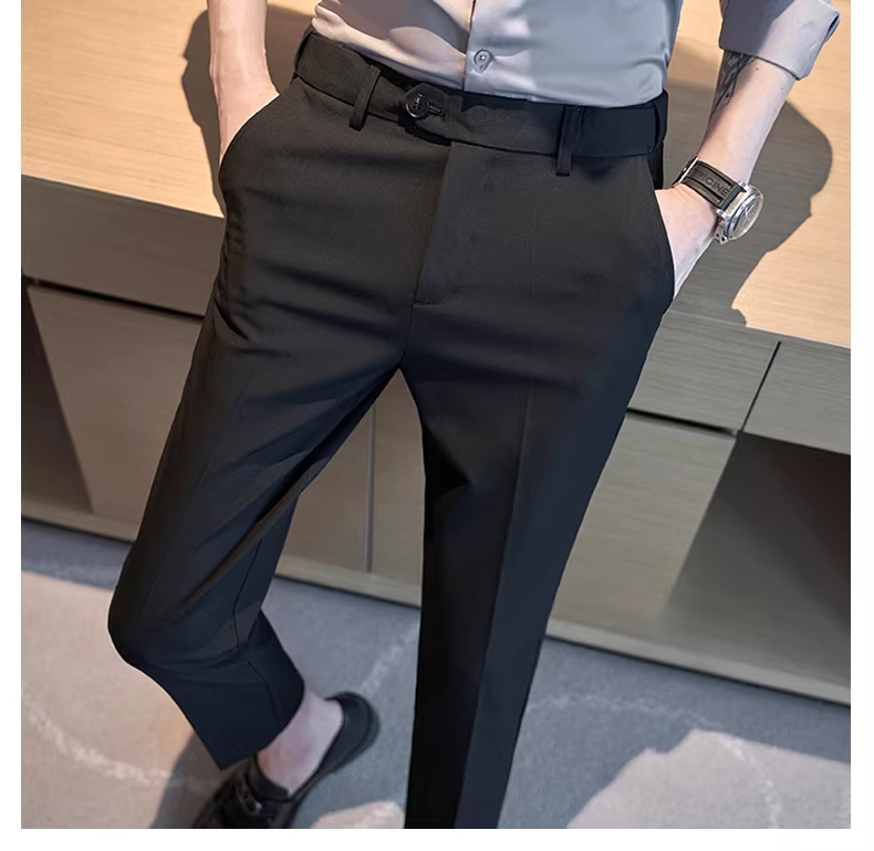 - Quần âu nam chất liệu thun co giãn, kiểu dáng xuông, màu trơn, mới xuân hè, dáng ôm vừa vặn, dài đến mắt cá chân, dành cho nam giới trẻ.