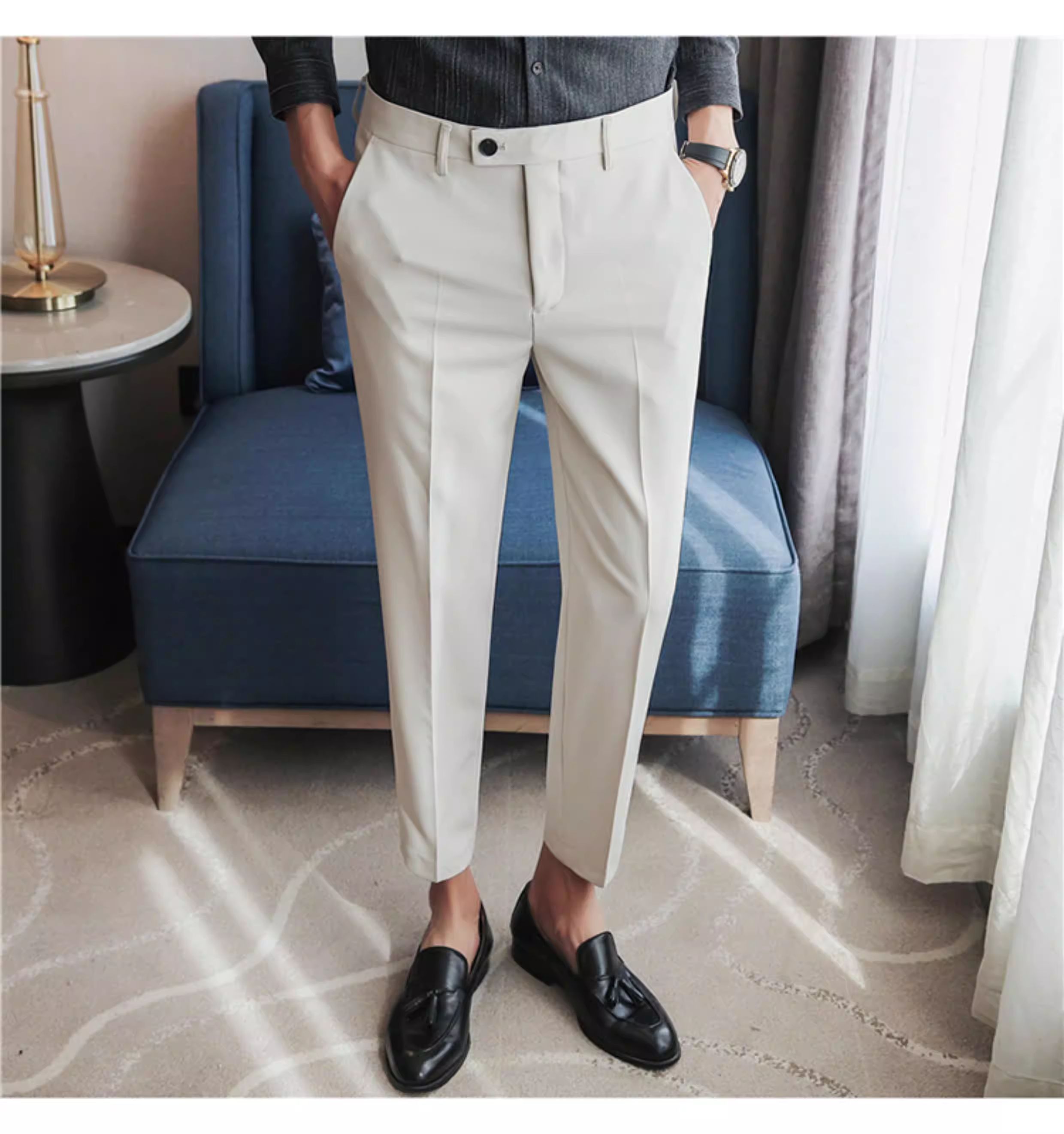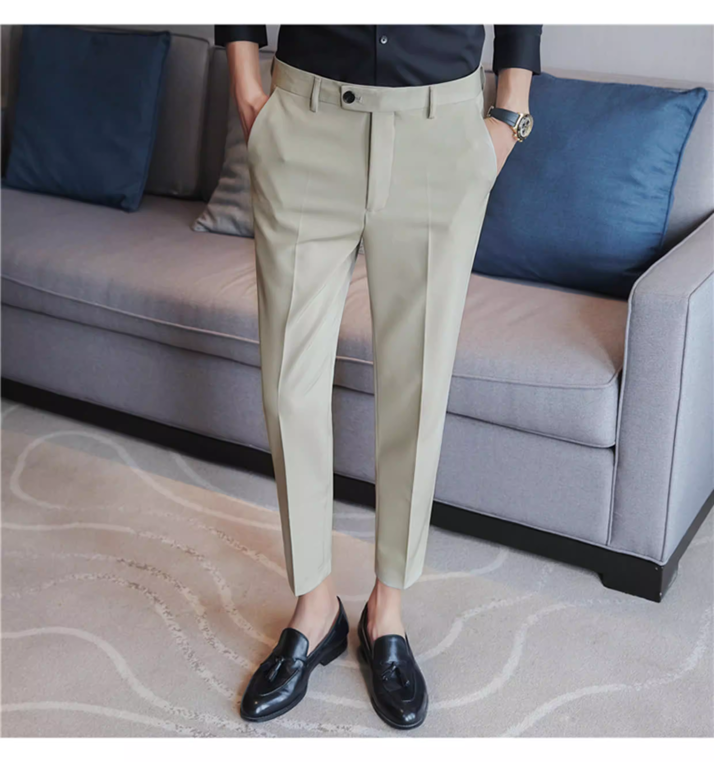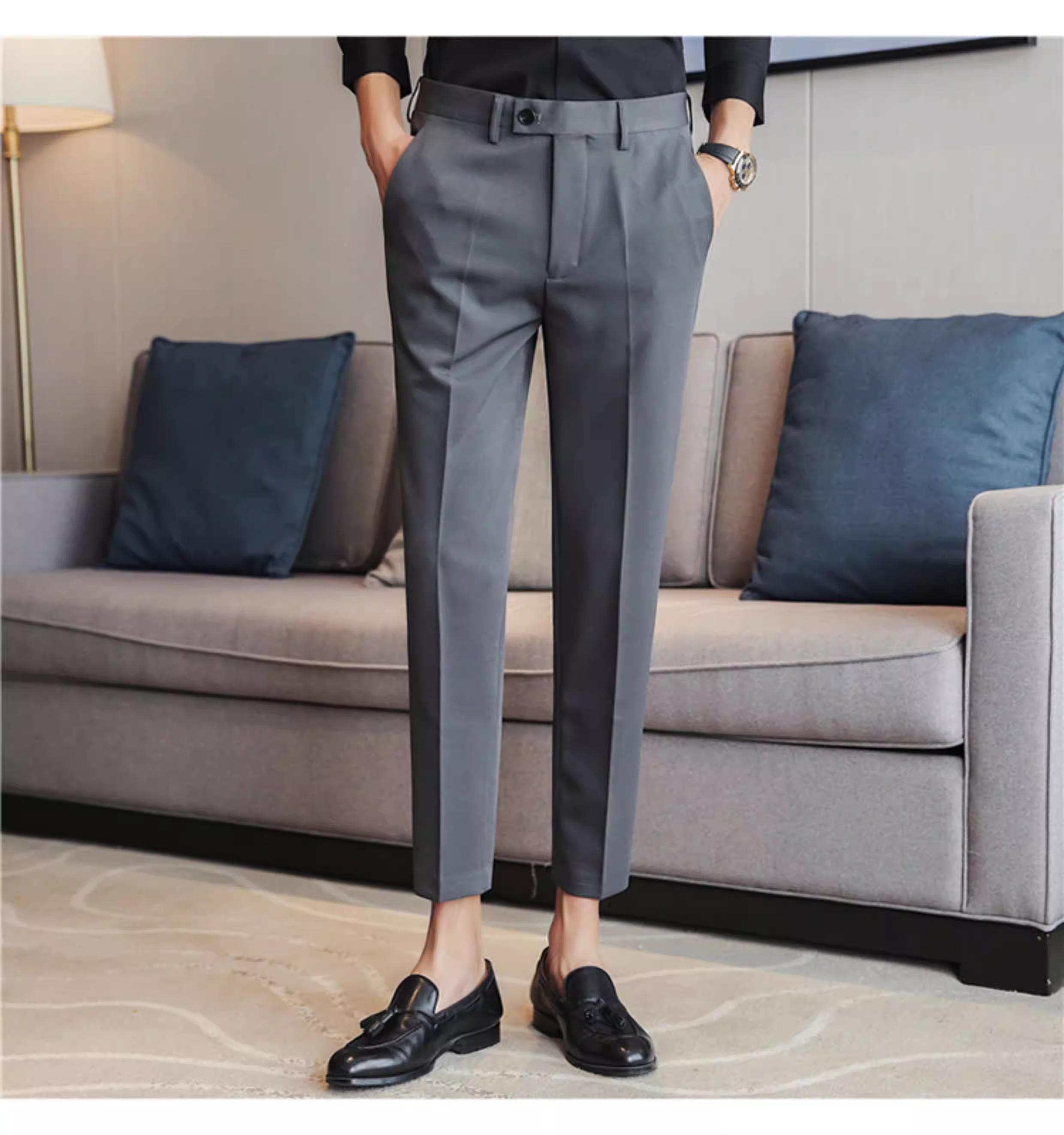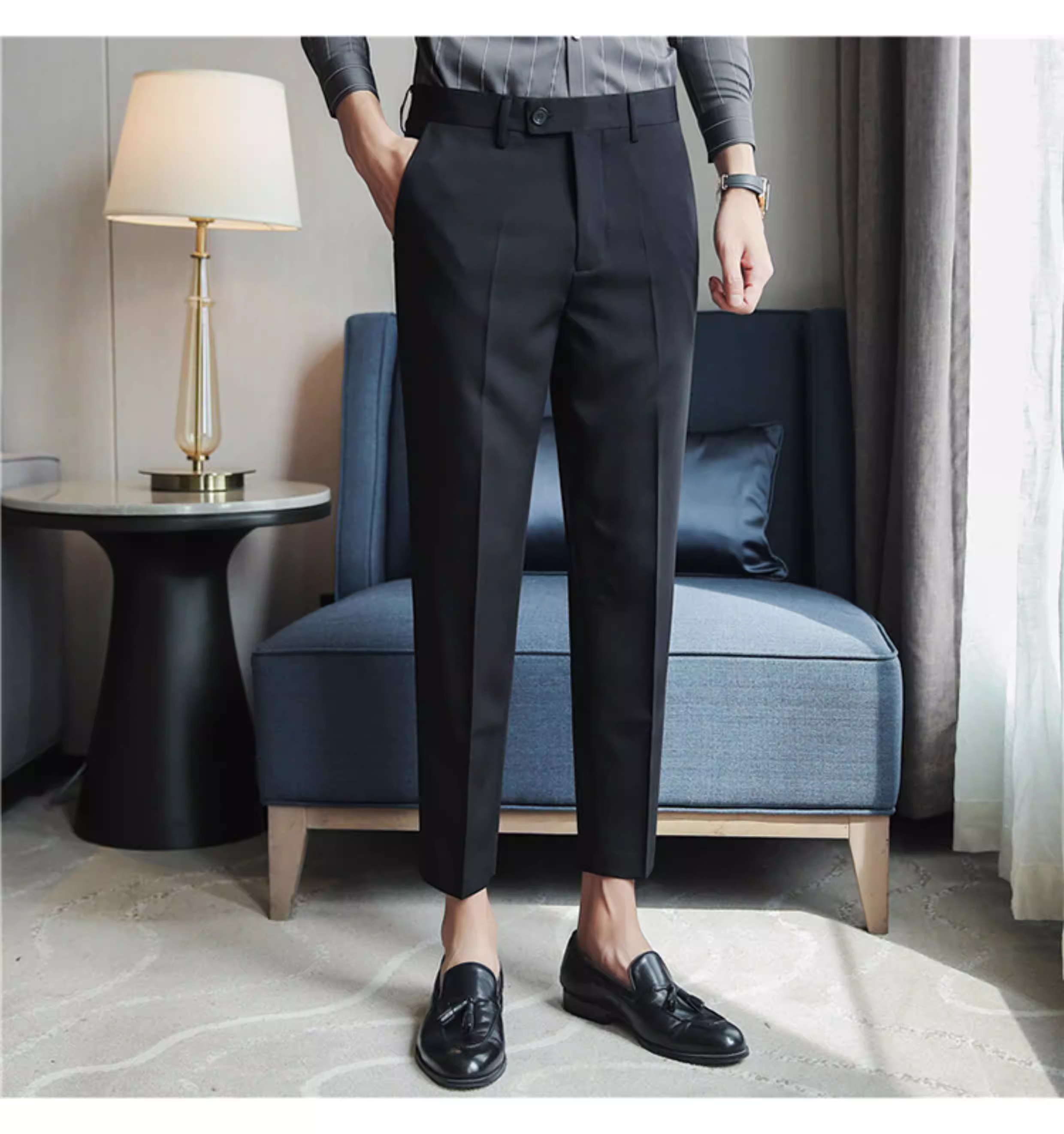 Quần âu nam chín phần, kiểu dáng mùa hè mỏng nhẹ, ôm dáng, ống côn, phong cách Hàn Quốc, quần âu nam chín phần hợp thời trang và cá tính.