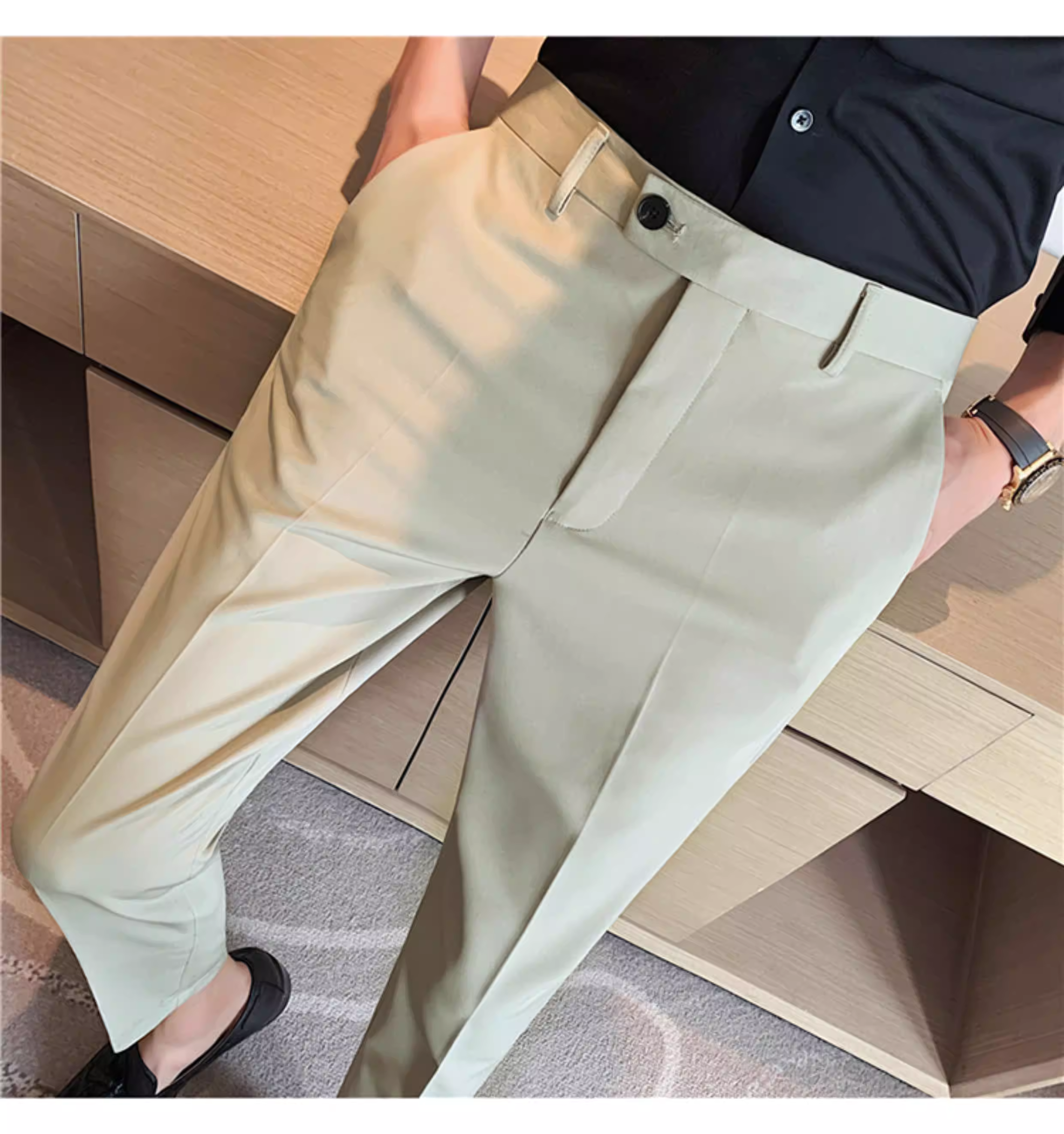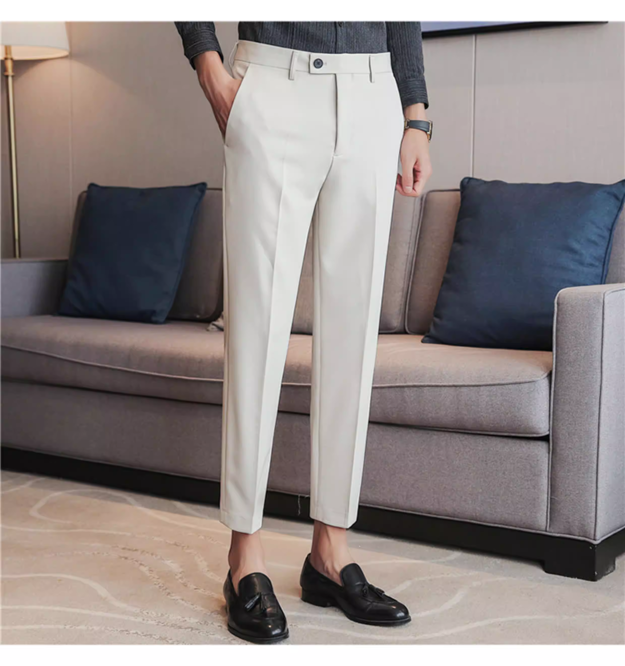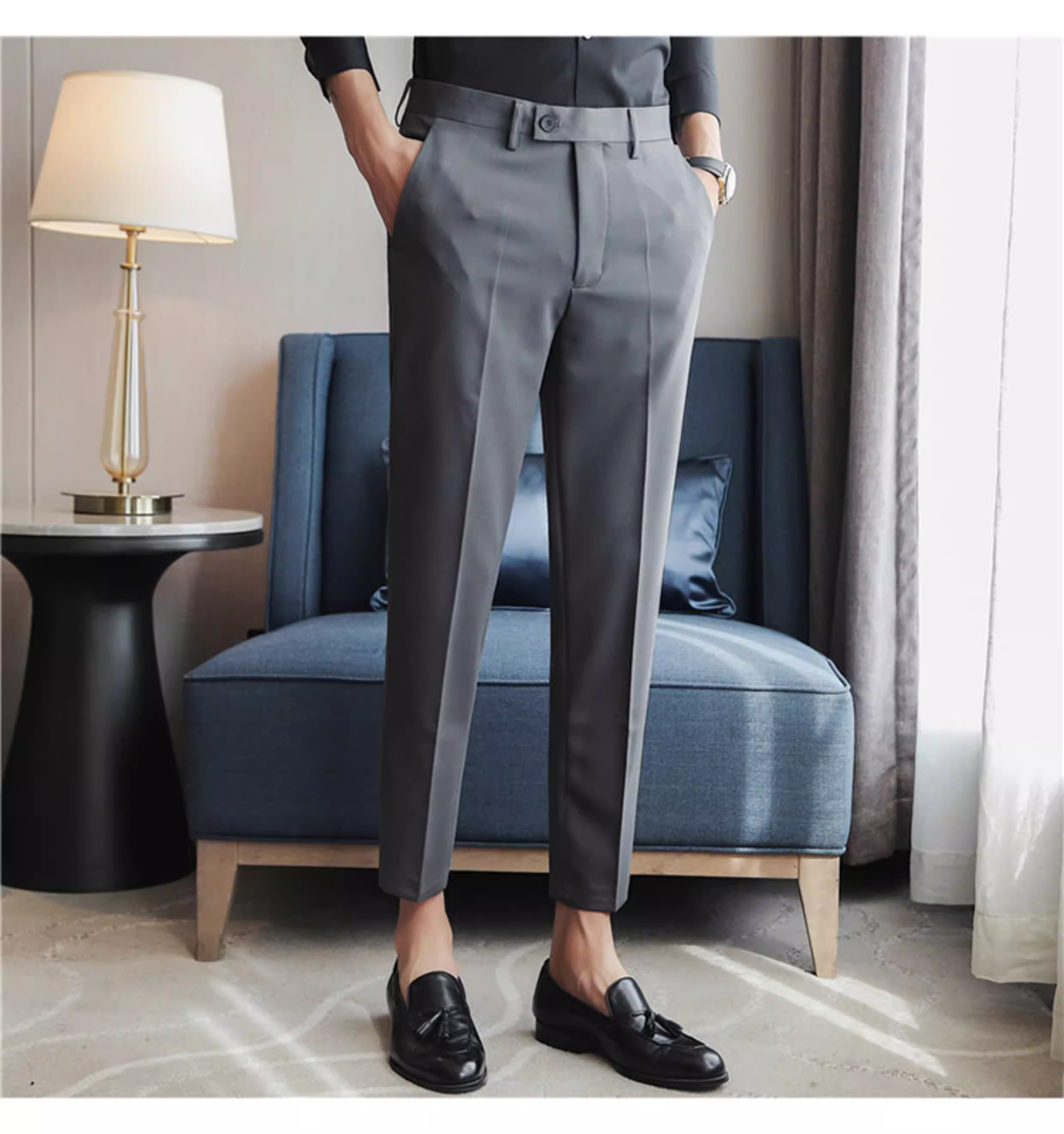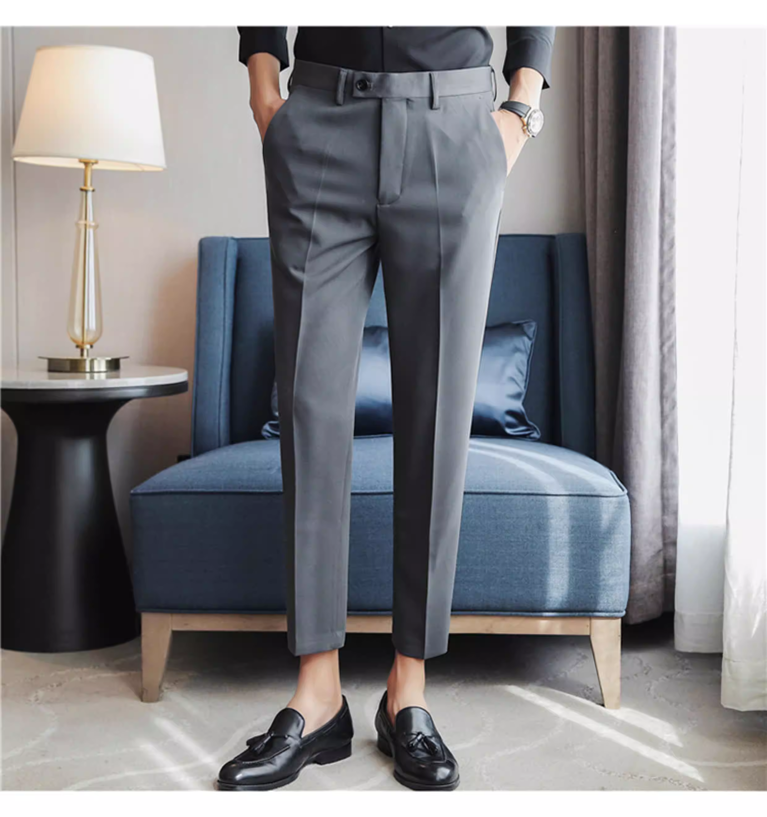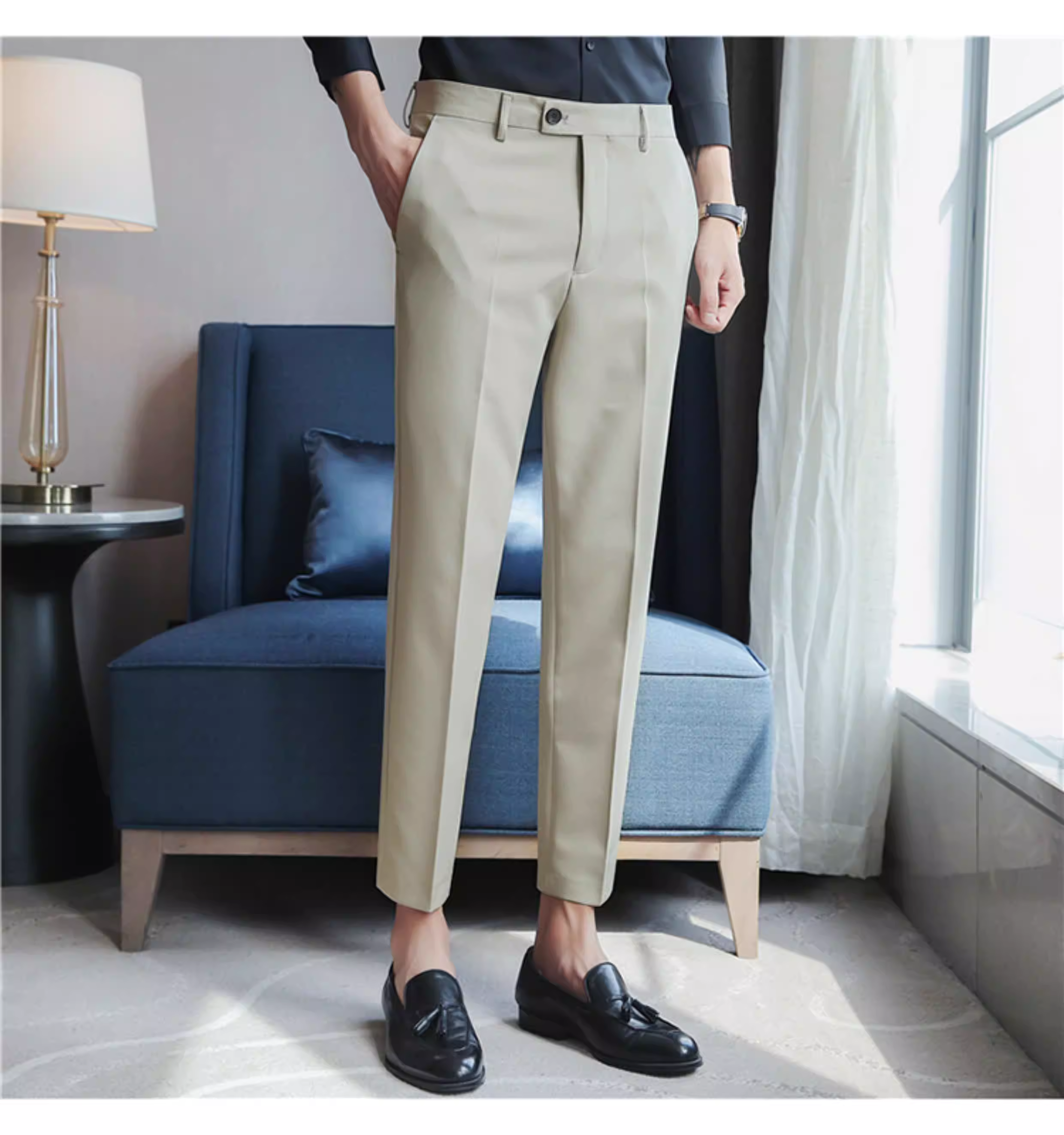 Quần âu nam chín phần, kiểu dáng mùa hè mỏng nhẹ, ôm dáng, ống côn, phong cách Hàn Quốc, quần âu nam chín phần hợp thời trang và cá tính.