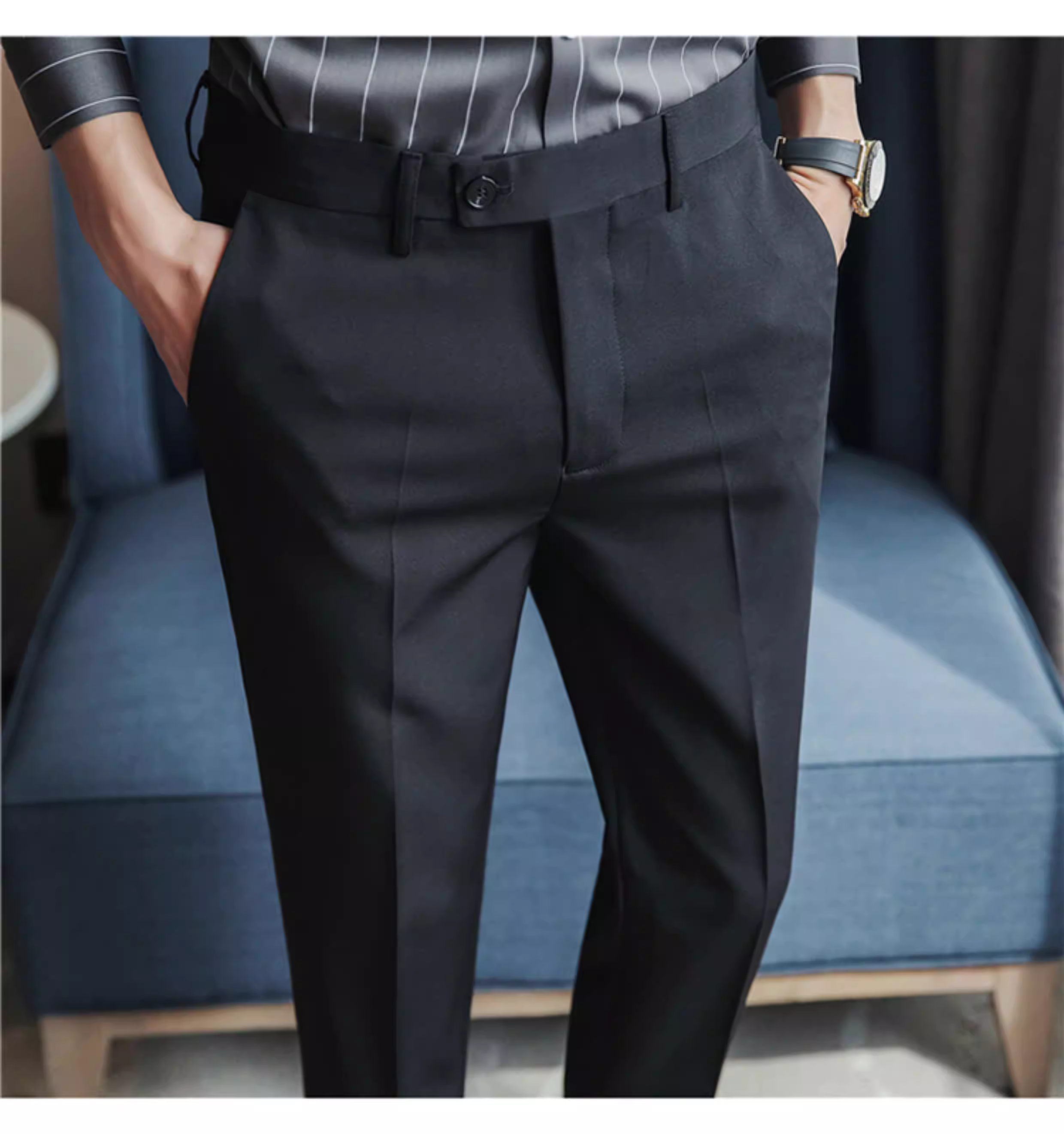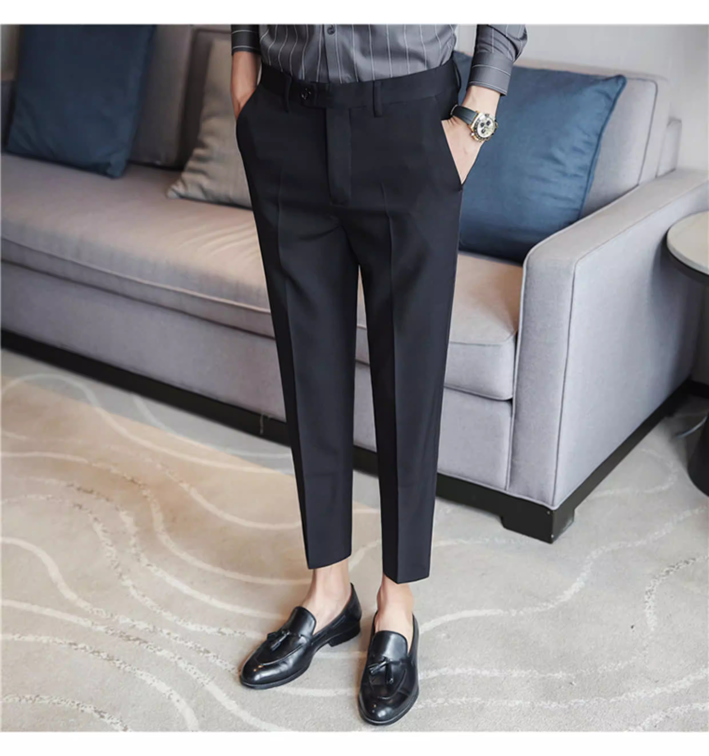 - Quần âu nam chín phần, kiểu dáng mùa hè mỏng nhẹ, ôm dáng, ống côn, phong cách Hàn Quốc, quần âu nam chín phần hợp thời trang và cá tính.