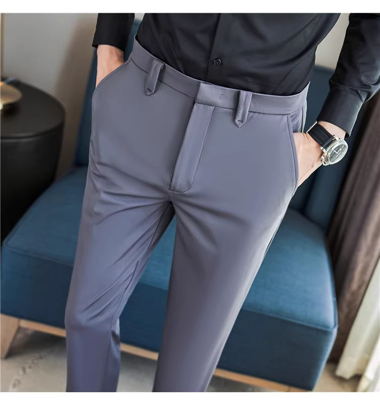- Quần âu nam co giãn cao, kiểu dáng thu mới, quần công sở cao cấp, phong cách Anh, dáng ôm, quần ống côn.