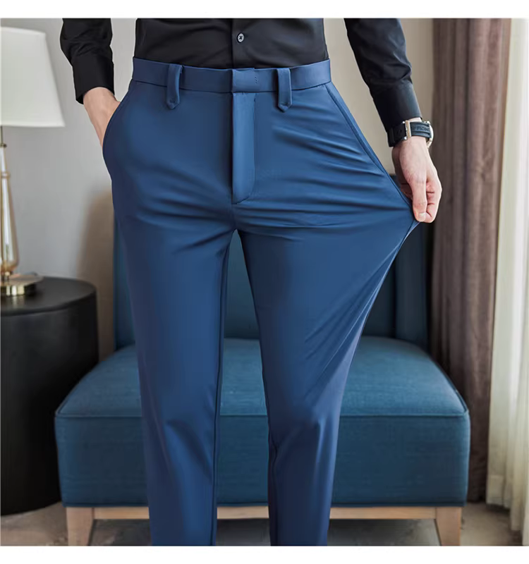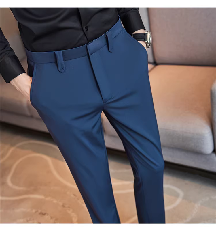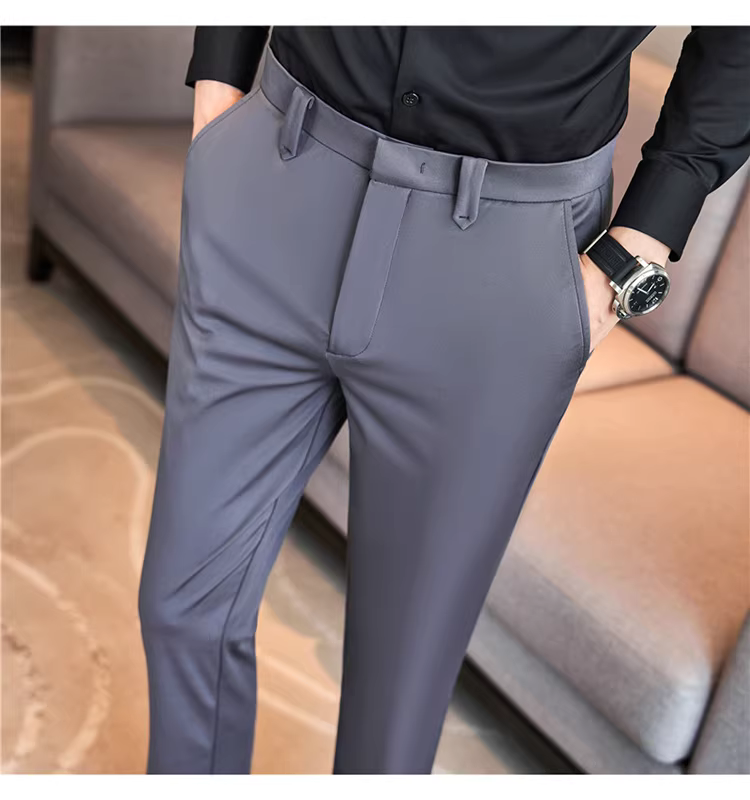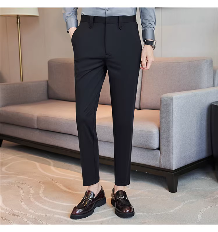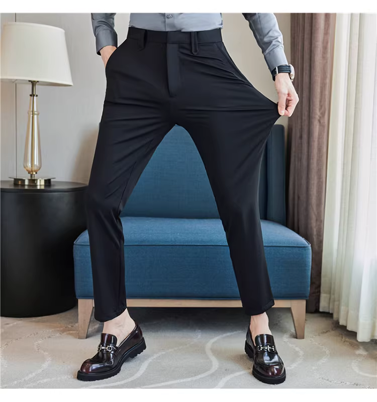Quần âu nam co giãn cao, kiểu dáng thu mới, quần công sở cao cấp, phong cách Anh, dáng ôm, quần ống côn.