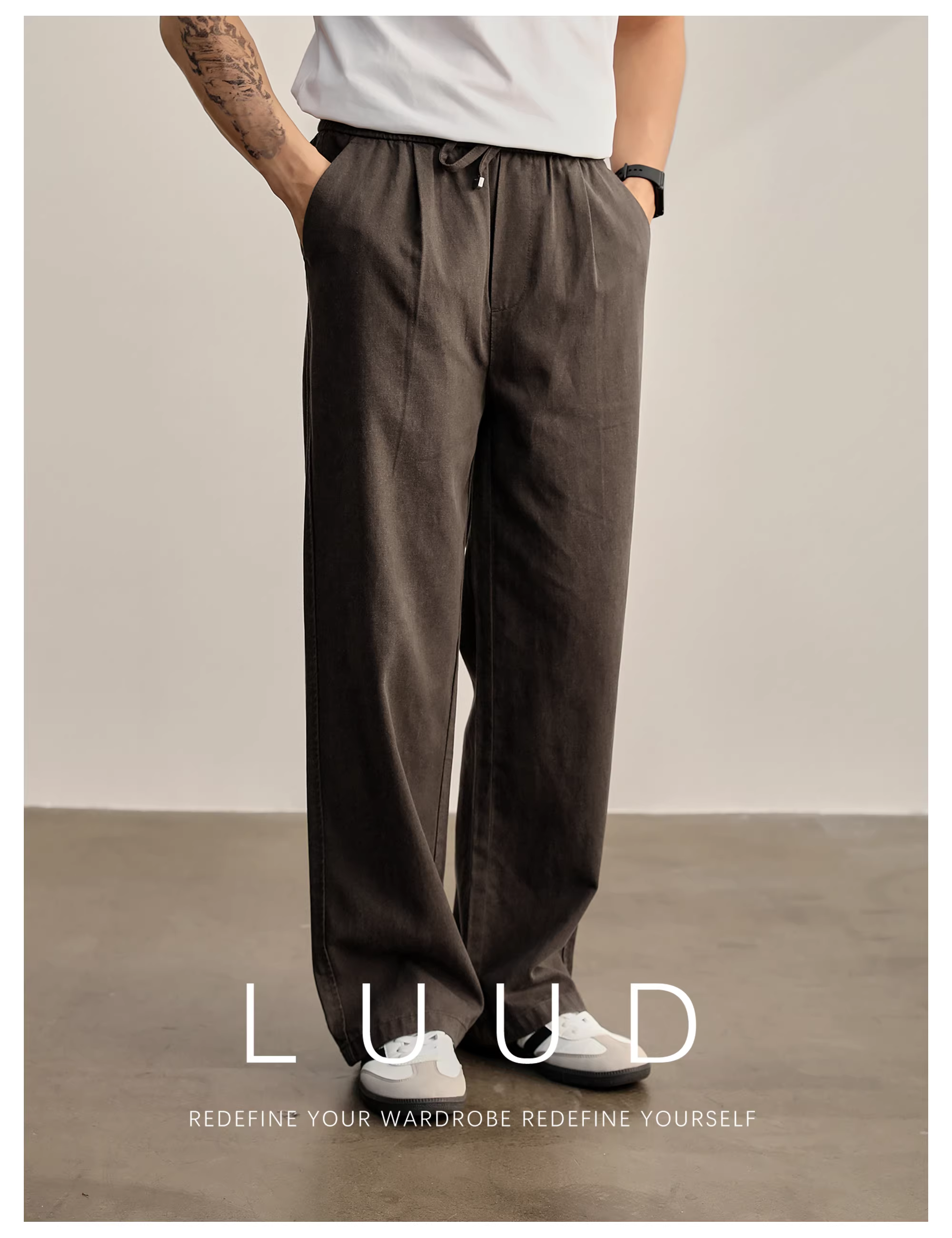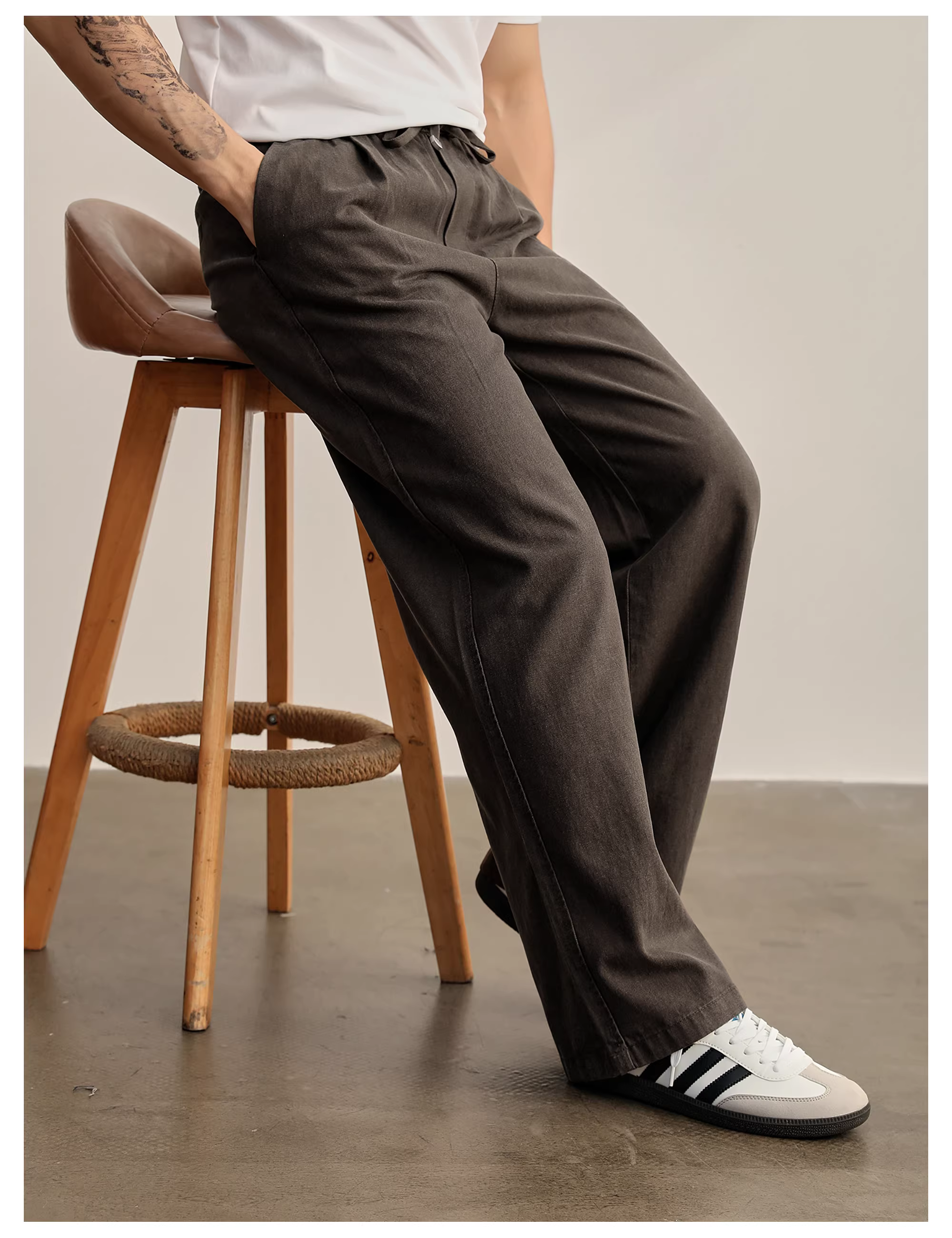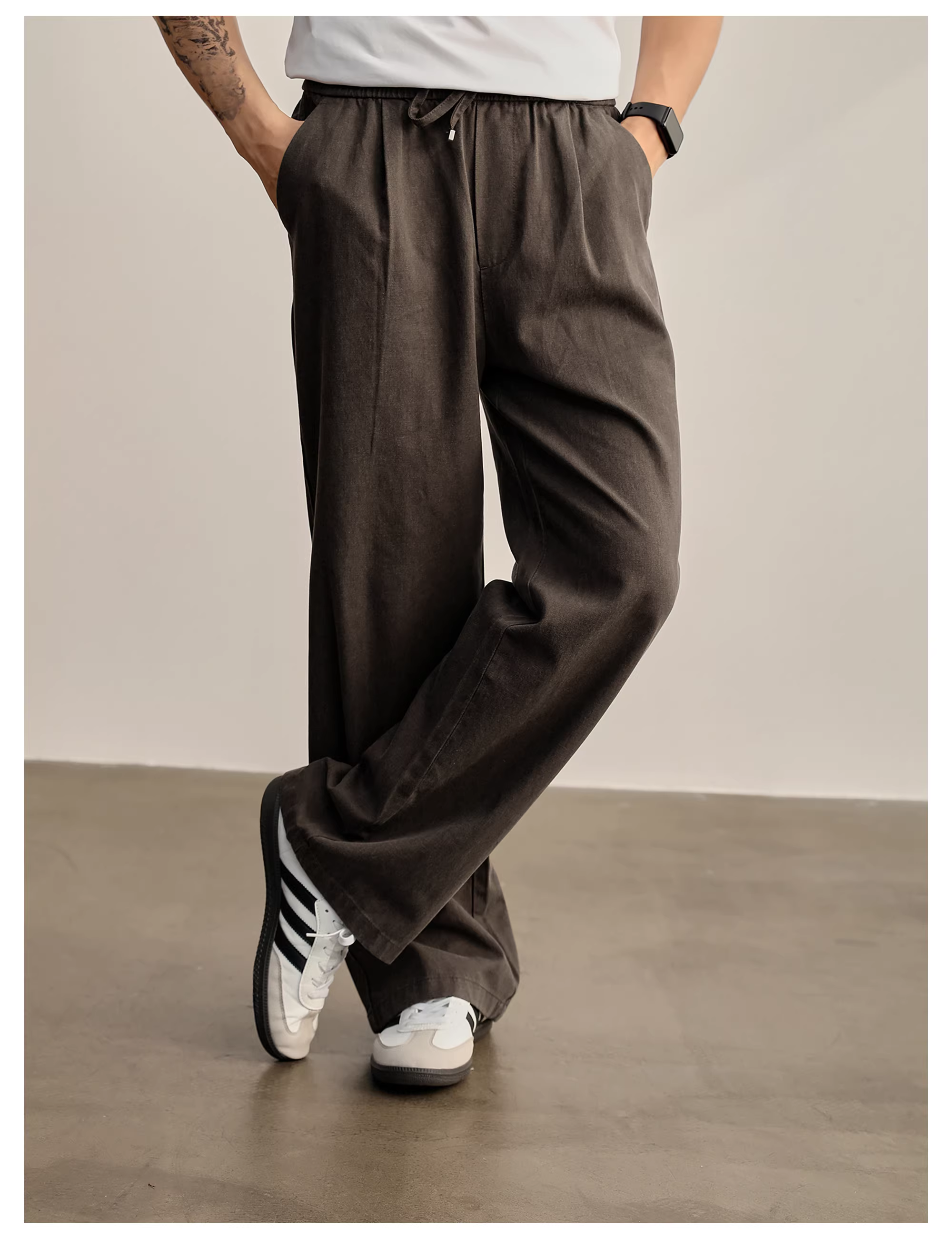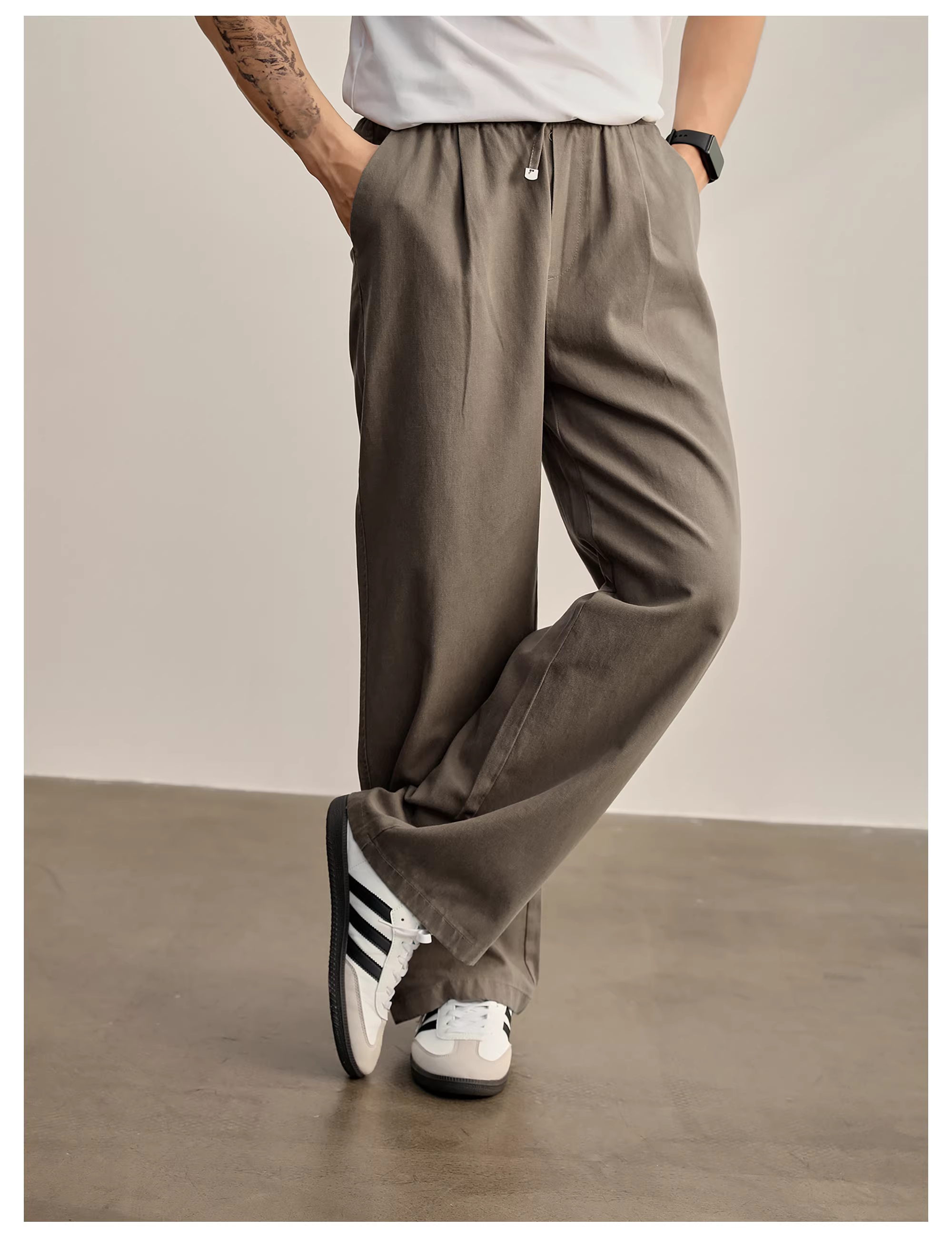 Quần âu nam dáng rộng, chất liệu Tencel Lyocell, kiểu dáng thanh lịch, phong cách tiền cổ, xếp ly, có dây rút.