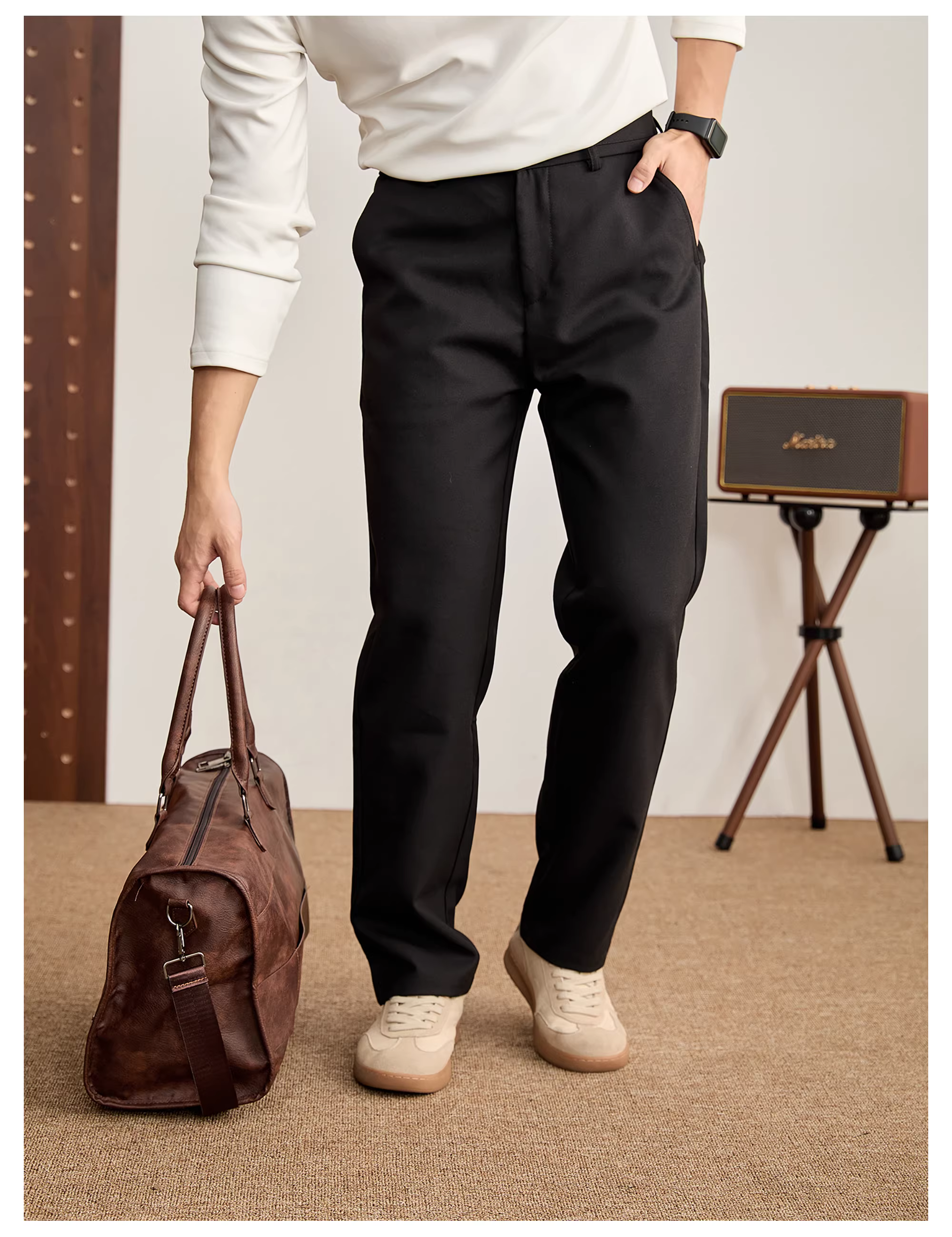 Quần âu nam đen cao cấp LUUD dáng ôm thẳng, may ba chiều, quần âu dáng rộng thoải mái cho mùa thu đông.