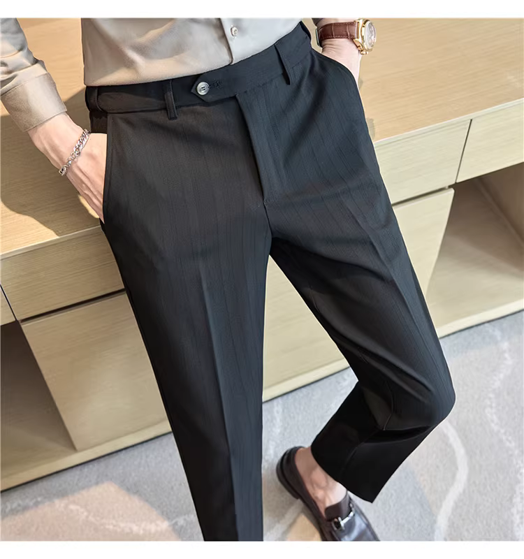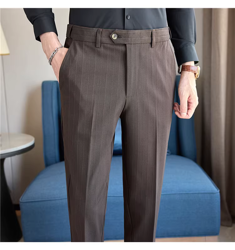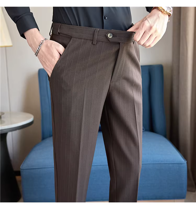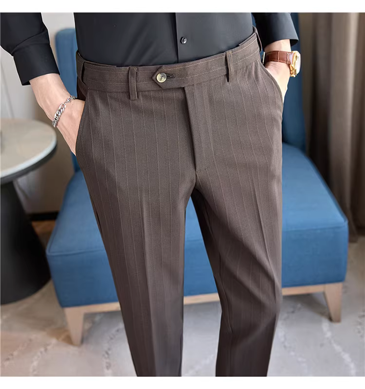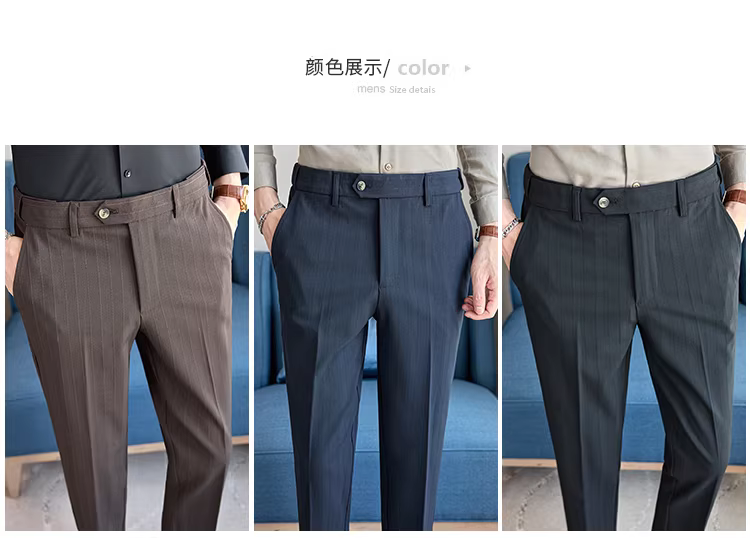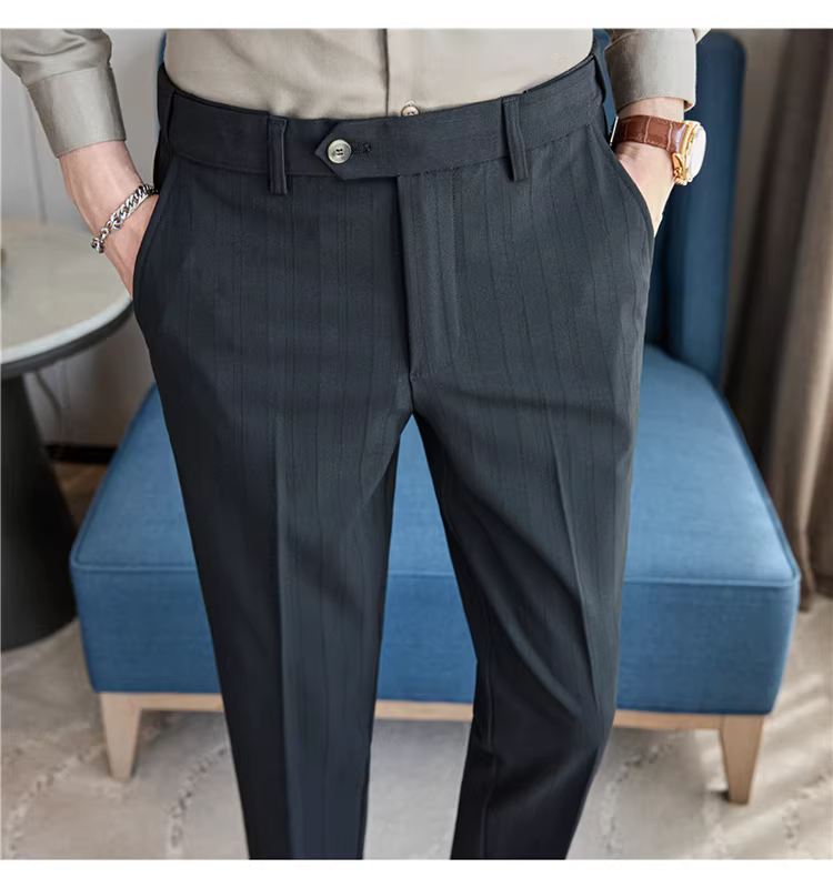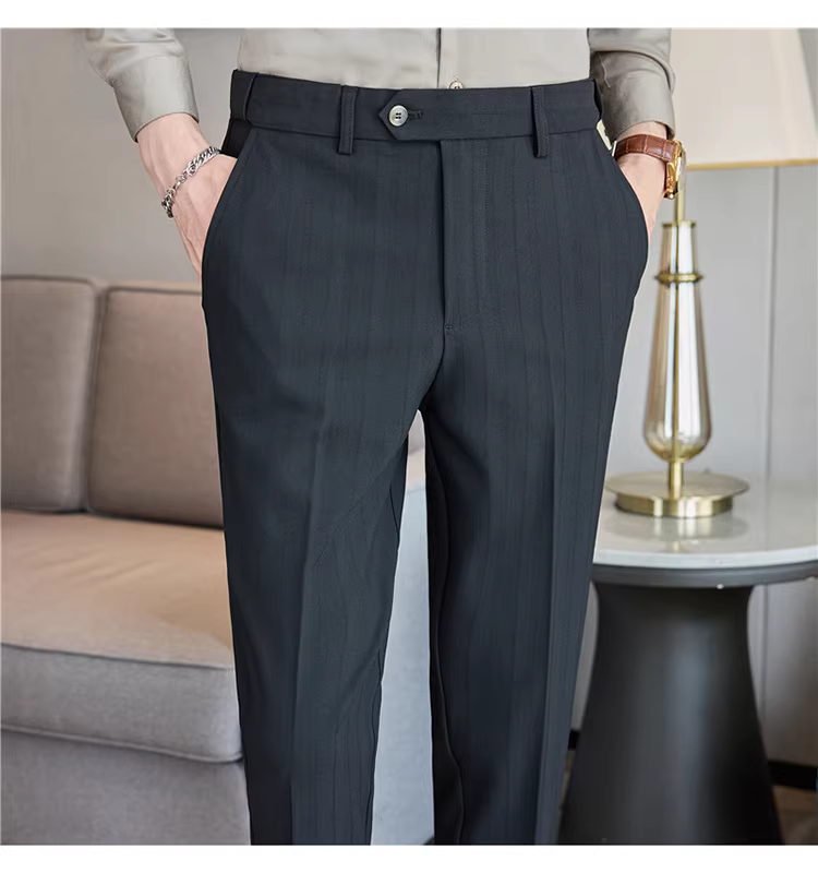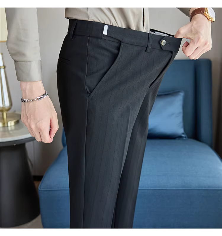 Quần âu nam kẻ sọc ba chiều co giãn không đường may, kiểu dáng ôm body, xu hướng mới thu đông 2024