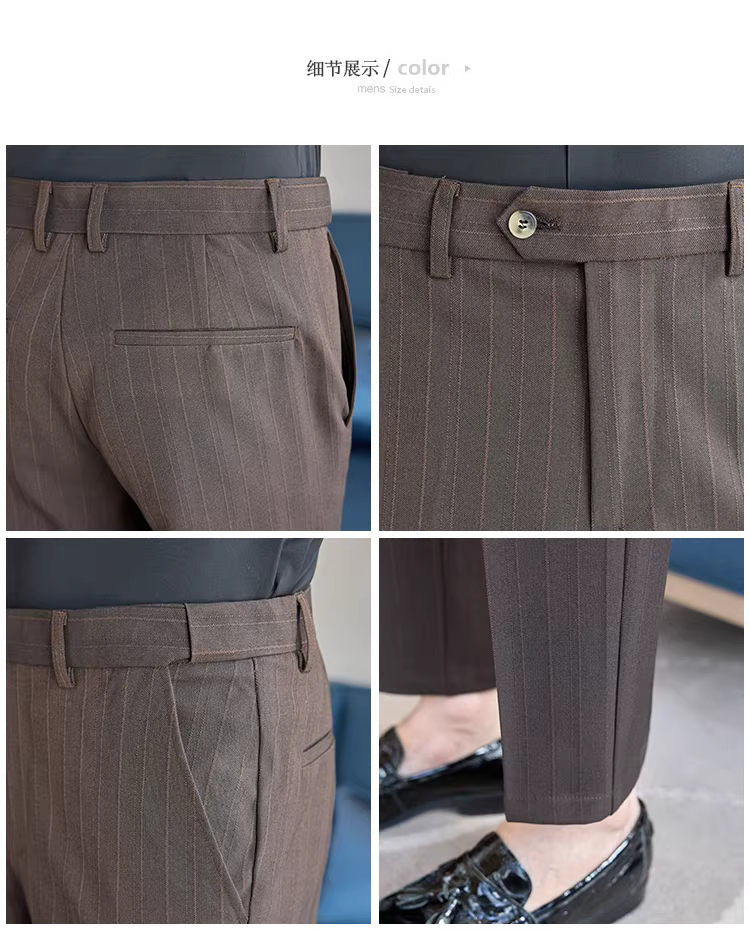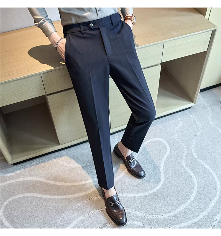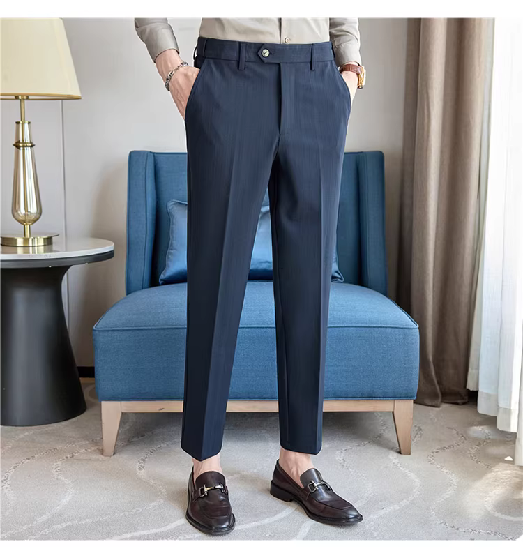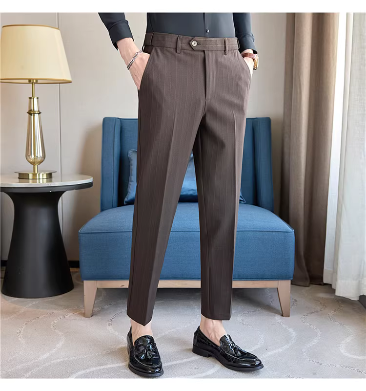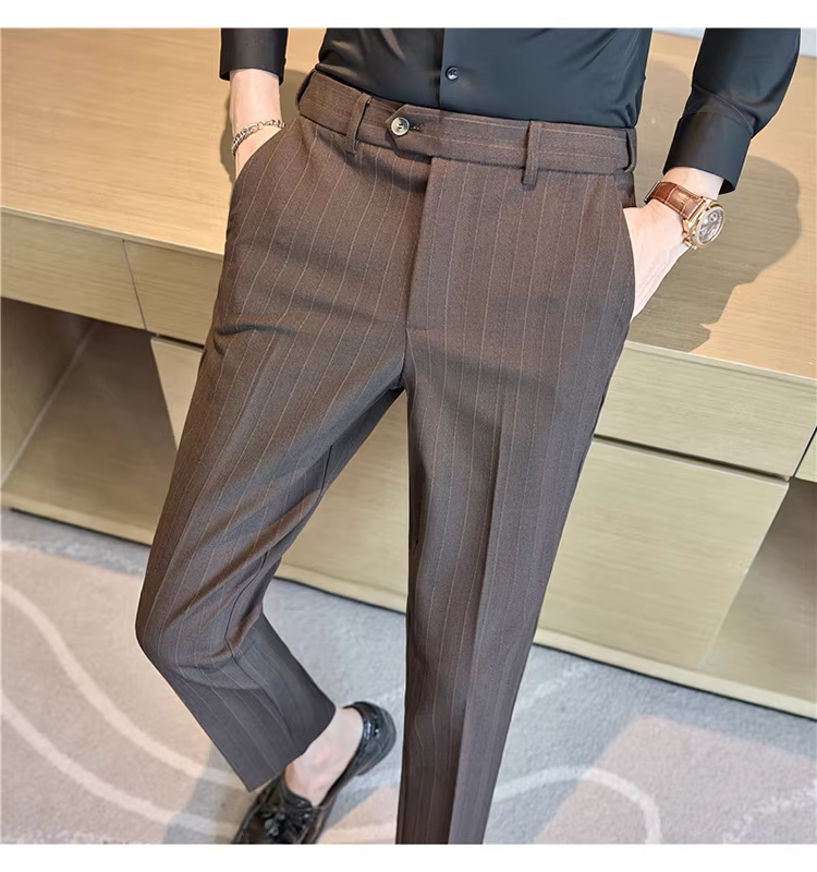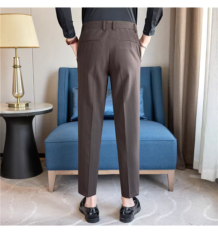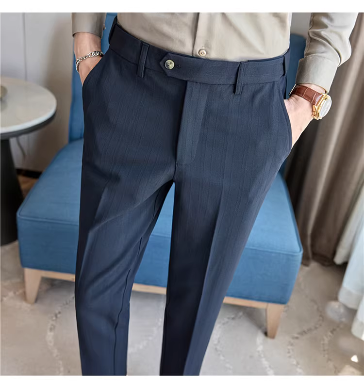 Quần âu nam kẻ sọc ba chiều co giãn không đường may, kiểu dáng ôm body, xu hướng mới thu đông 2024