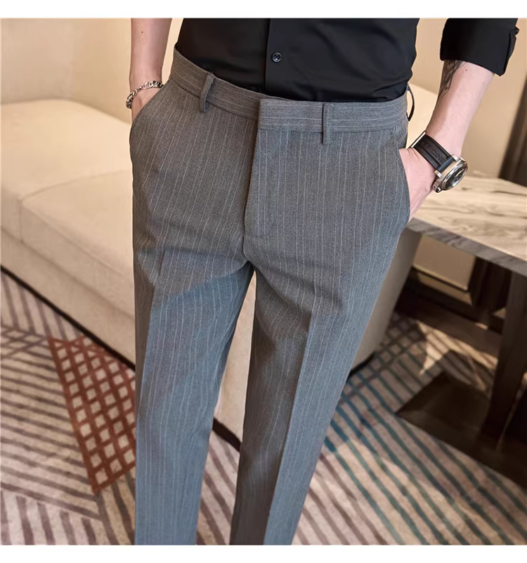 - Quần âu nam kẻ sọc, quần dài cao cấp, phong cách Anh quốc thời thượng, quần âu kiểu dáng ôm body, quần âu công sở ống côn.