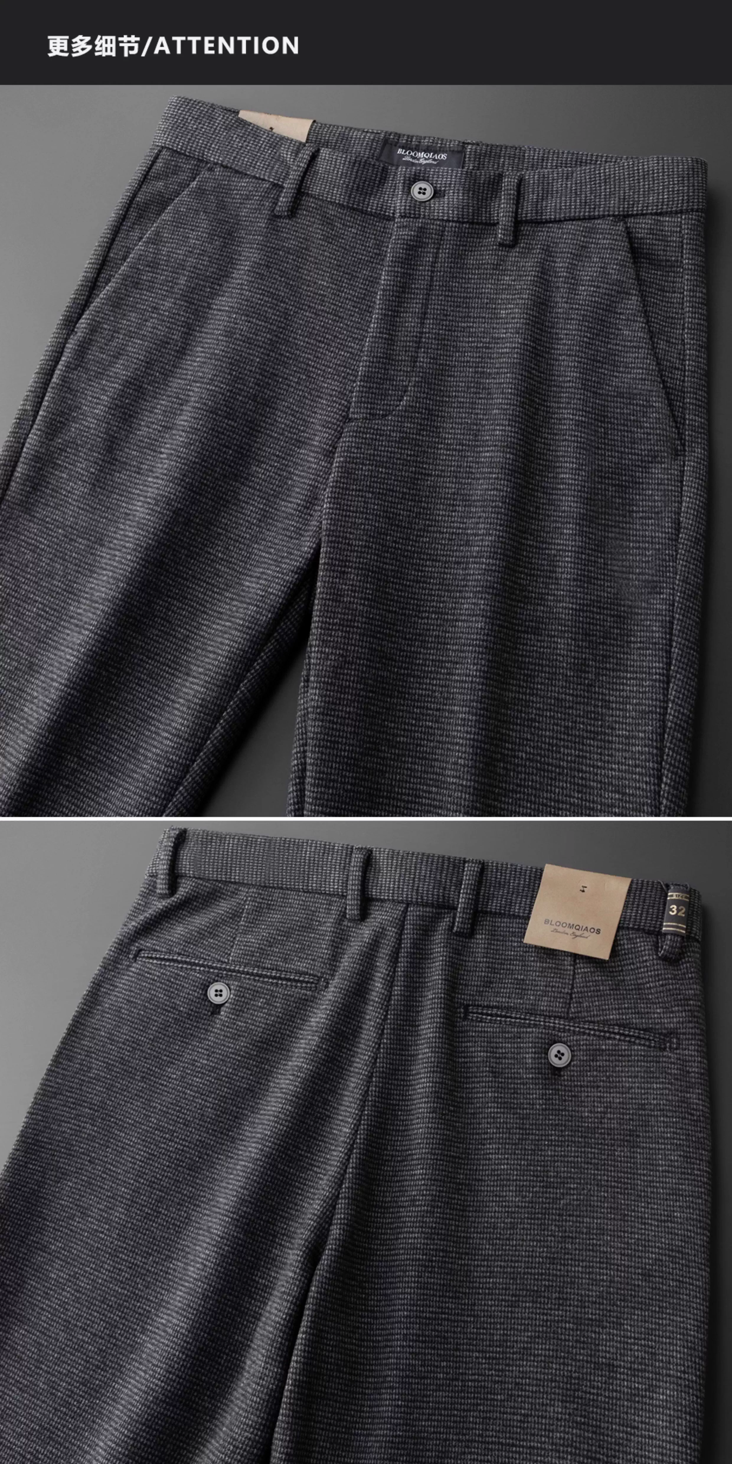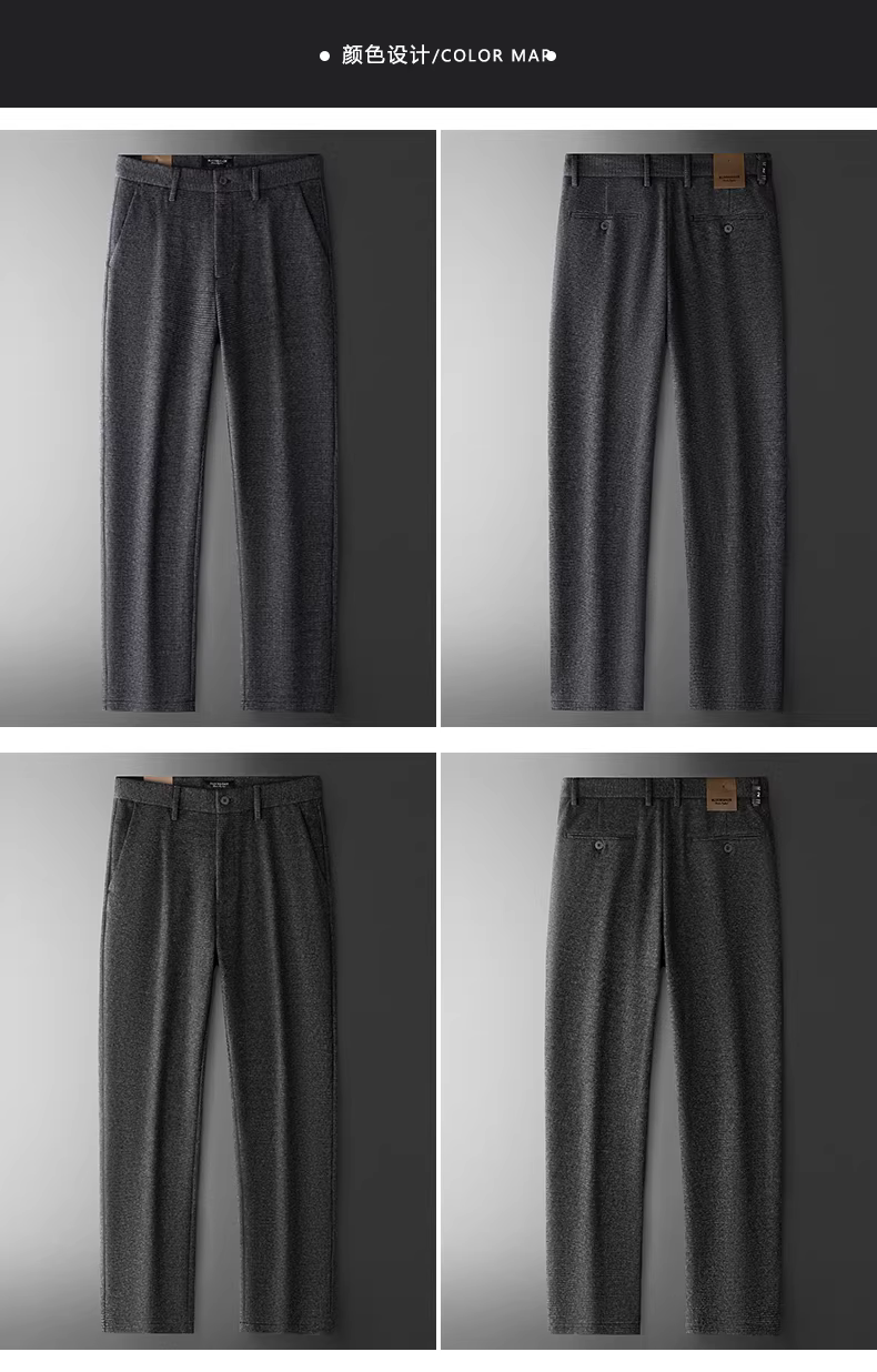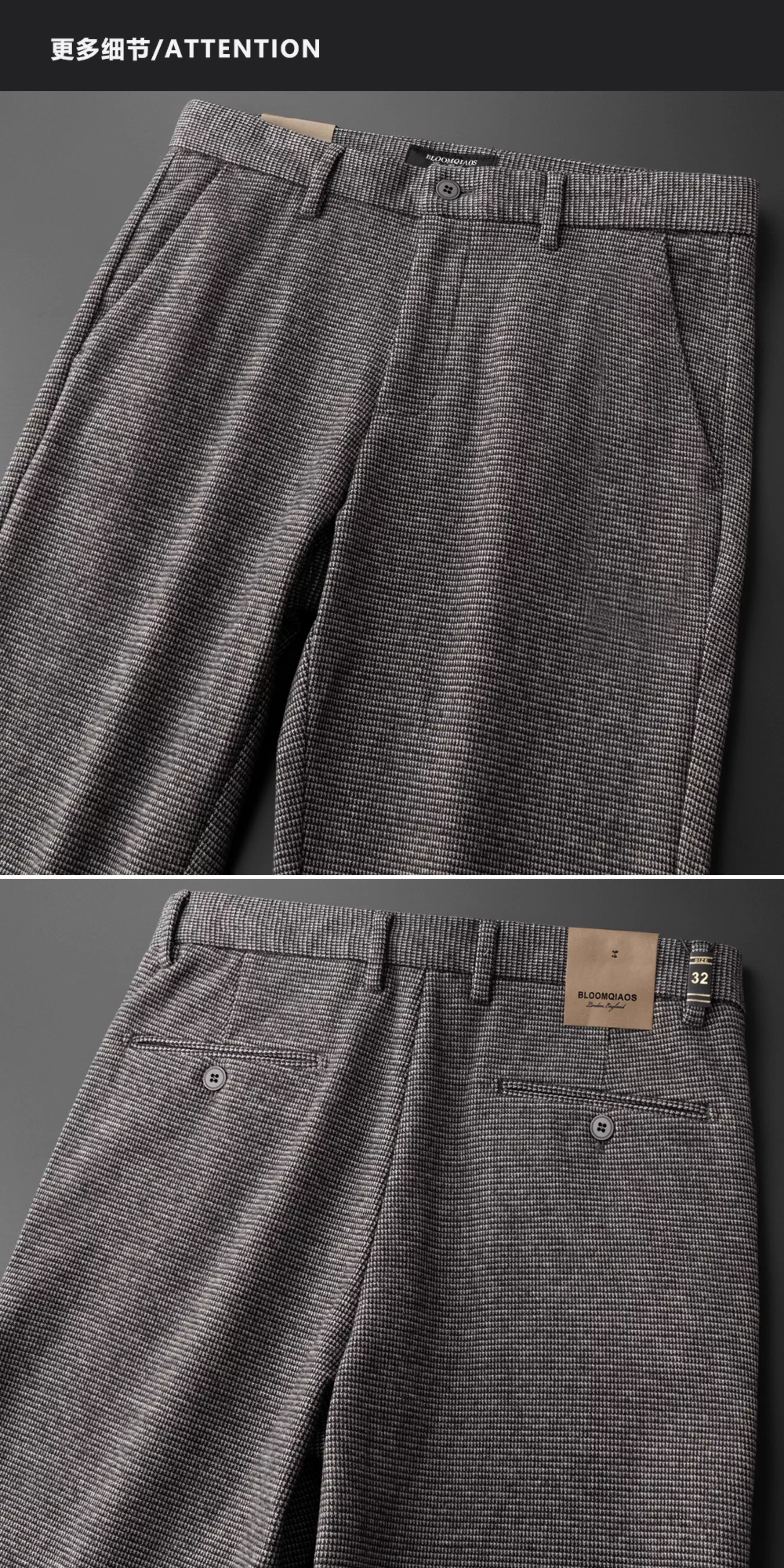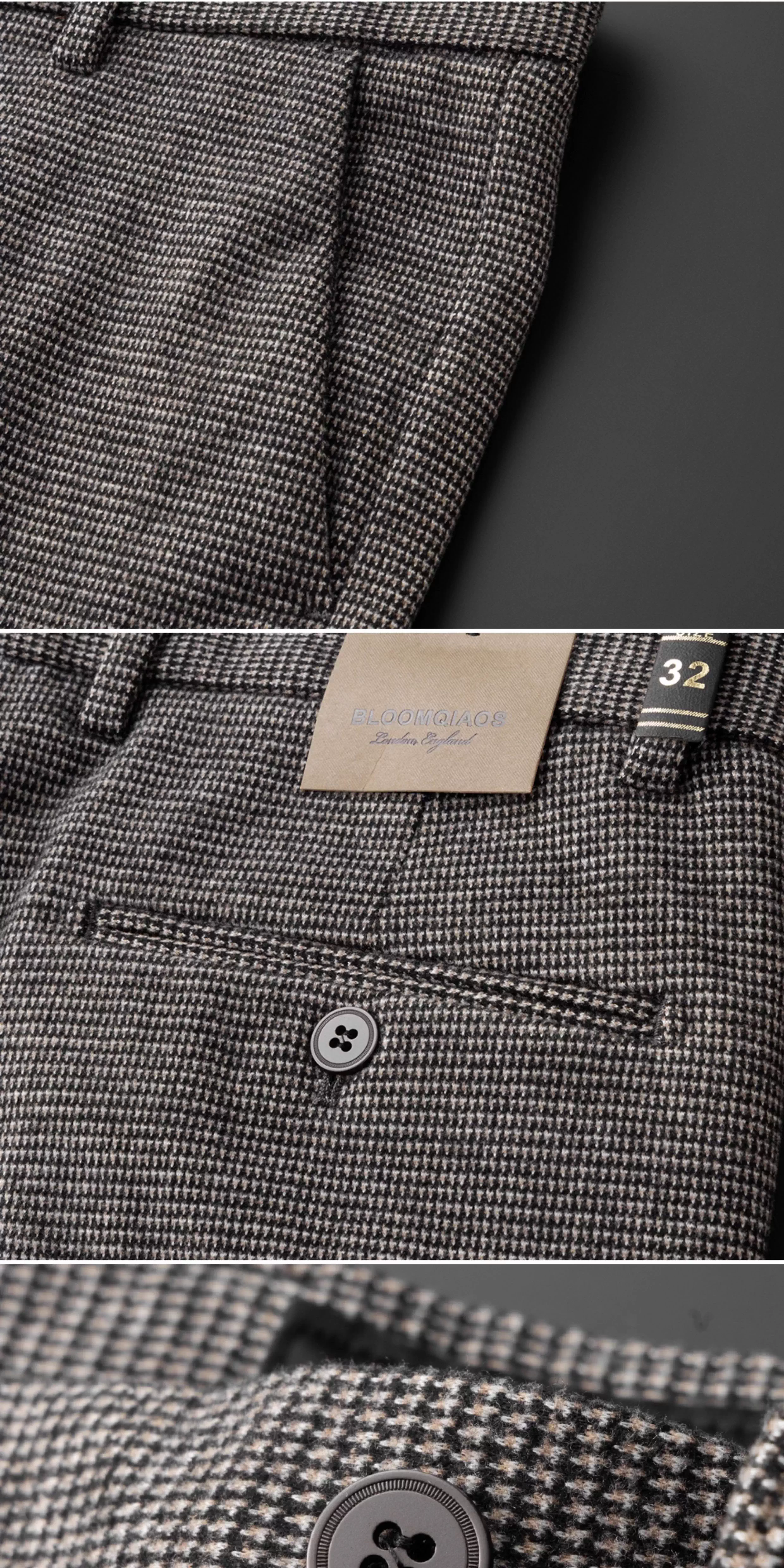 Quần âu nam len kẻ ô mùa thu đông, dáng thẳng, rộng rãi, đa năng, dày dặn, ấm áp, quần dài chải kỹ.